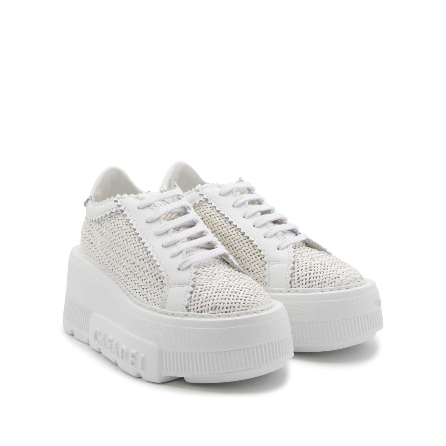 White leather Nexus Hanoi sneakers from Casadei featuring round toe, cotton lace-up fastening, all over leather strips, rubber sole and rubber logo patch.