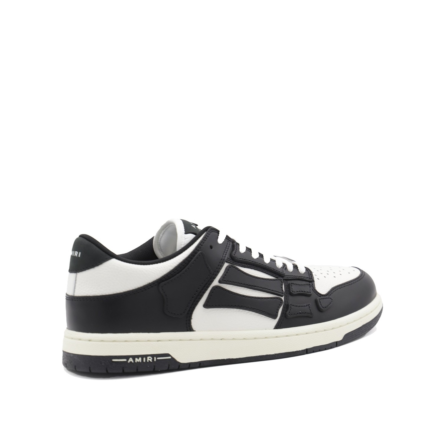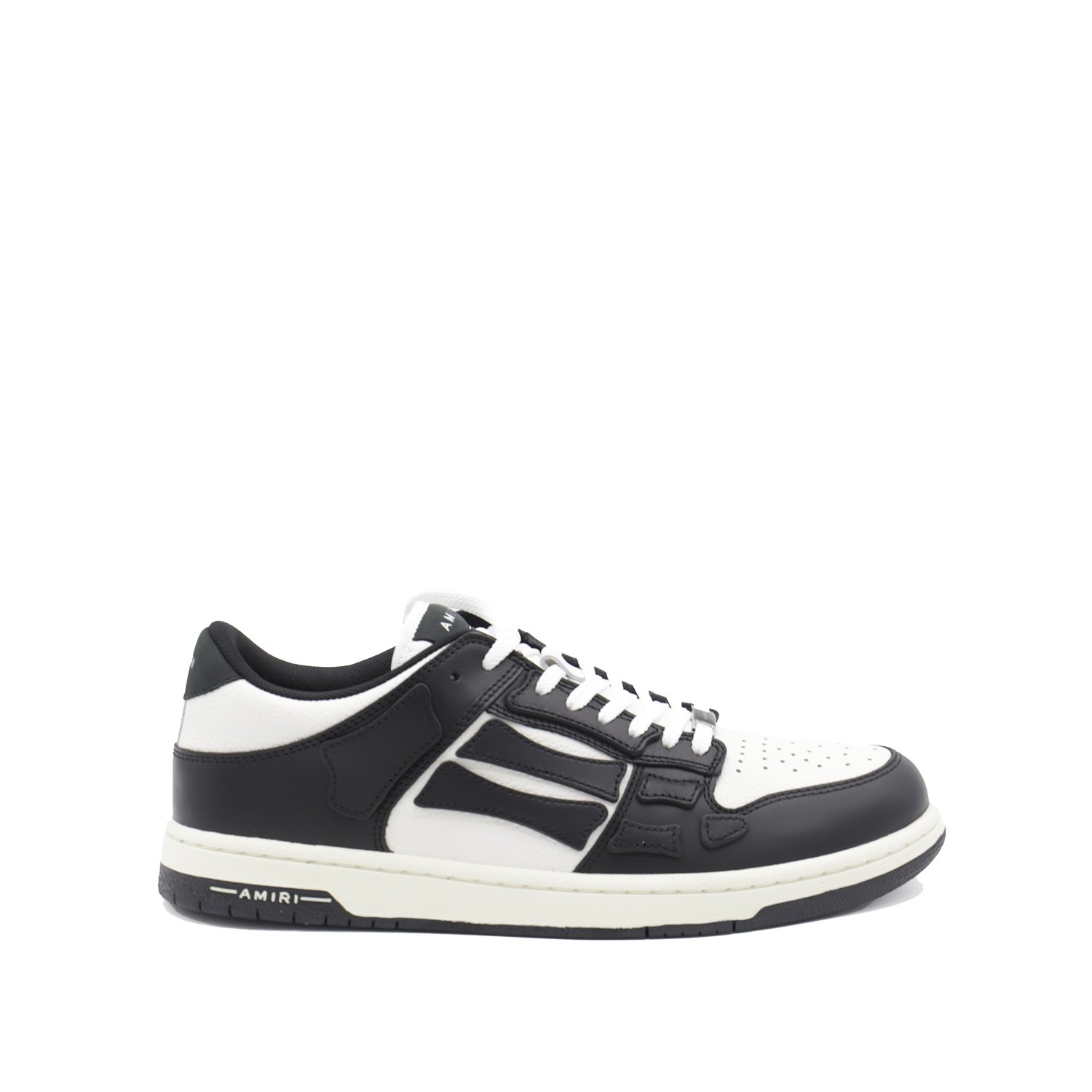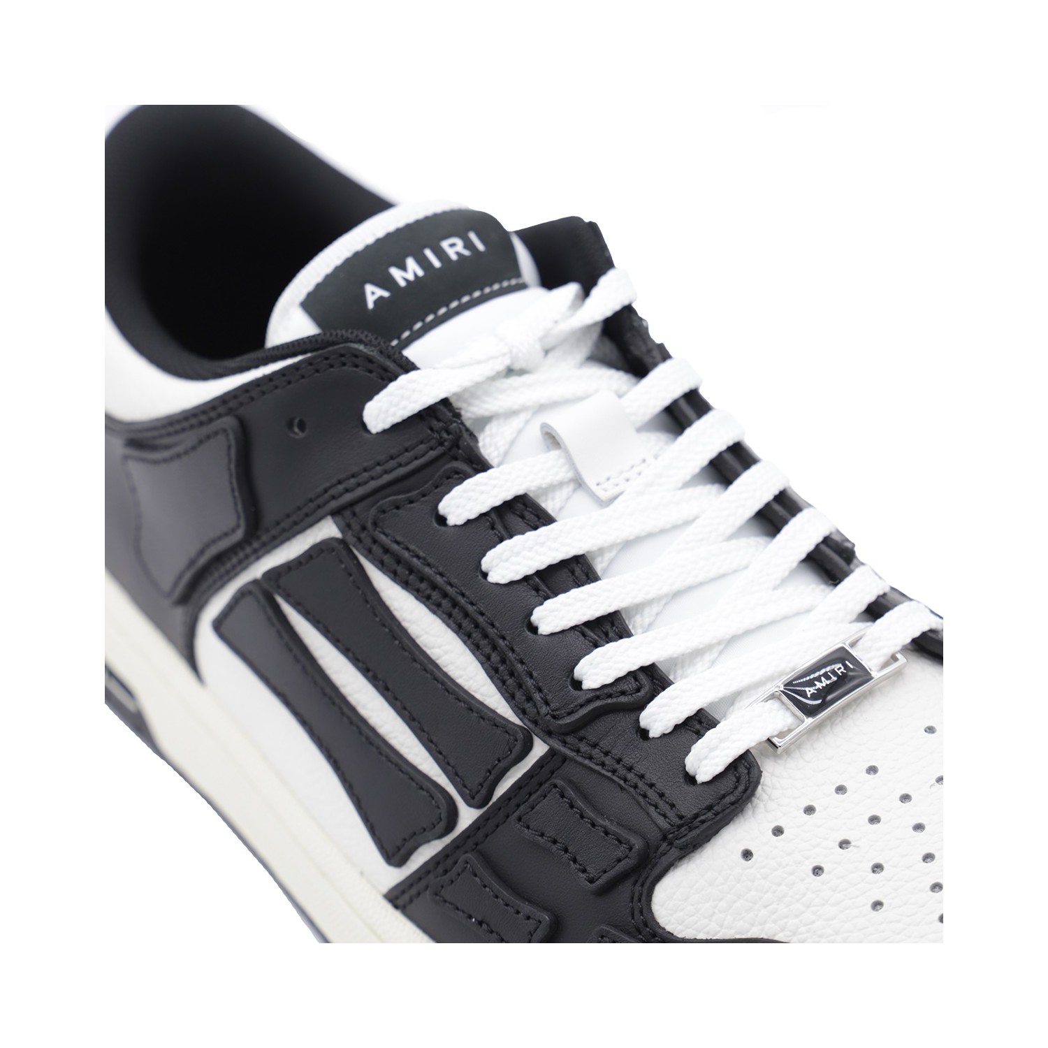 Black and white leather sneakers from Amiri featuring round toe, lace up fastening, all over details, lateral logo and rubber sole.