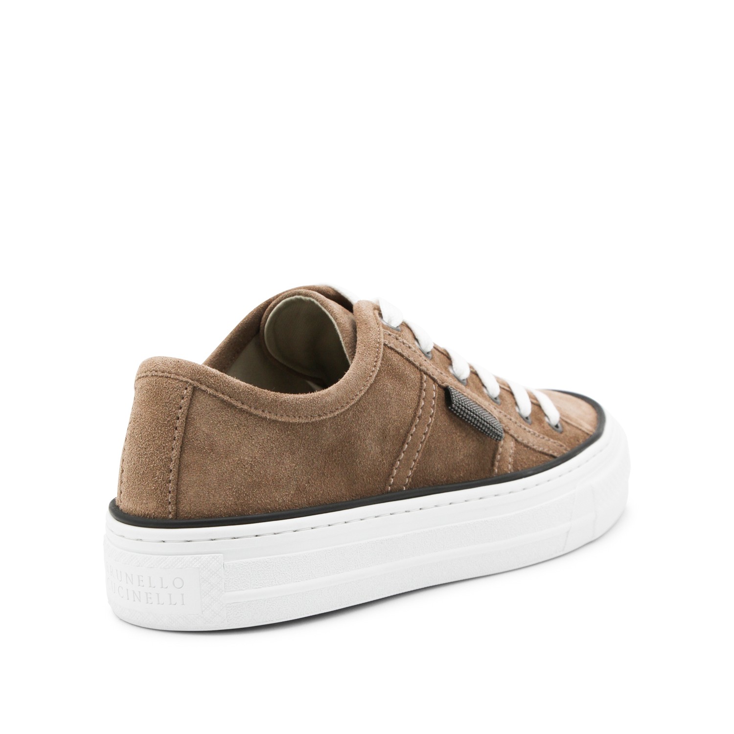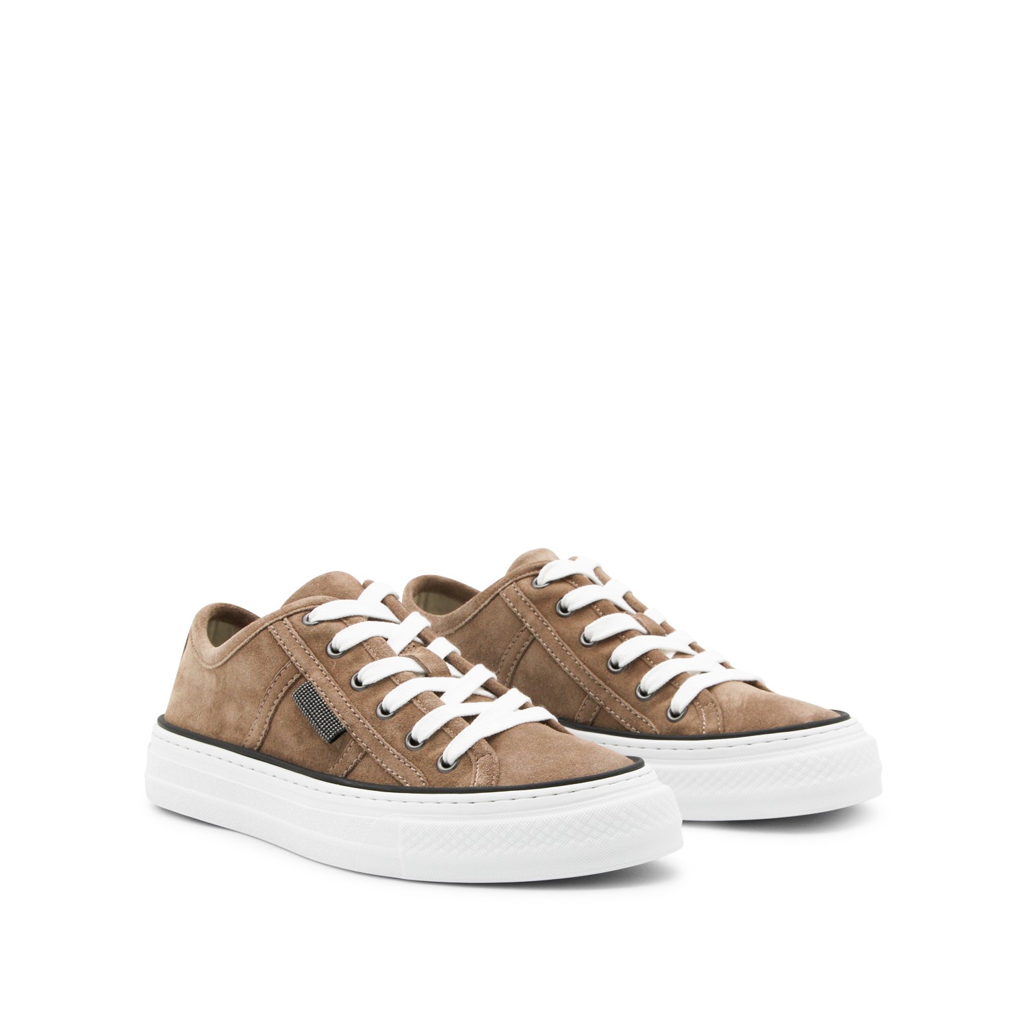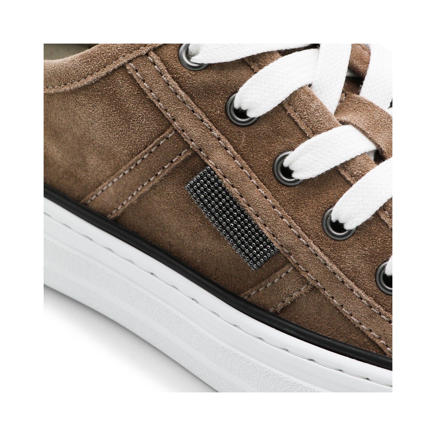 Brown leather sneakers from Brunello Cucinelli featuring round toe, cotton lace-up fastening, stitching details and rubber sole.
