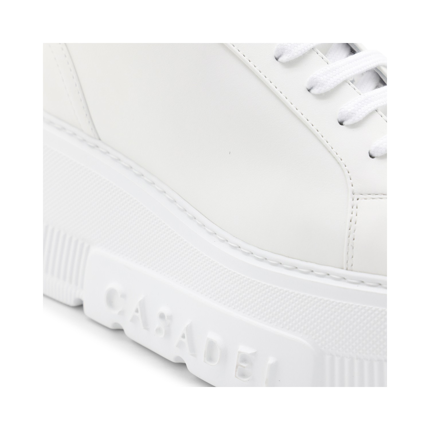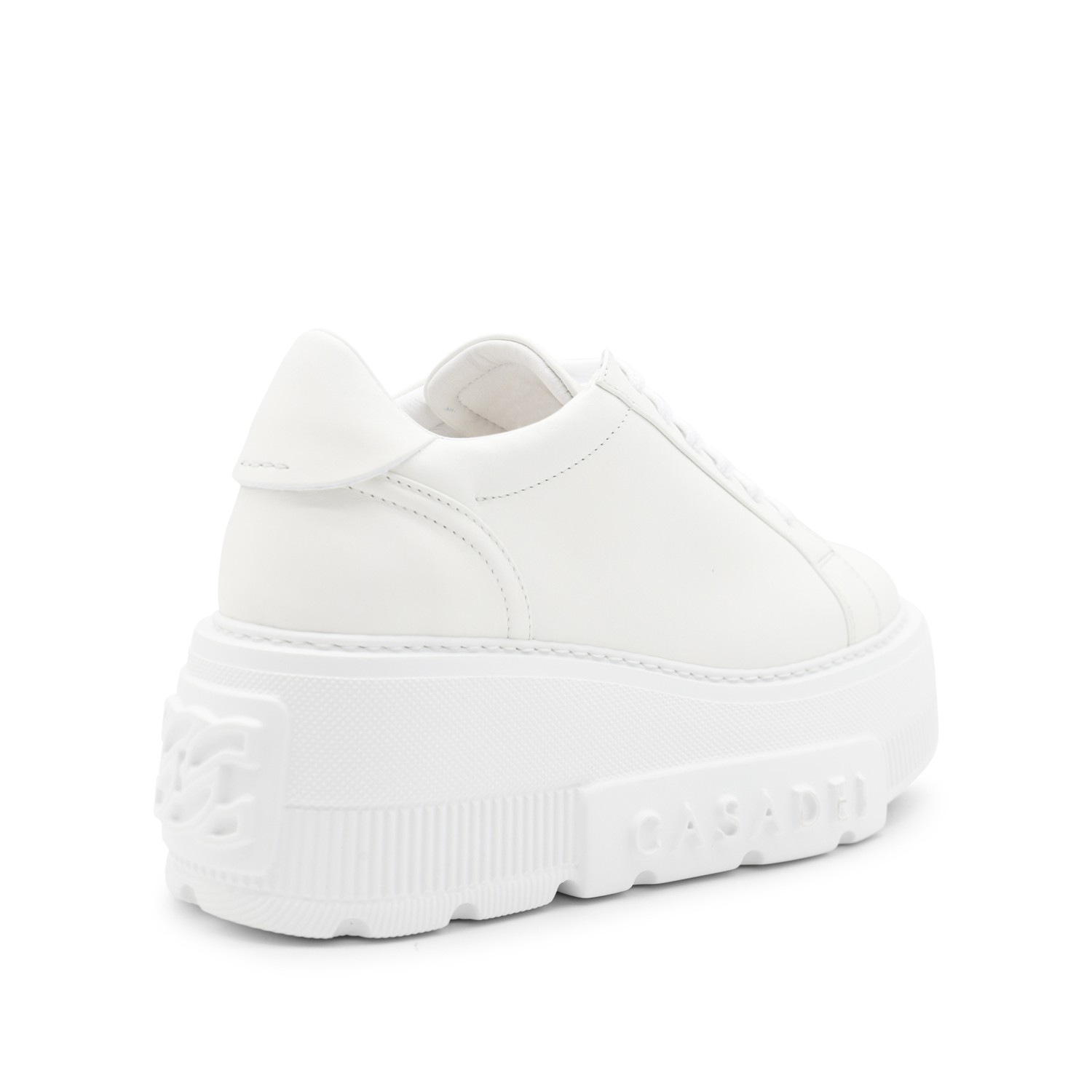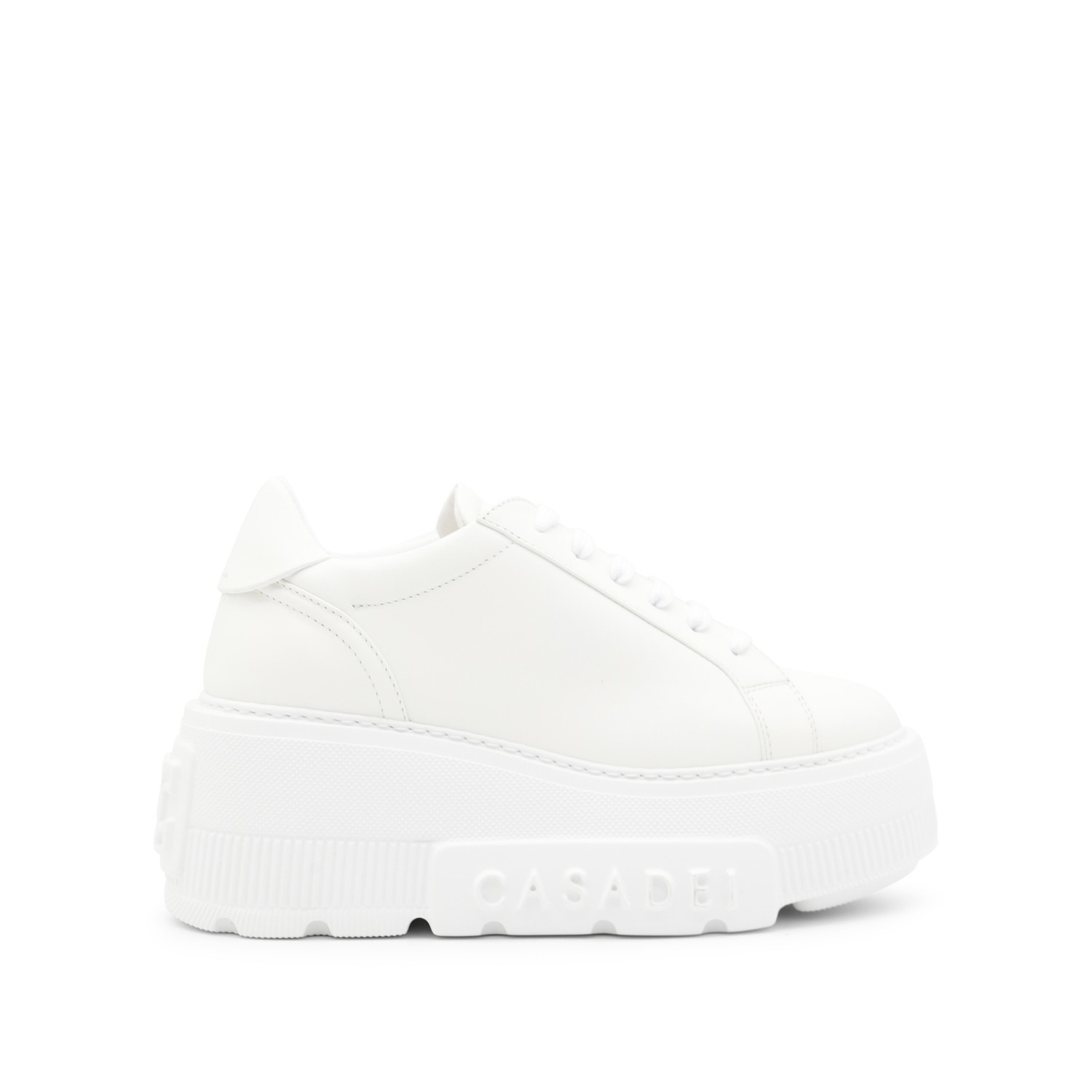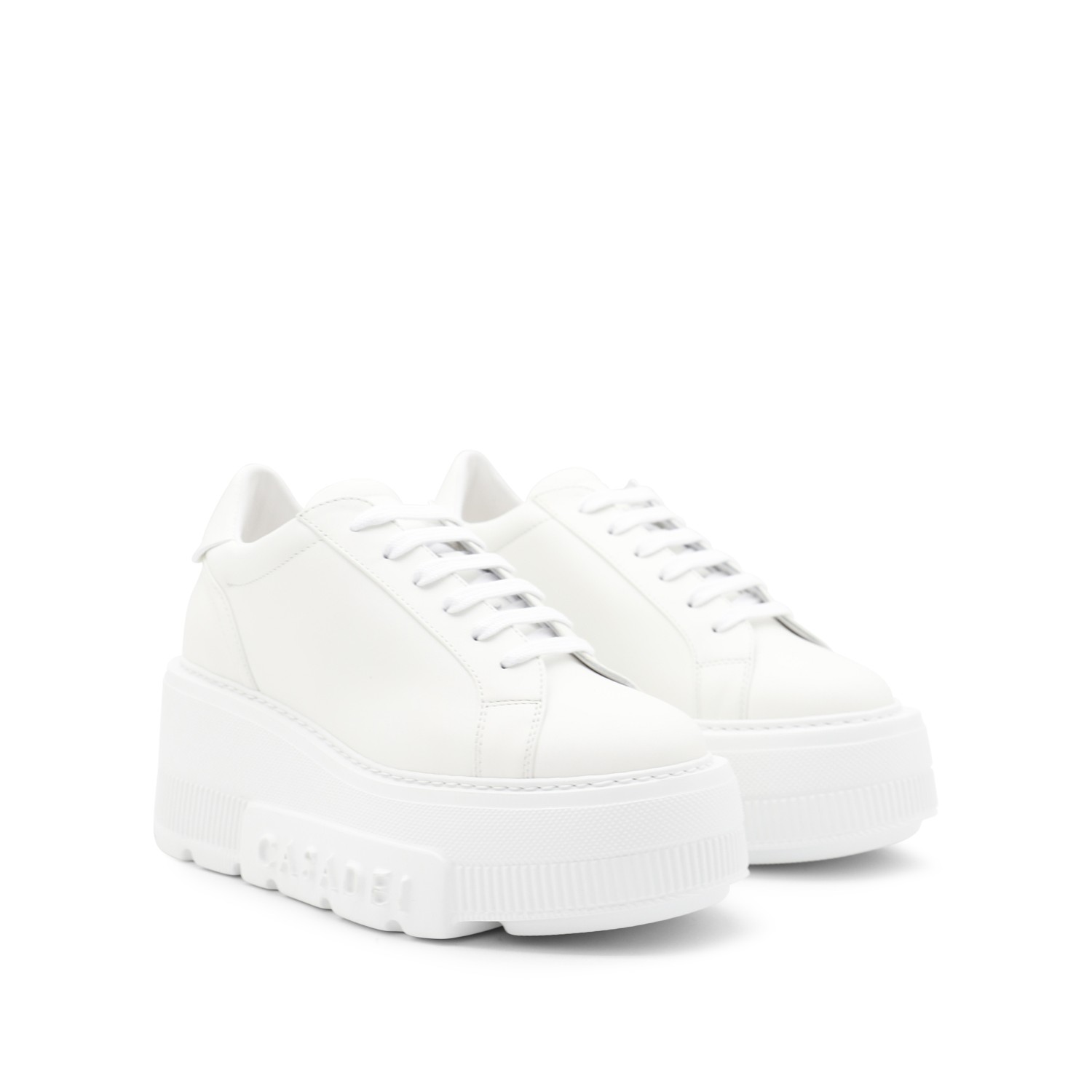 White leather Nexus sneakers from Casadei featuring round toe, cotton lace-up fastening, oversize sole, platform and lateral logo.