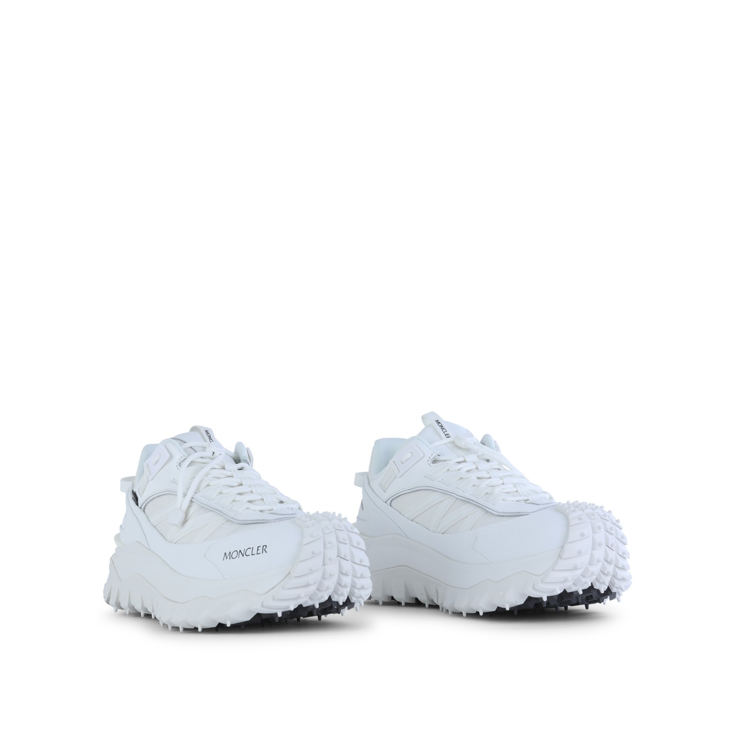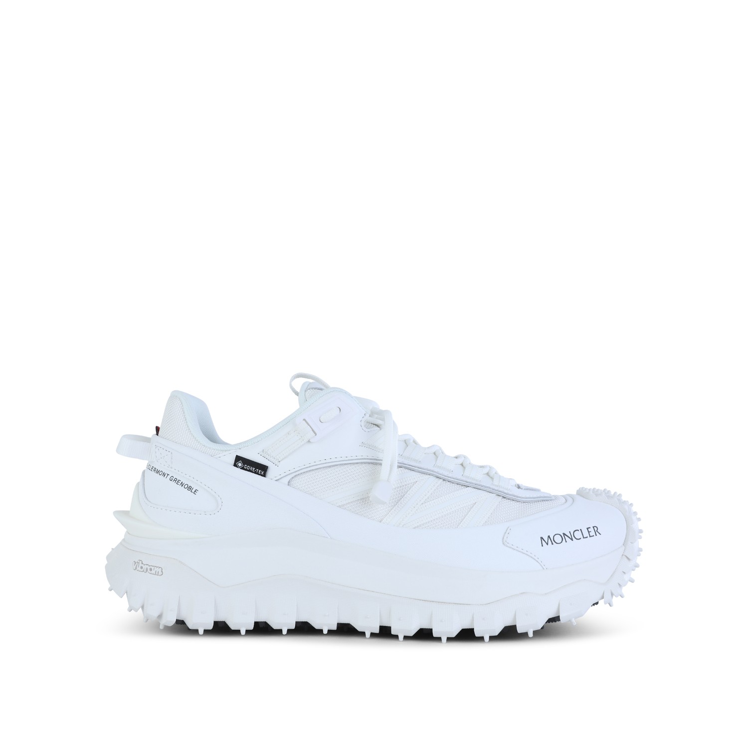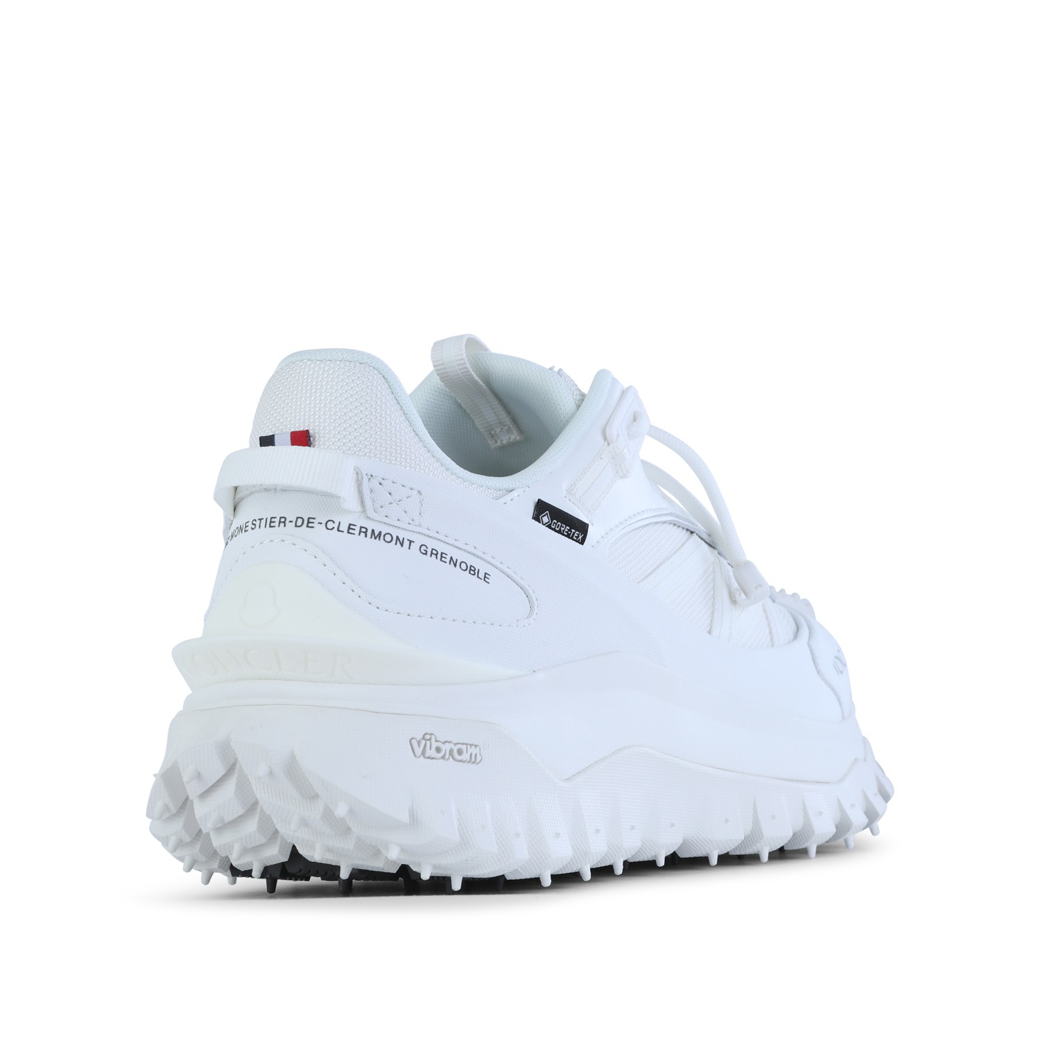 White Trailgrip GTX sneakers from Moncler featuring round toe, waterproof, mesh details, laces fastening with drawstring and rubber sole.