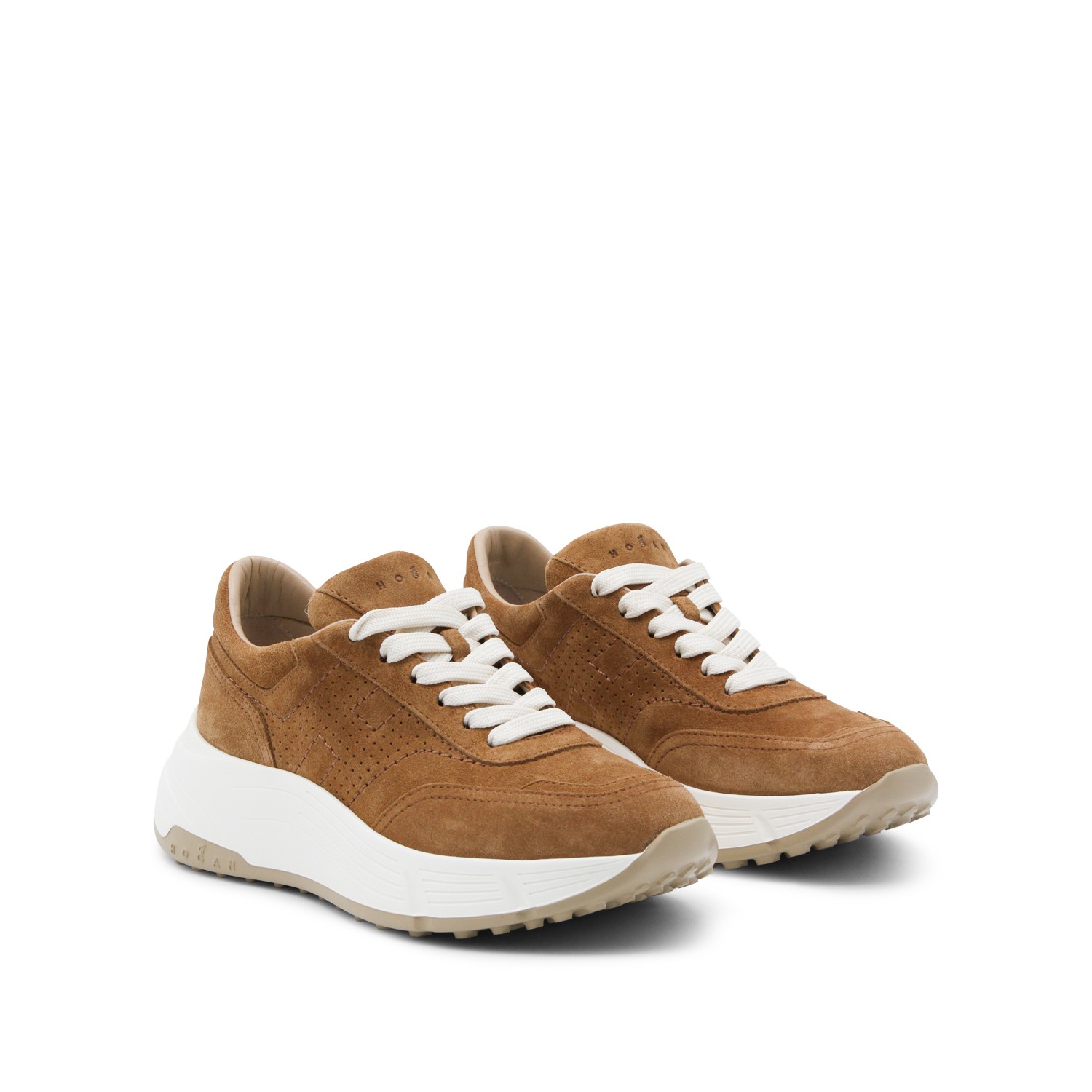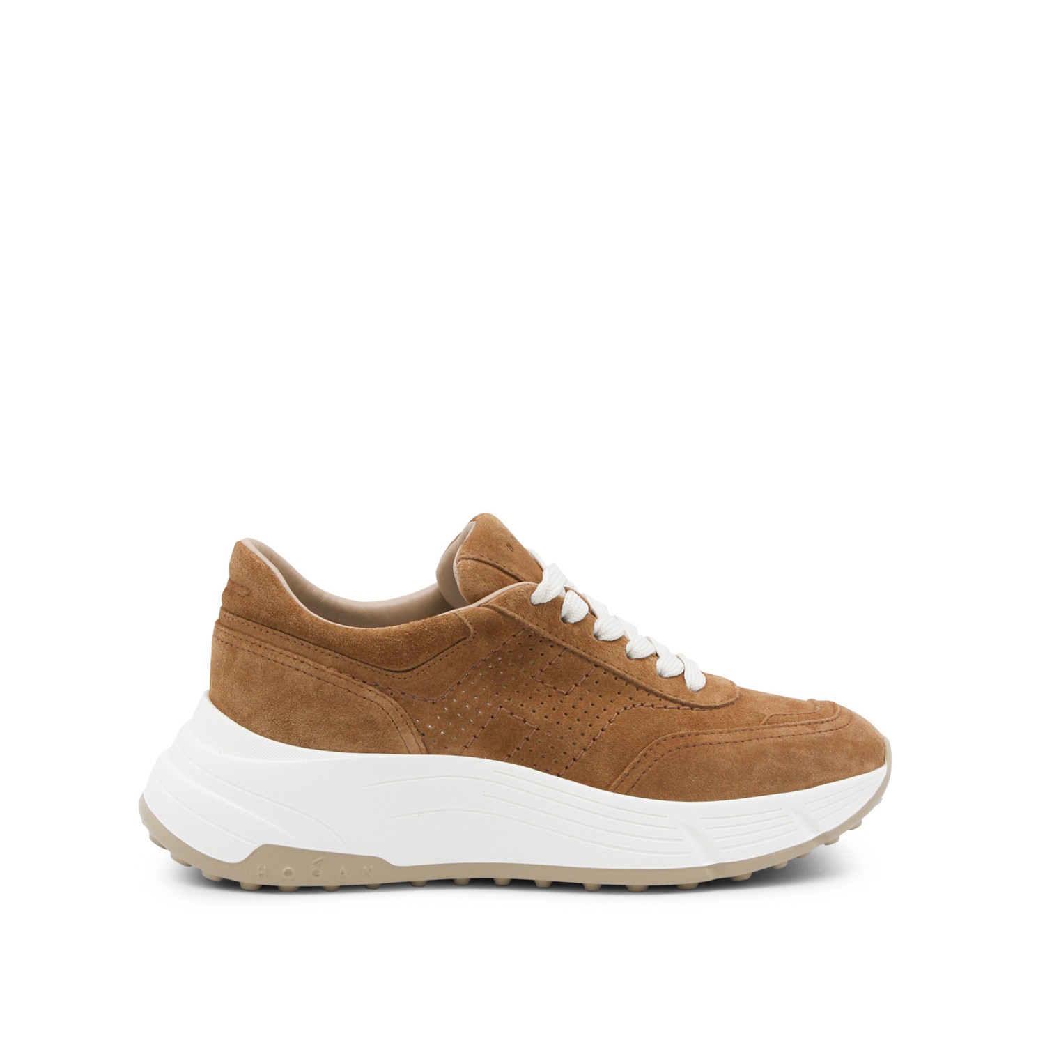 Brown leather sneakers from Hogan featuring round toe, laces fastening, suede, branded tongue and mid rubber sole.