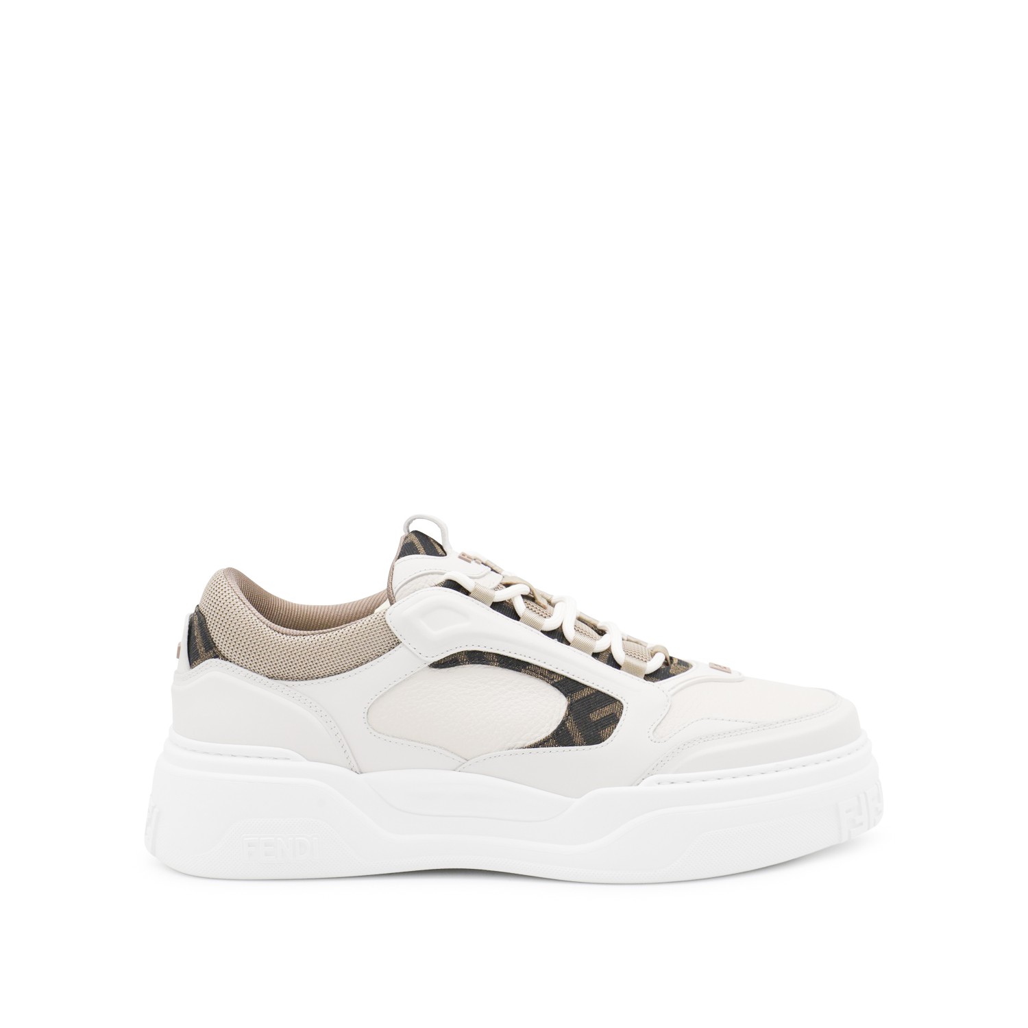 WHITE AND BEIGE LEATHER FENDI FORCE SNEAKERS
