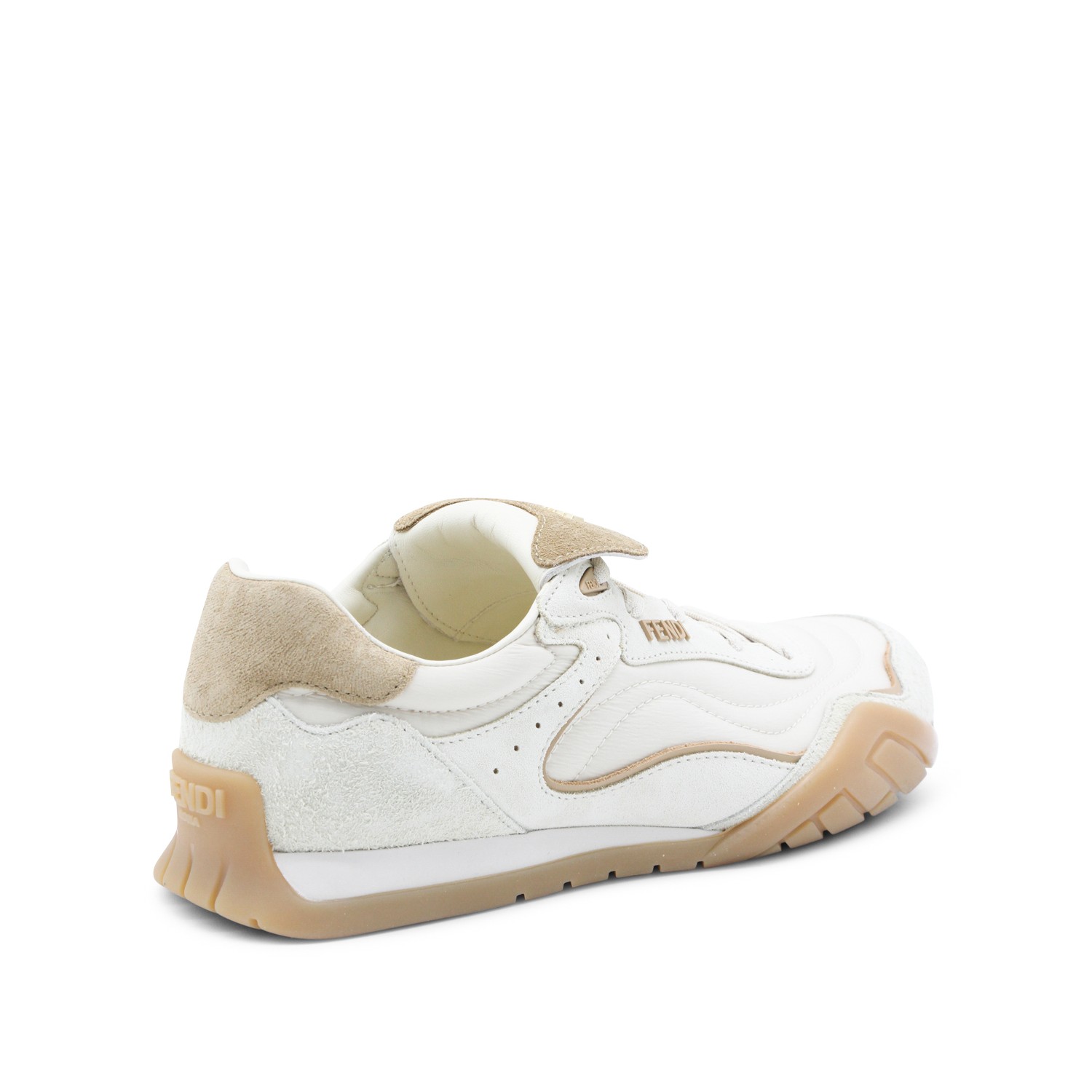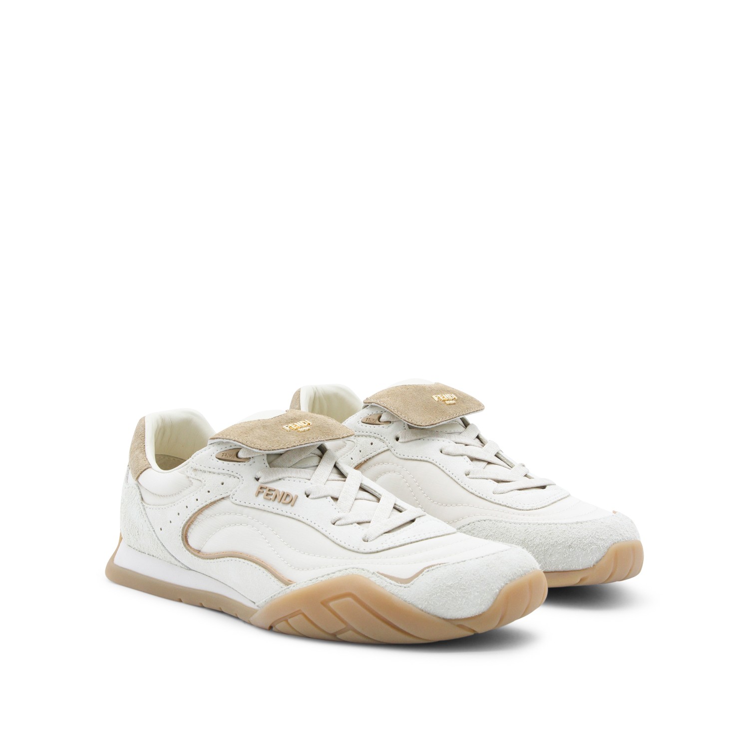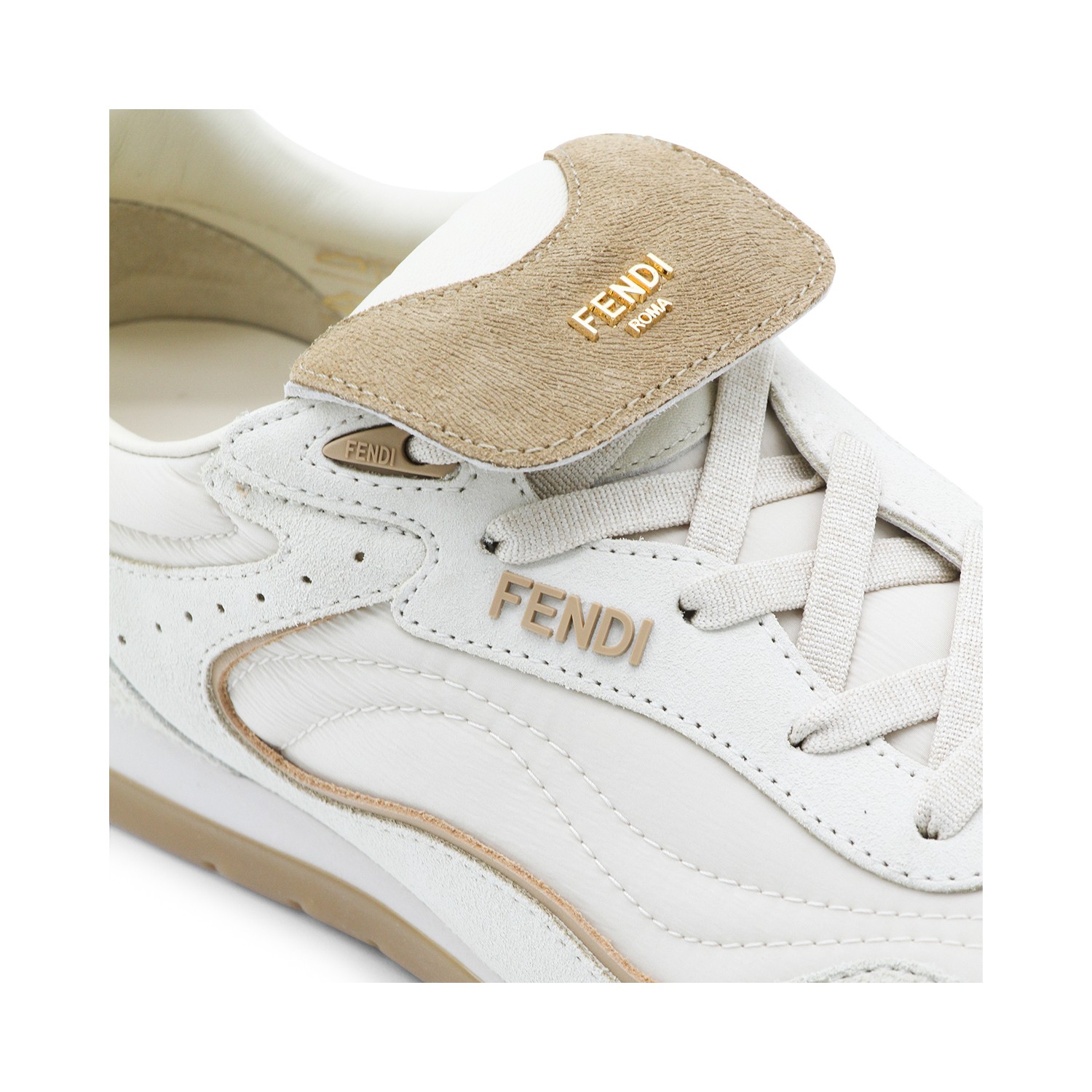 White leather sneakers from Fendi featuring round toe, laces fastening, leather sole and lateral logo.