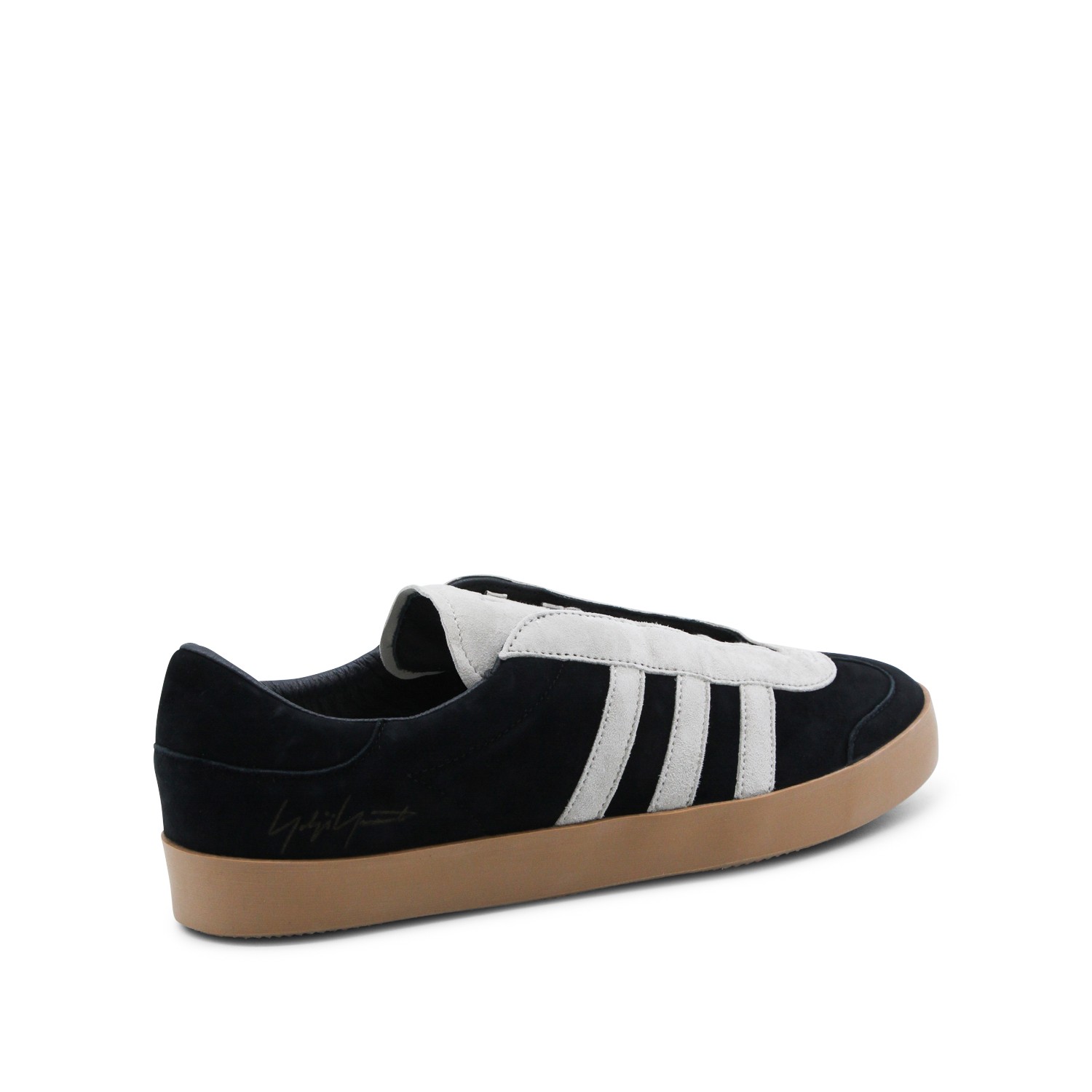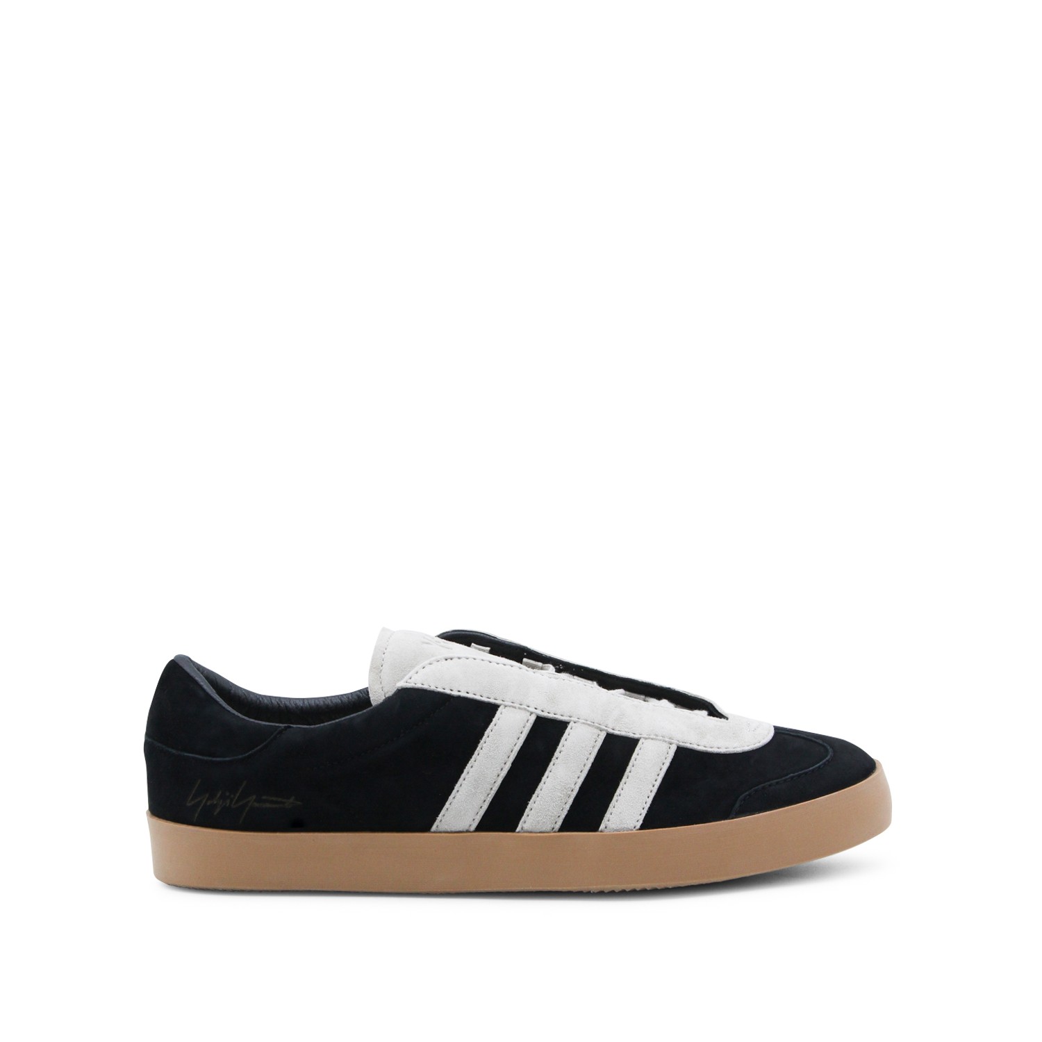 Black Gazelle sneakers from Adidas Y-3 featuring round toe, laces fastening, logo lettering patch and leather sole.