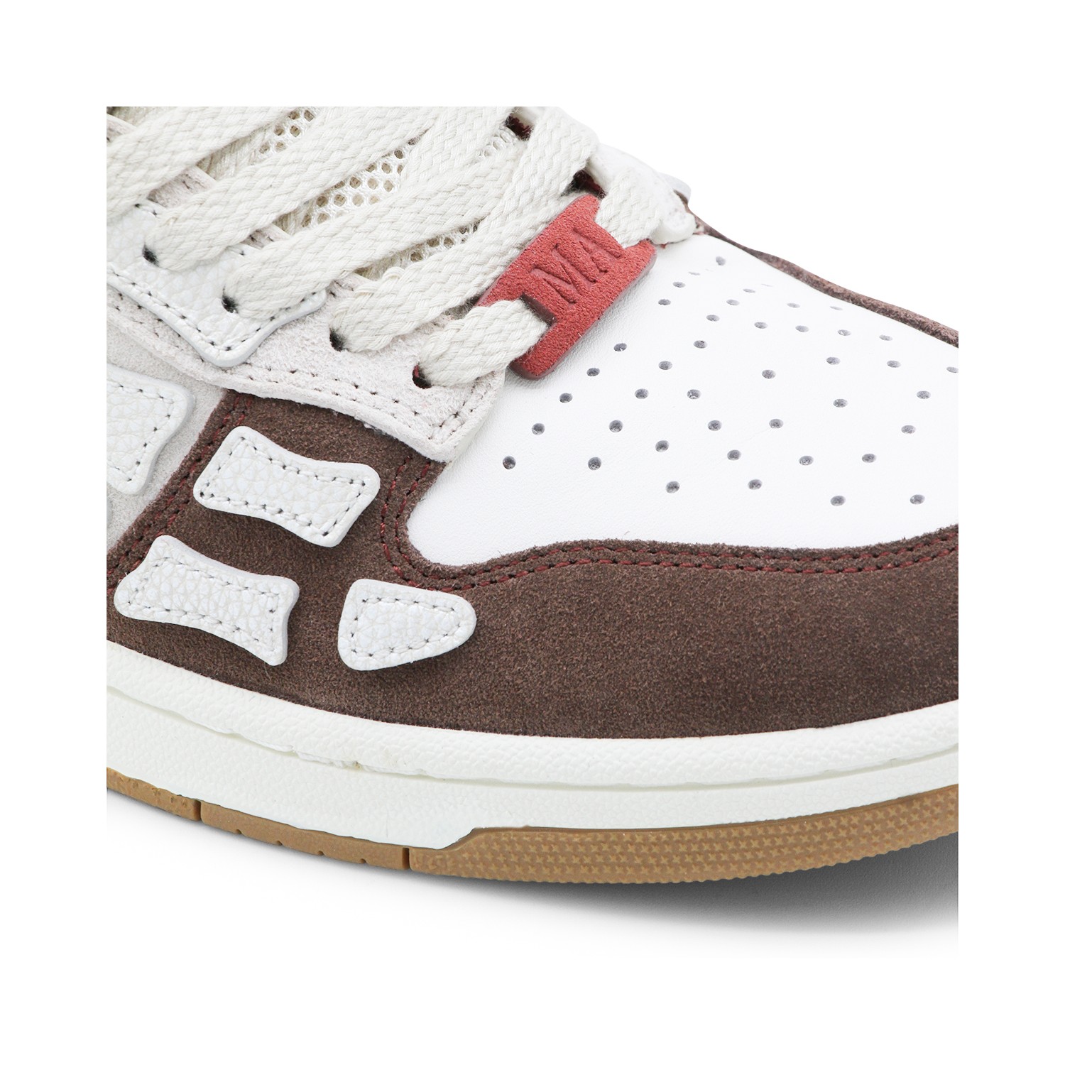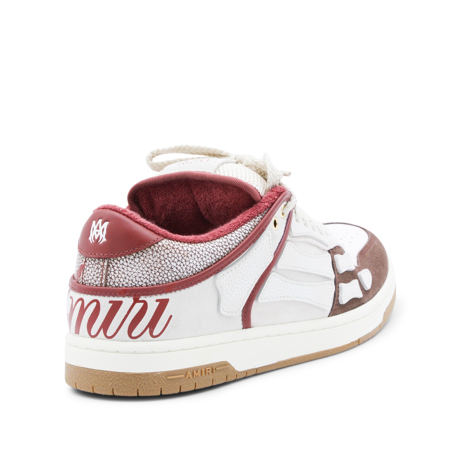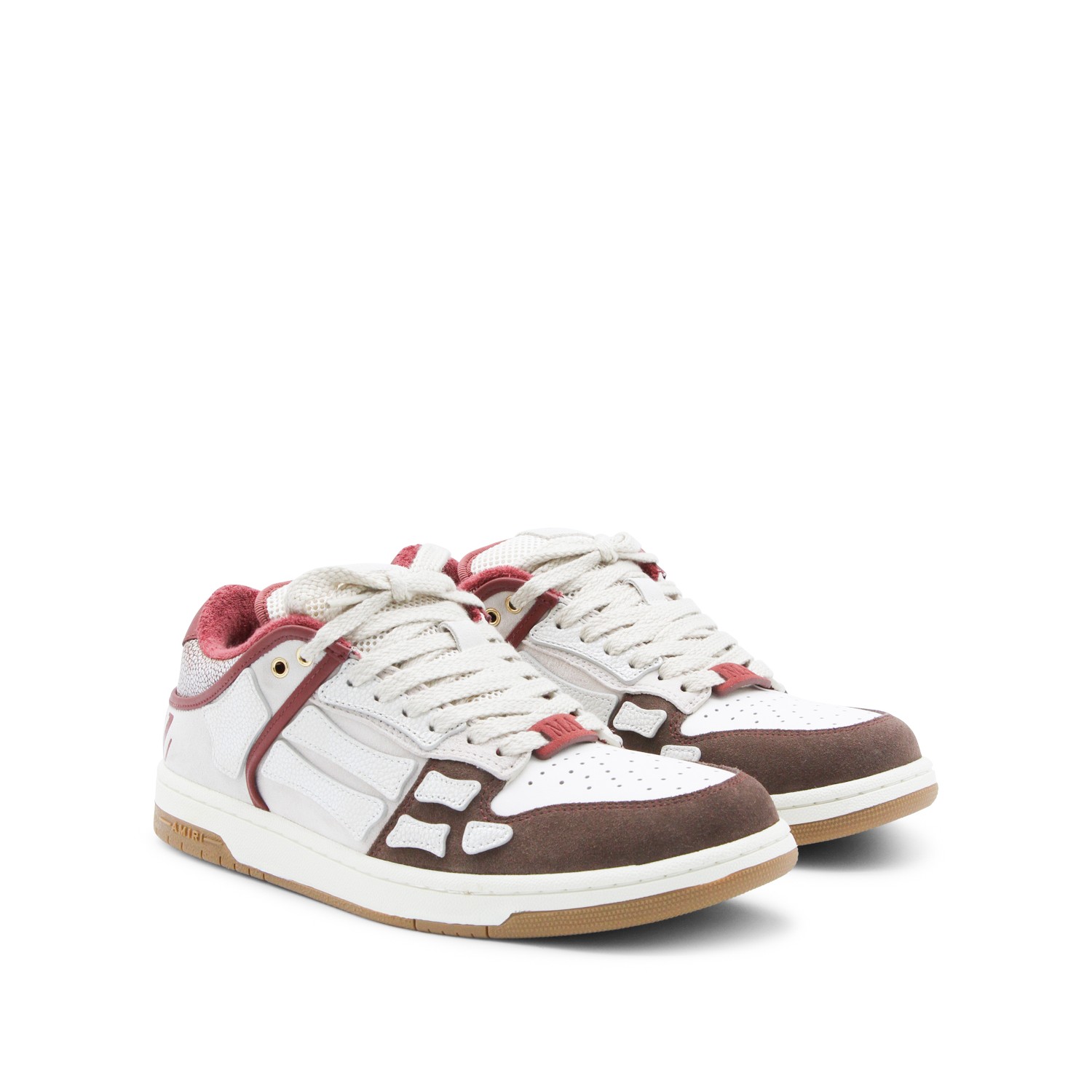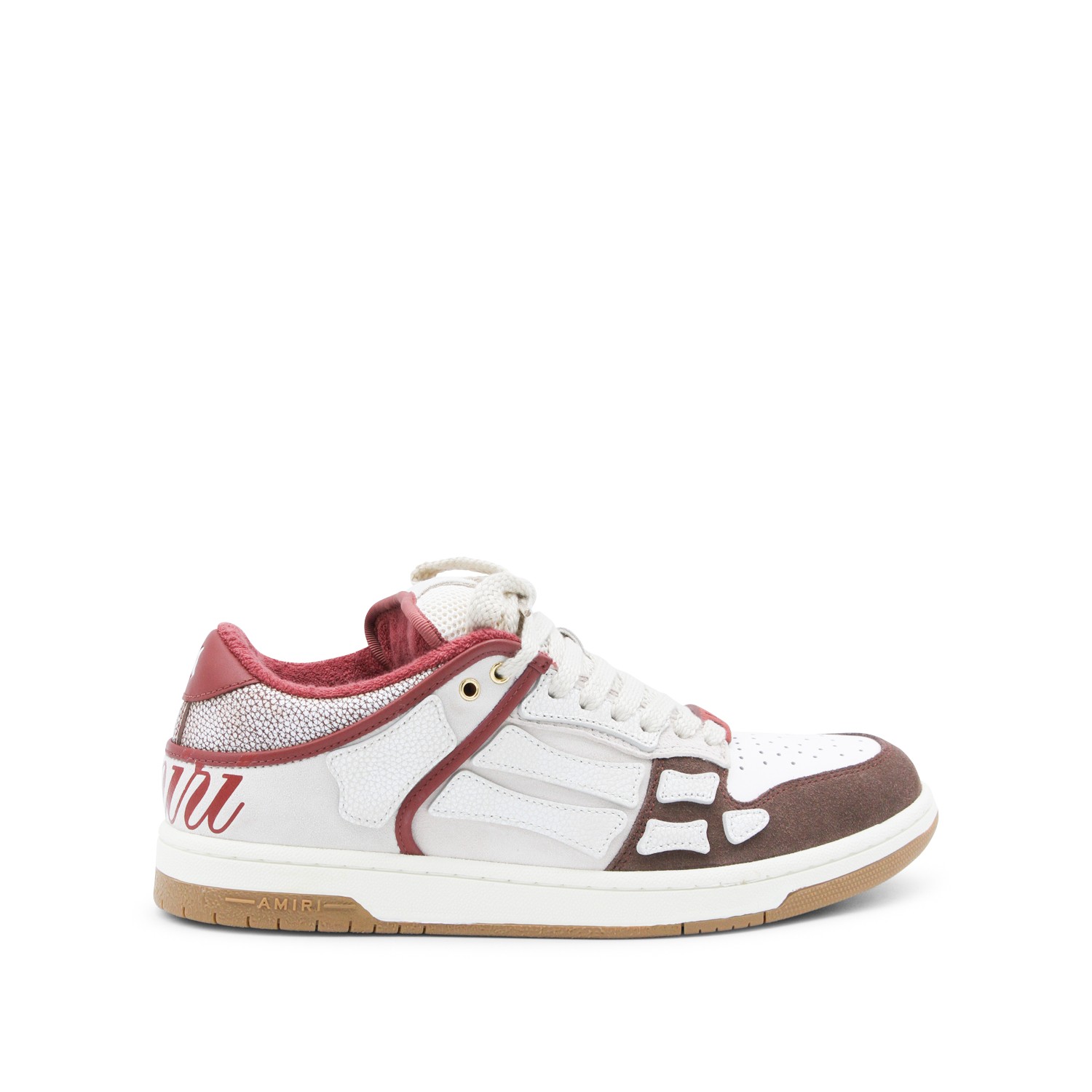 Brown and red leather XL Skel Low sneakers from Amiri featuring round toe, laces fastening, skel details, contrasting heel counter, branded insole and rubber sole.