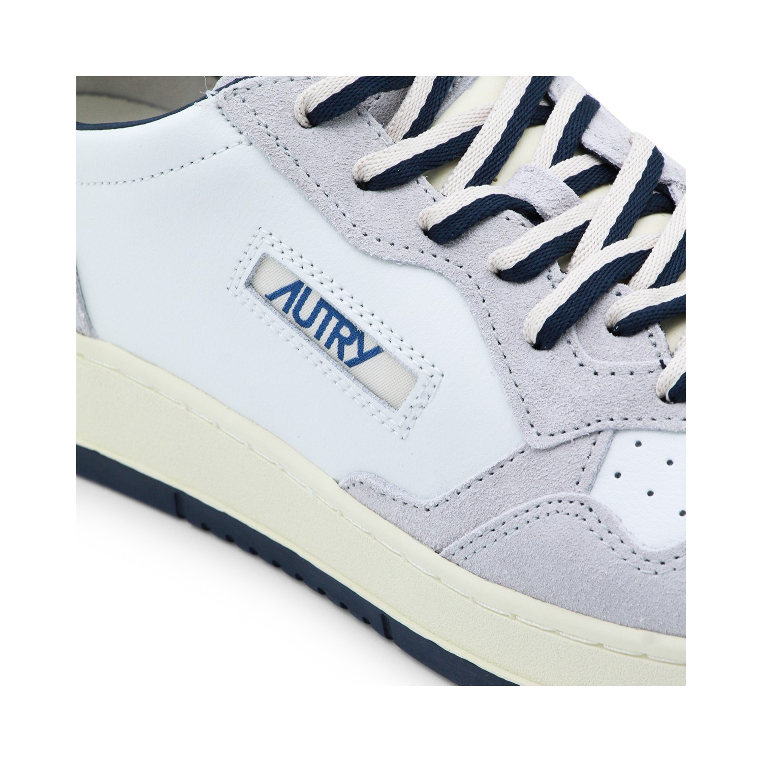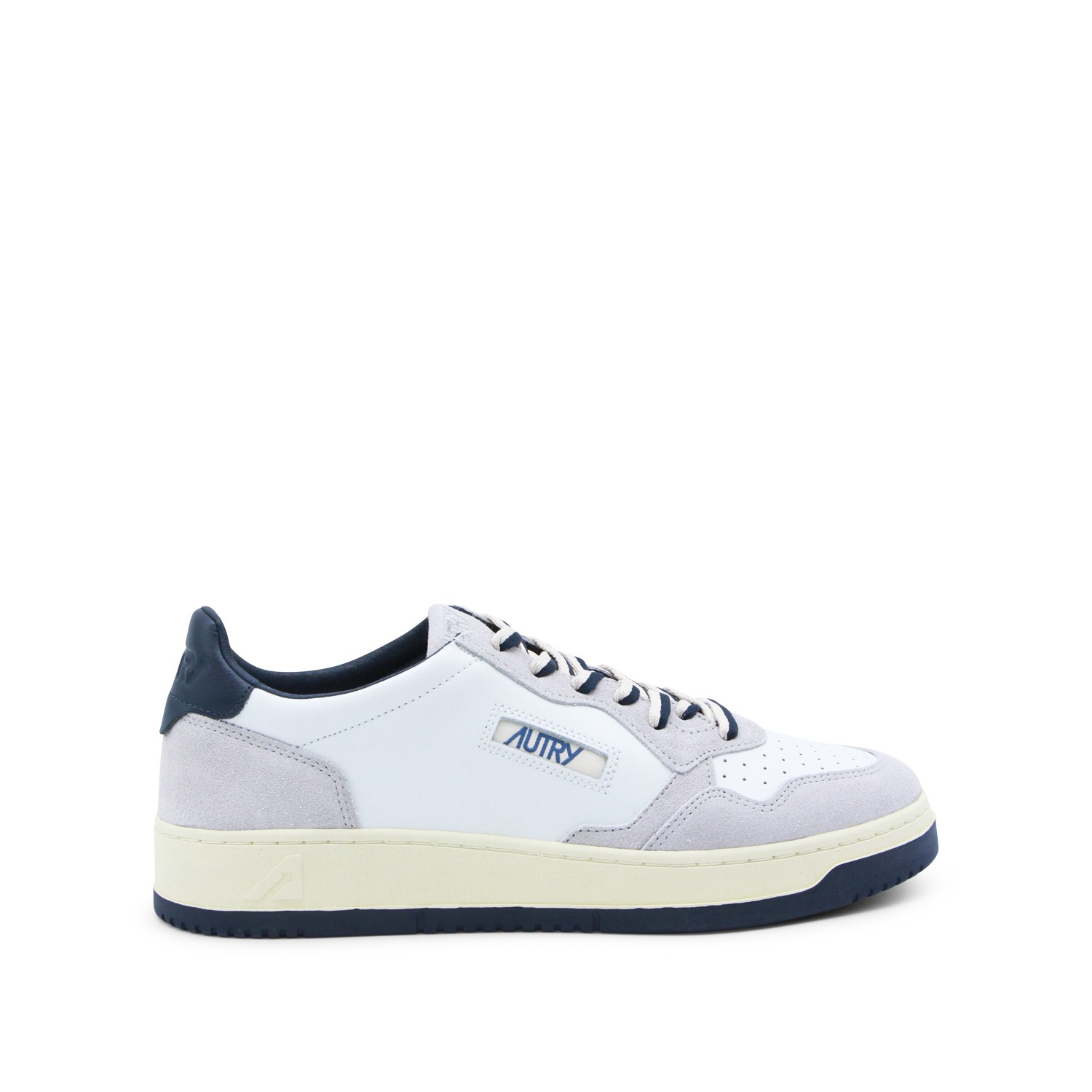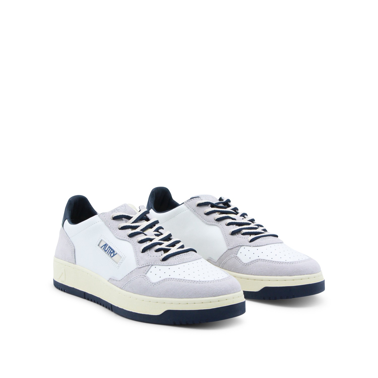 White and grey leather sneakers from Autry featuring round toe, leather sole, lateral logo, cotton laces fastening, branded heel, details and regular vestibility.