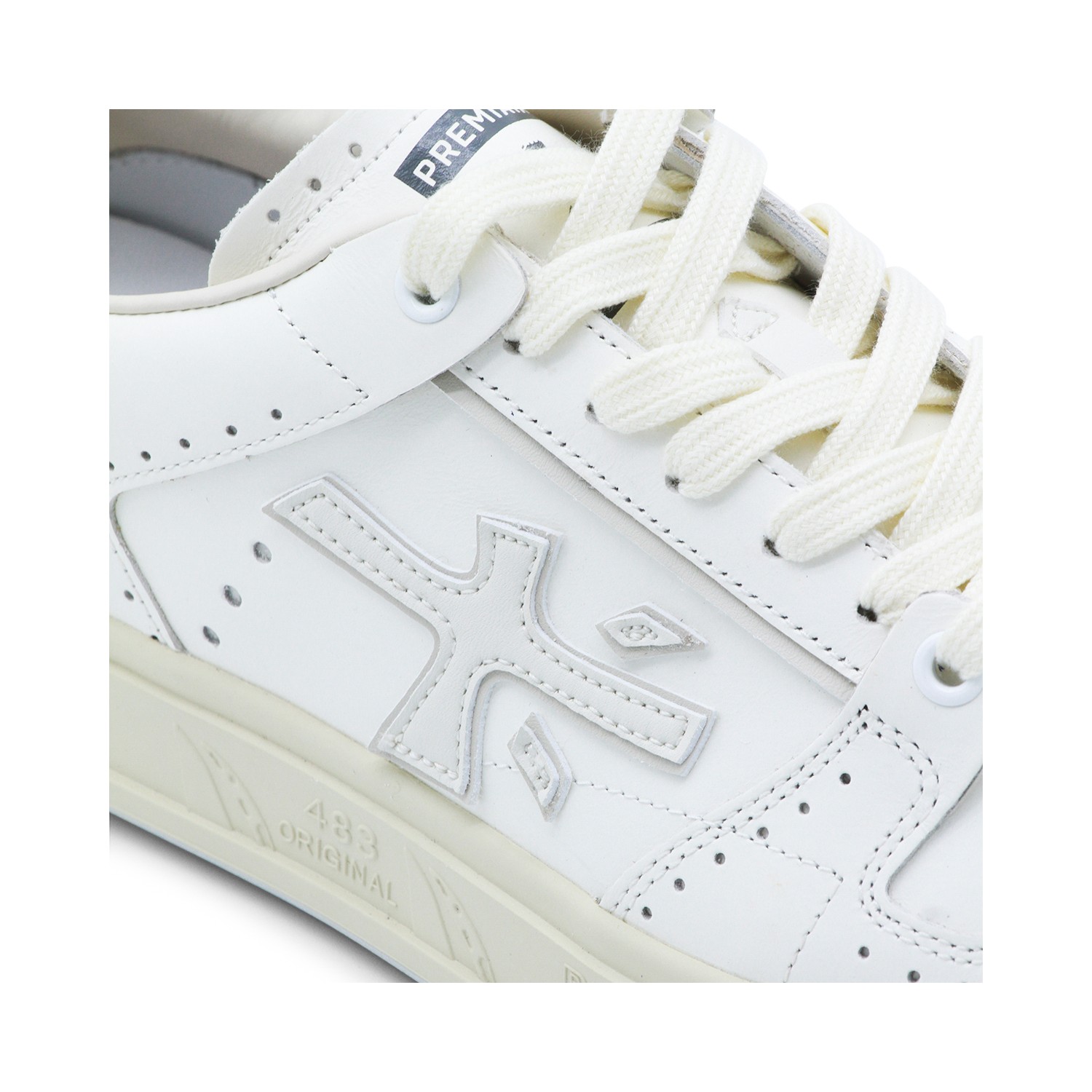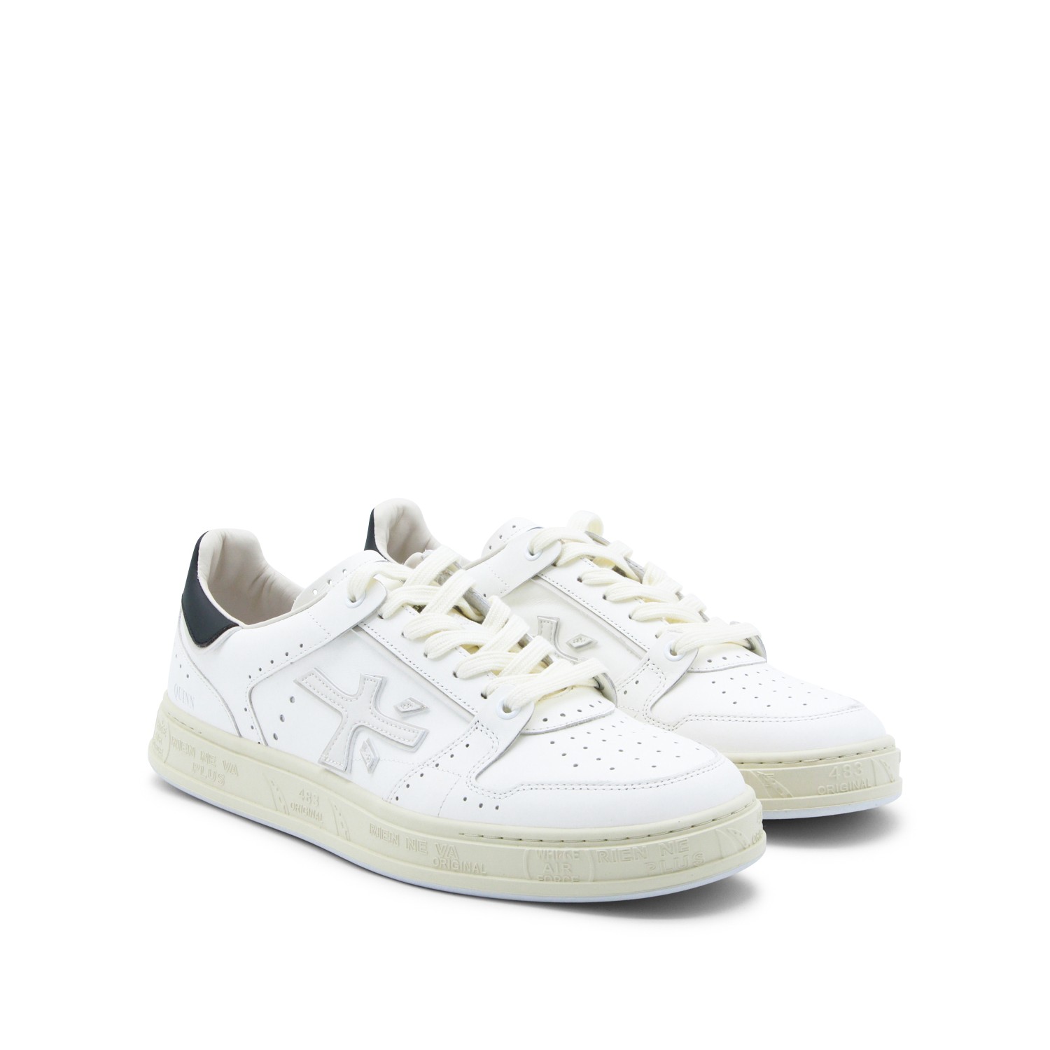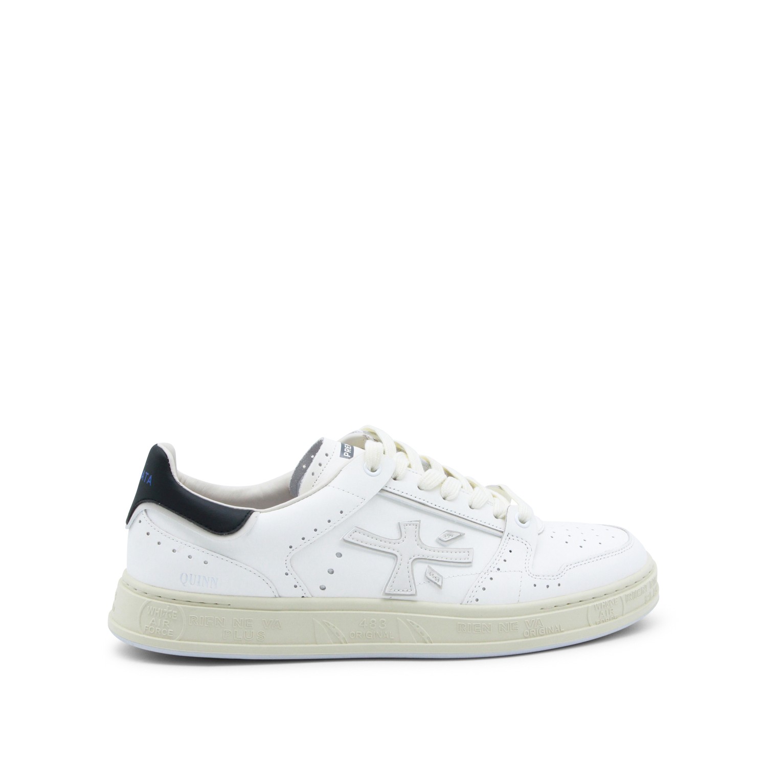 White leather Quinn sneakers from Premiata featuring round toe, rubber sole, lateral logo, laces fastening, branded heel and regular fit.
