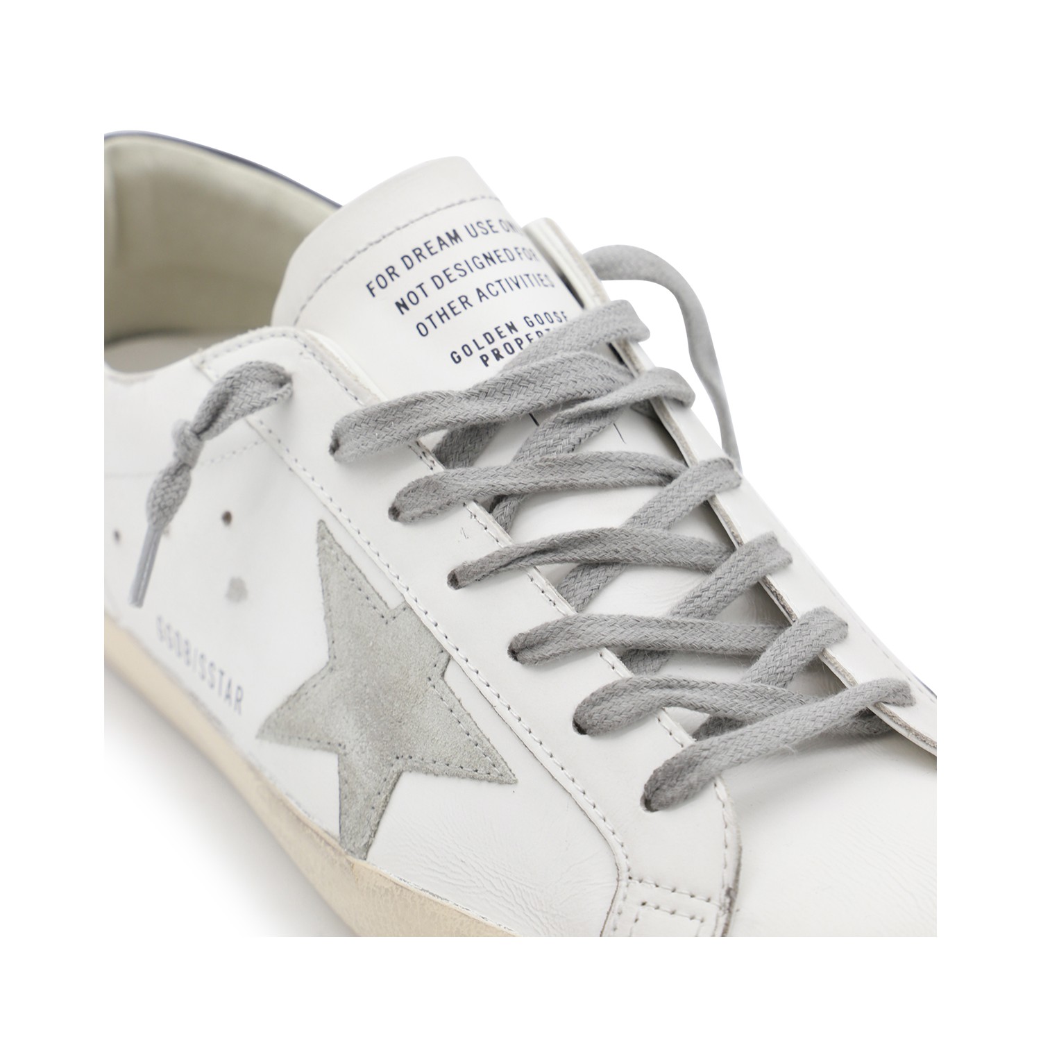 White and grey leather sneakers from Golden Goose featuring round toe, cotton laces, lateral logo and leather sole.