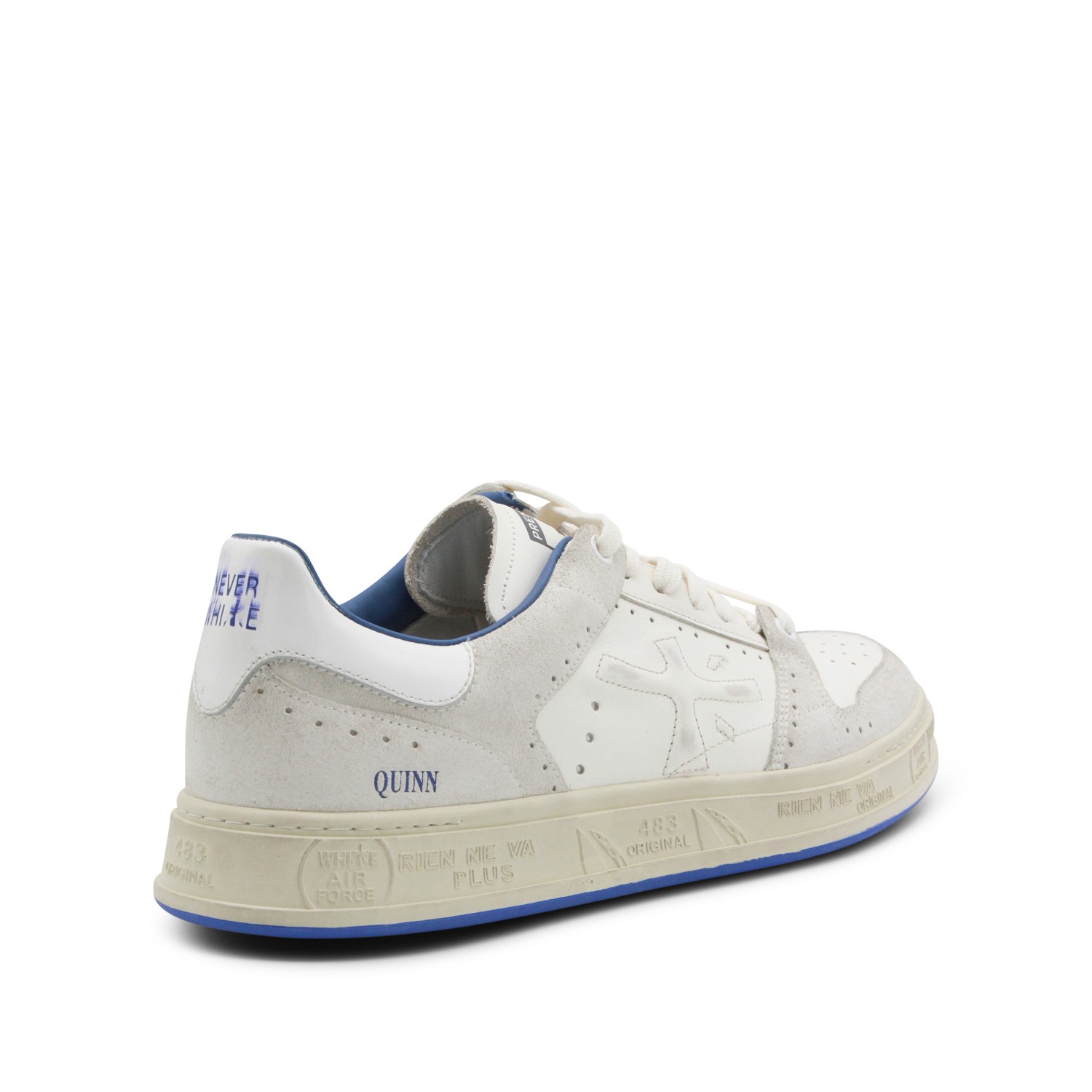 WHITE AND BLUE LEATHER QUINN SNEAKERS