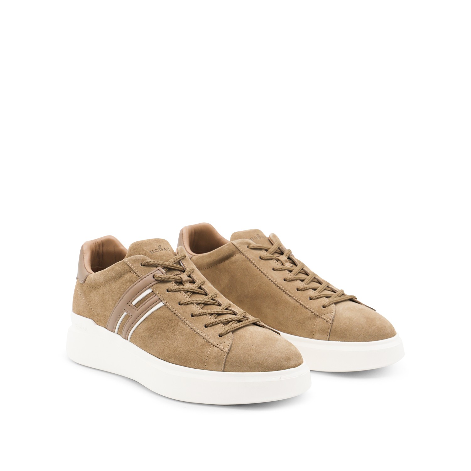 Brown leather H580 sneakers from Hogan featuring round toe, cotton laces fastening, H lateral logo and rubber sole.