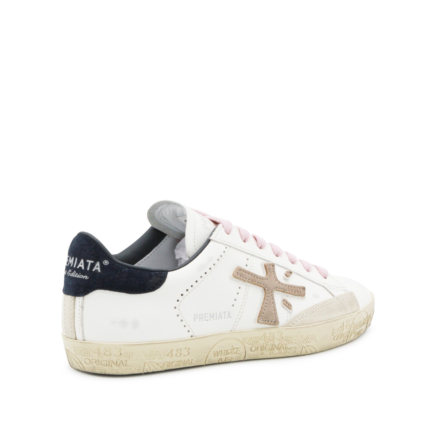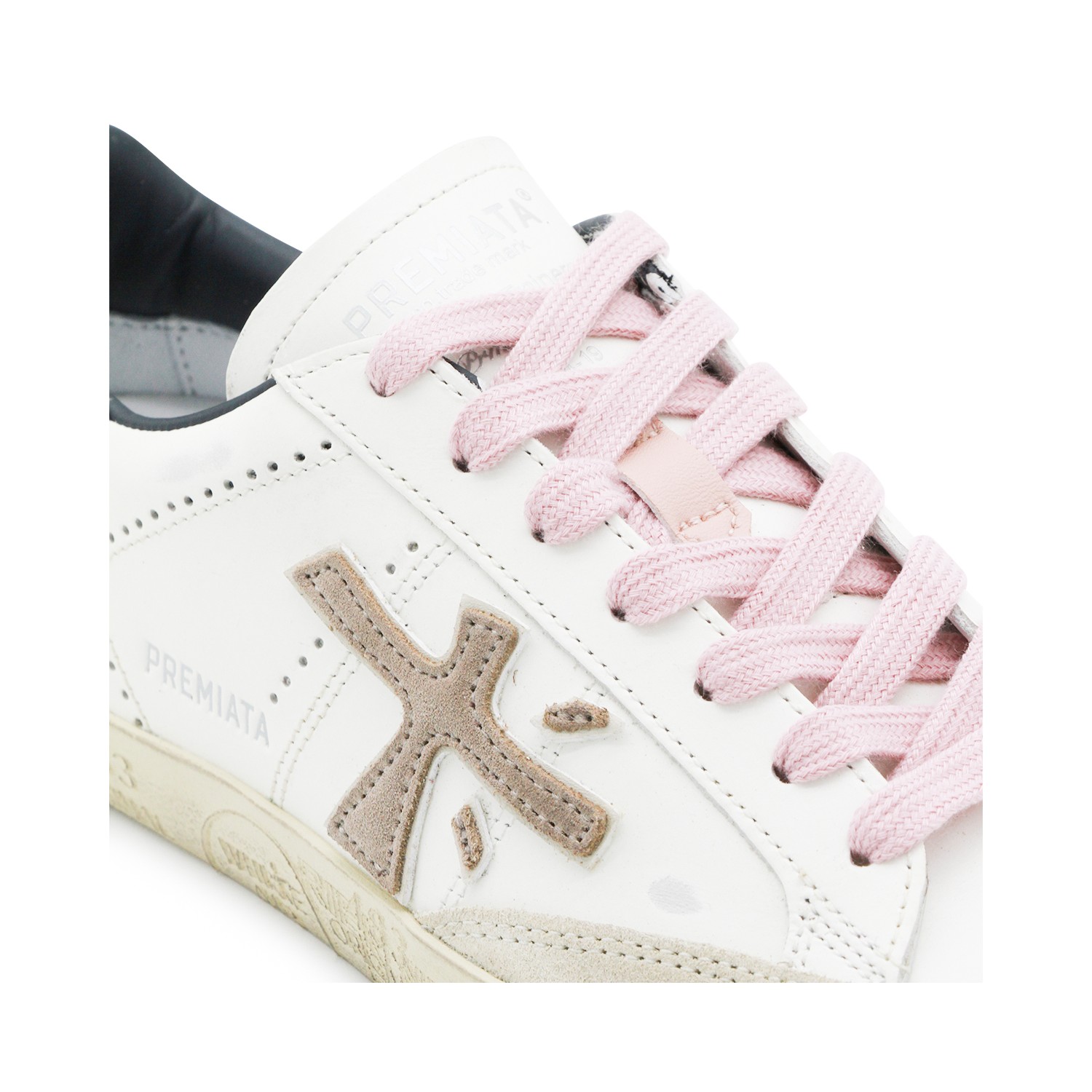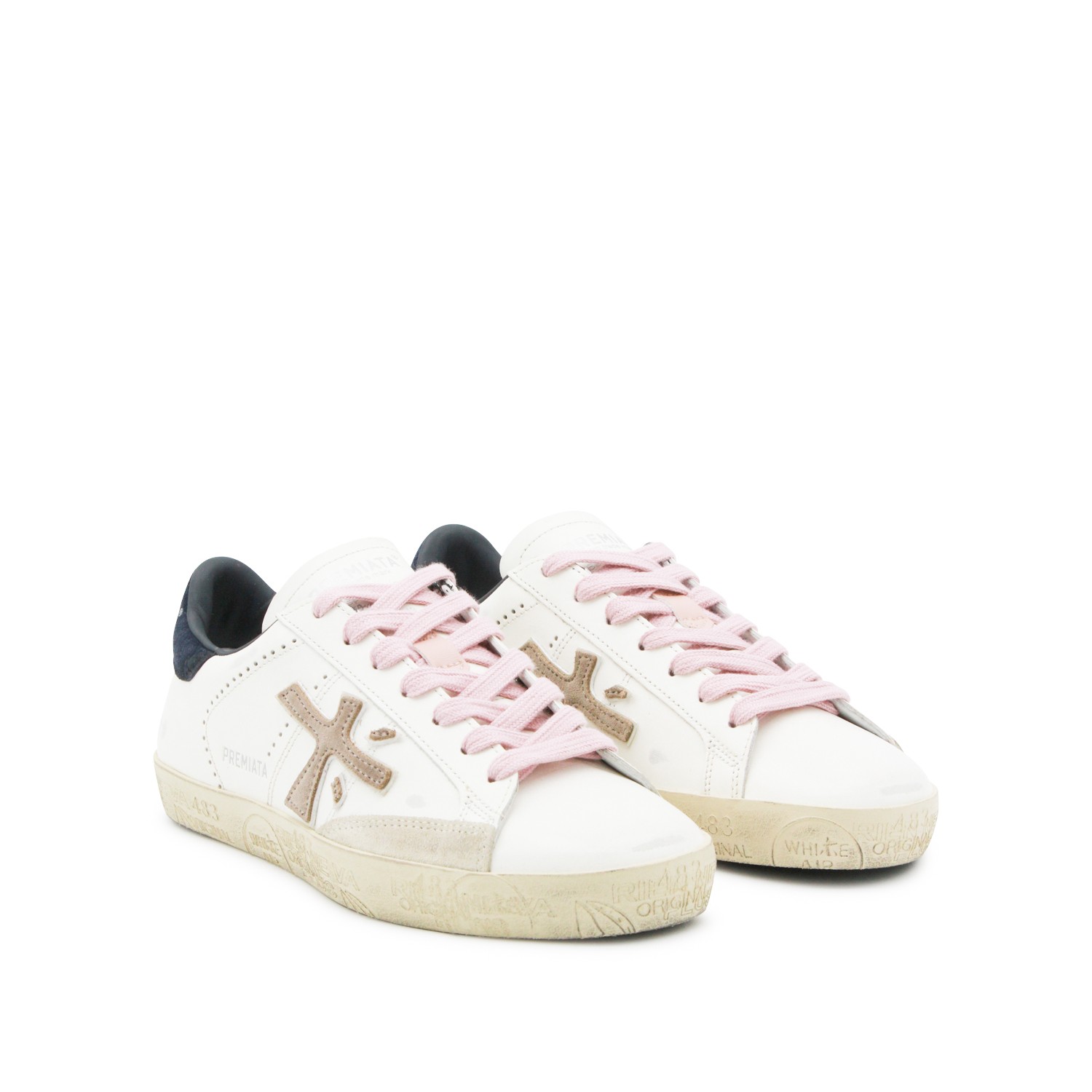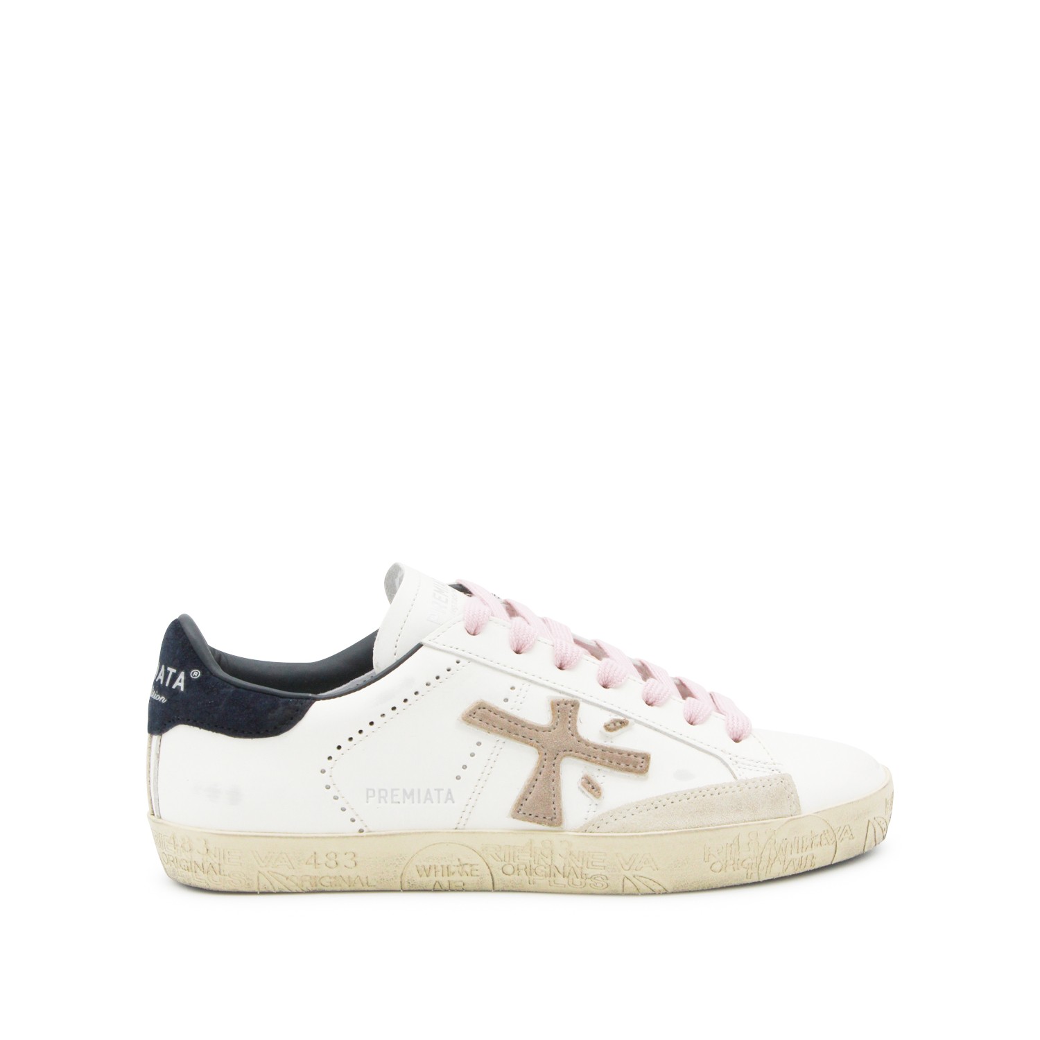 White leather Stevend sneakers from Premiata featuring round toe, laces fastening, logo, contrasting heel counter, branded insole and rubber sole.