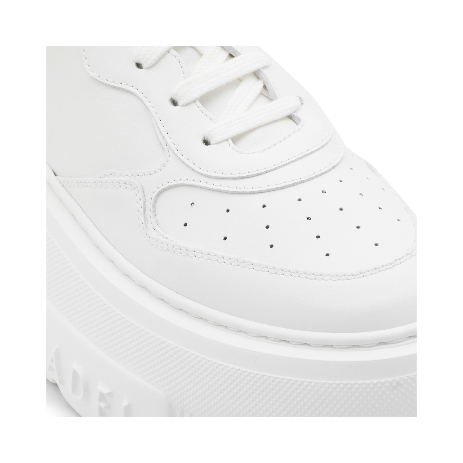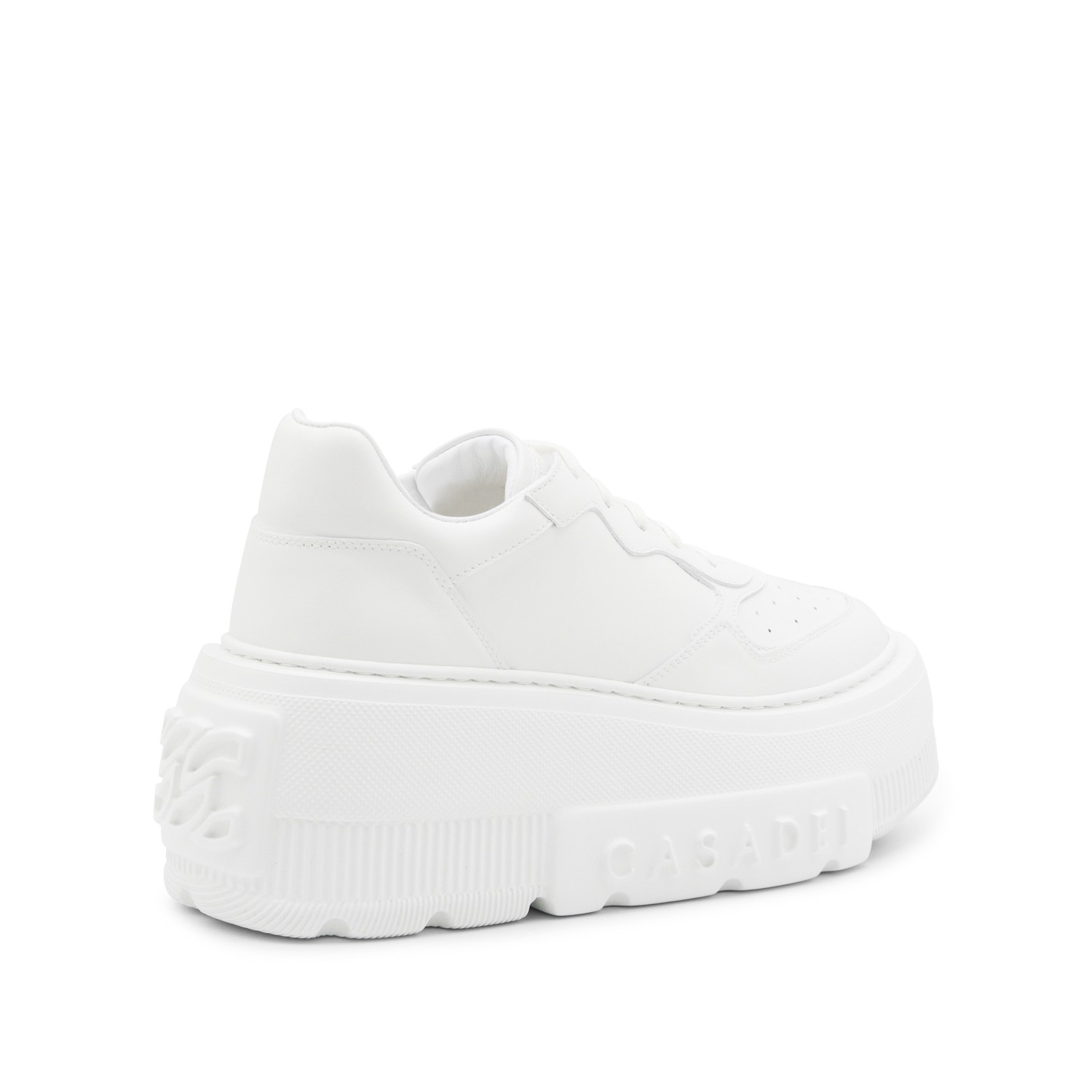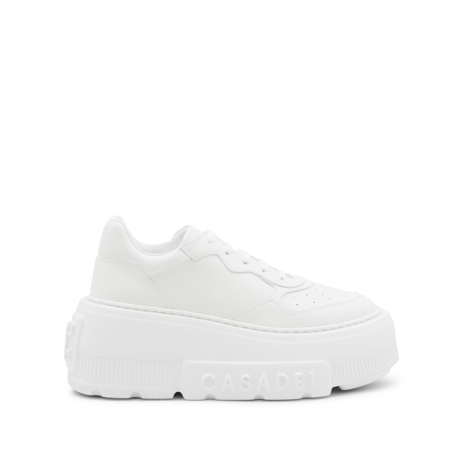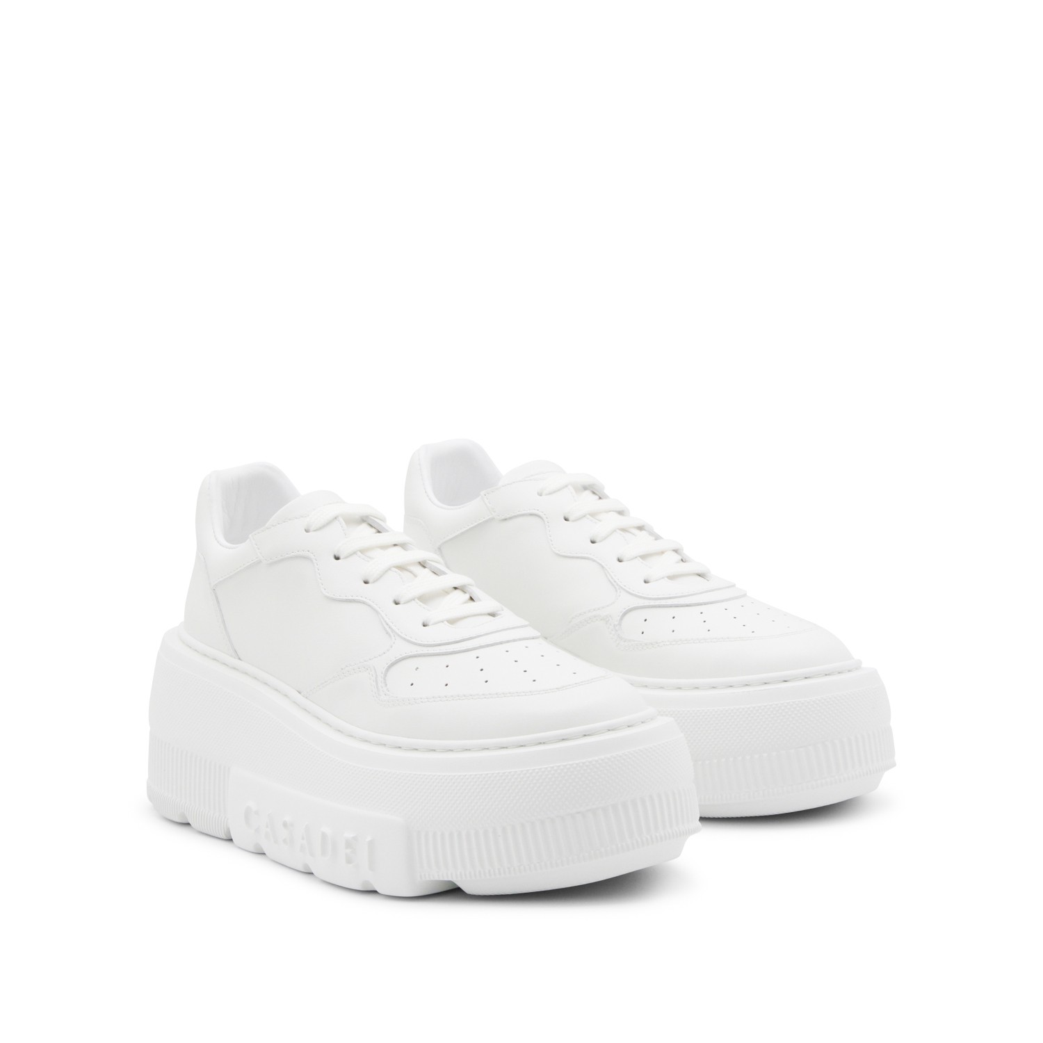 White leather sneakers from Casadei featuring round toe, laces fastening, embossed logo on the sole, platform and rubber sole.