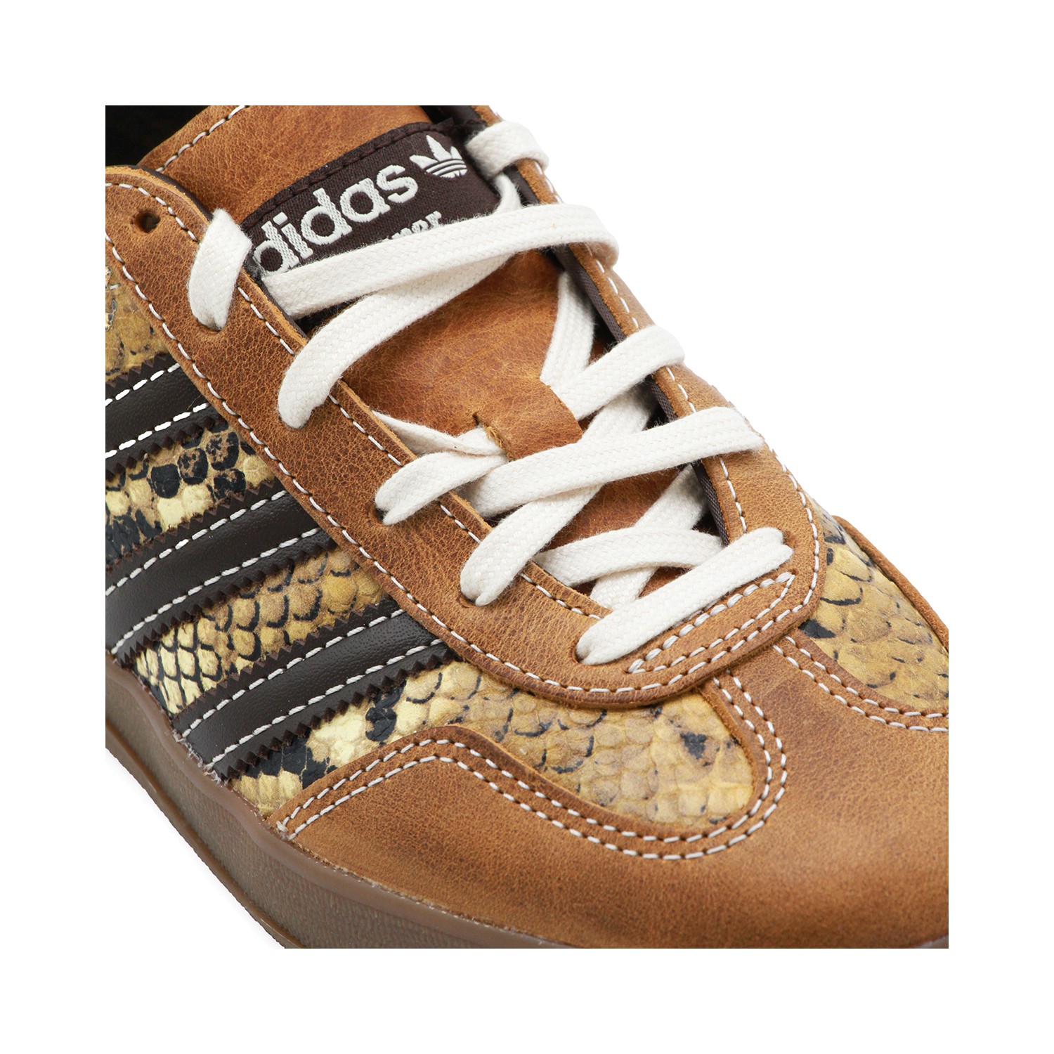 BROWN AND YELLOW LEATHER GAZELLE SNAKE SNEAKERS