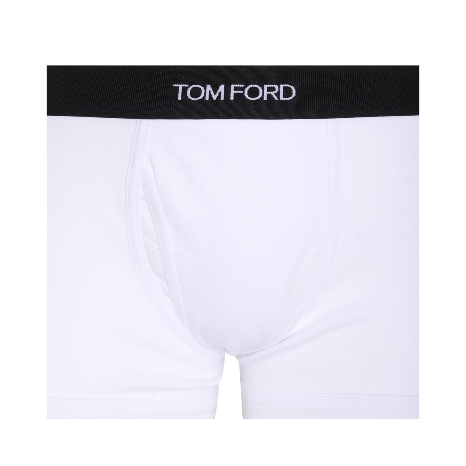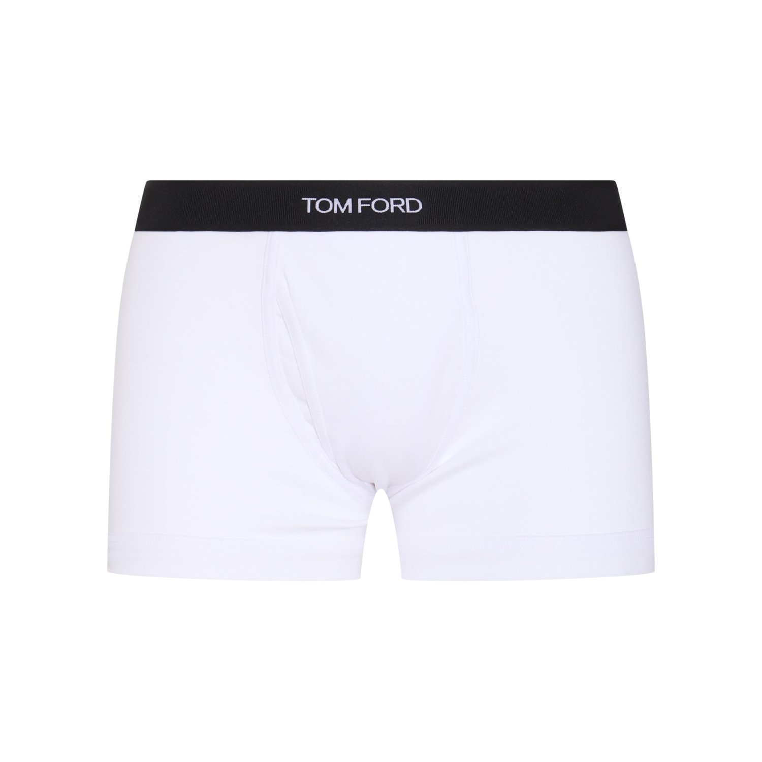 White cotton boxer from Tom Ford featuring an elasticated waistband, contrasting logo and stretch fit.