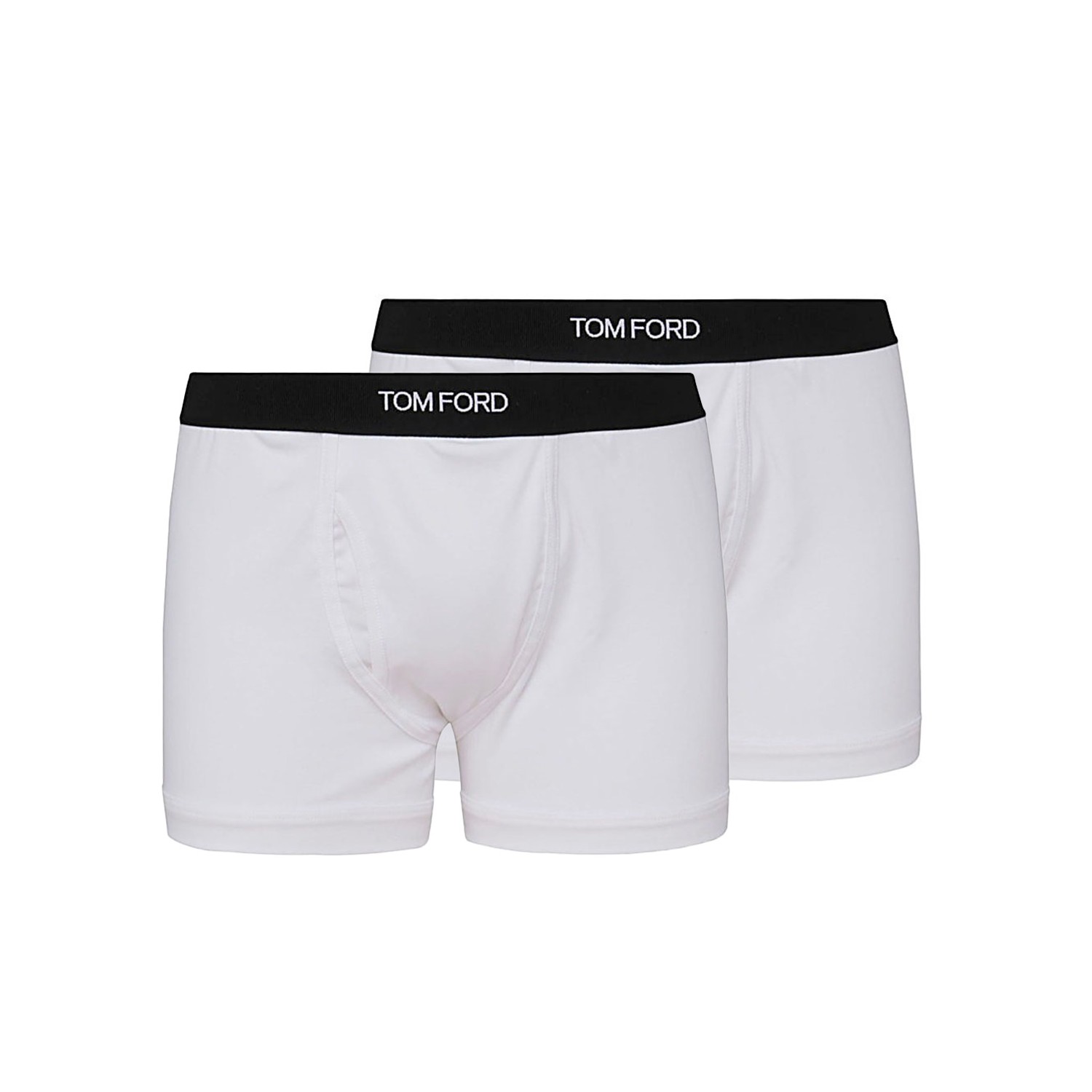 White cotton blend two-pack boxer from Tom Ford featuring slip-on style and logo waistband.