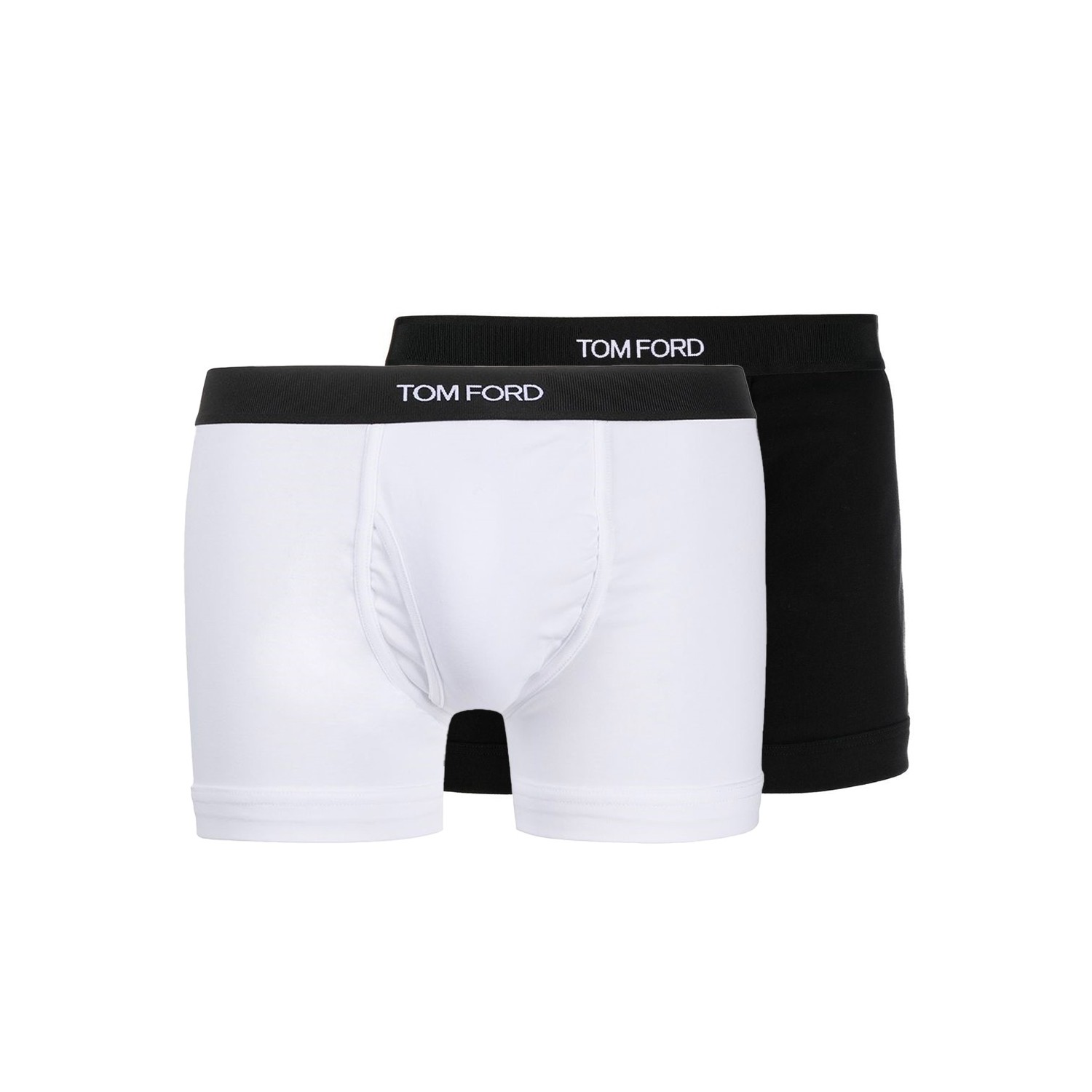 Black and white cotton boxer underwear from Tom Ford Underwear featuring elasticizated waist, logo and double pack.