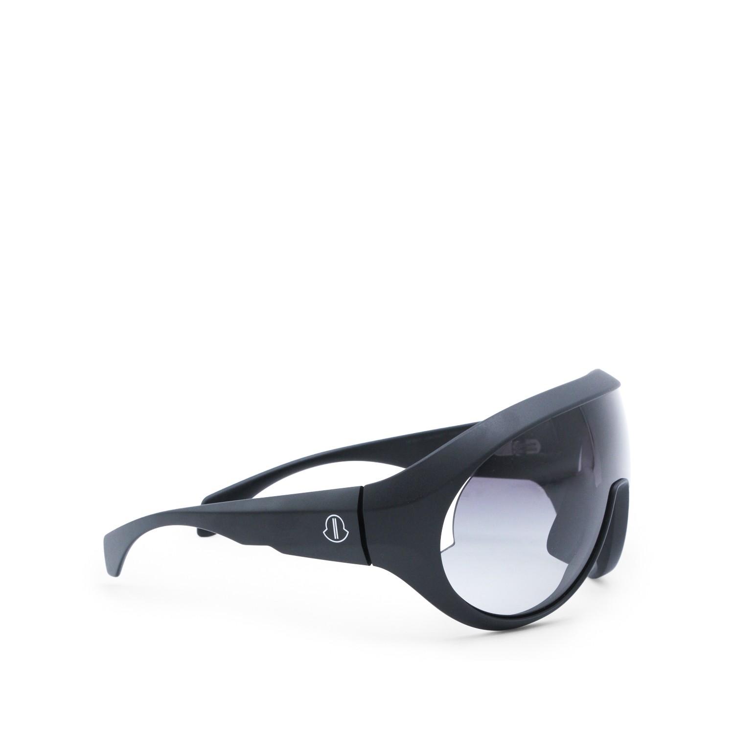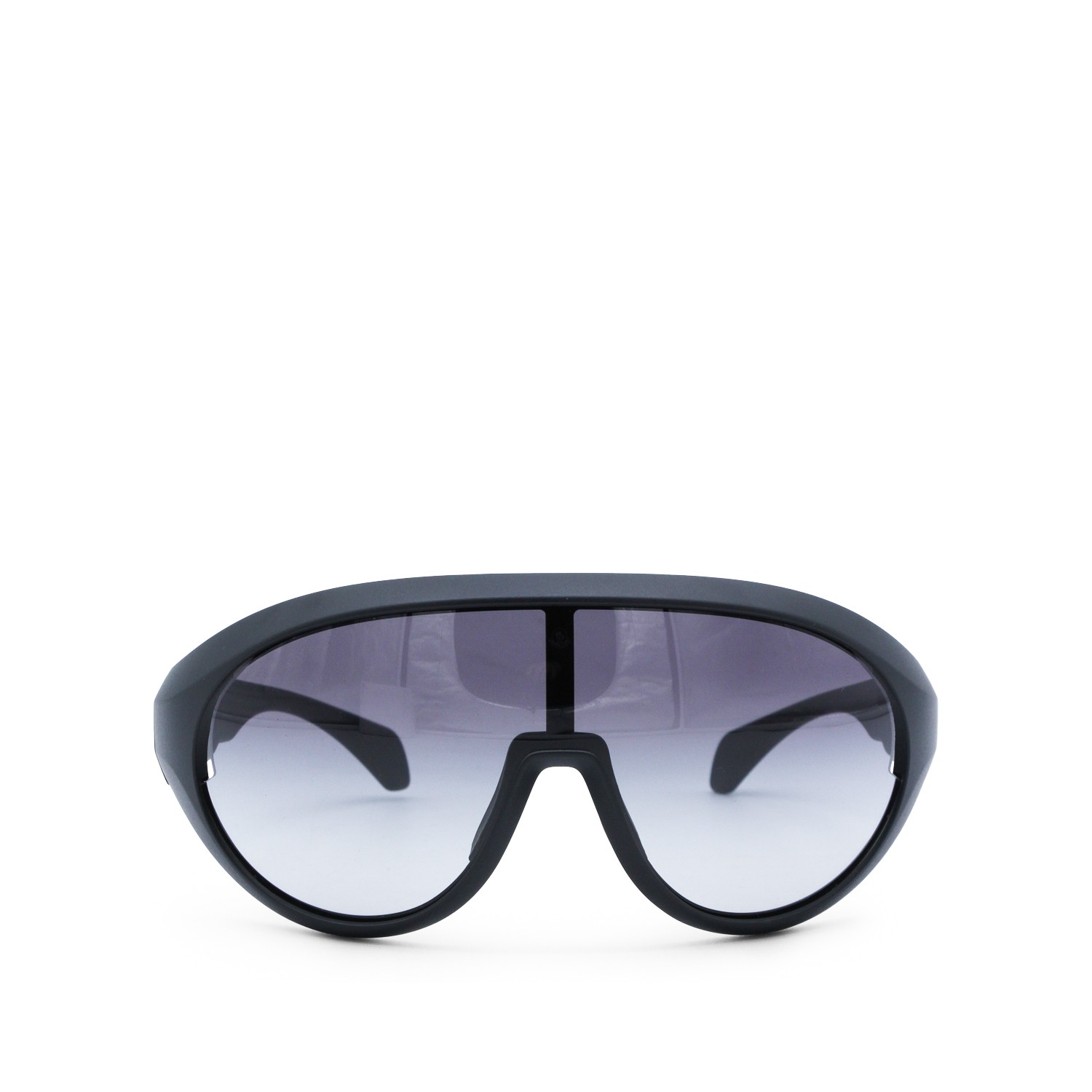Black Contrast Oval sunglasses from Moncler + Rick Owens featuring oval shape, black frame, gradient gray lens and logo details.