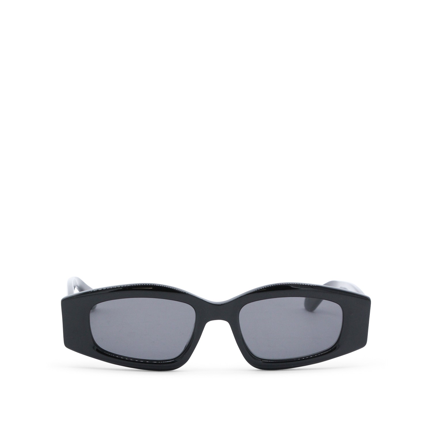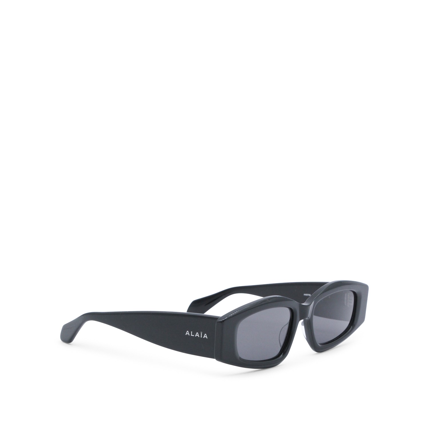 Black sunglasses from Alaia featuring geometric shape and black lens.