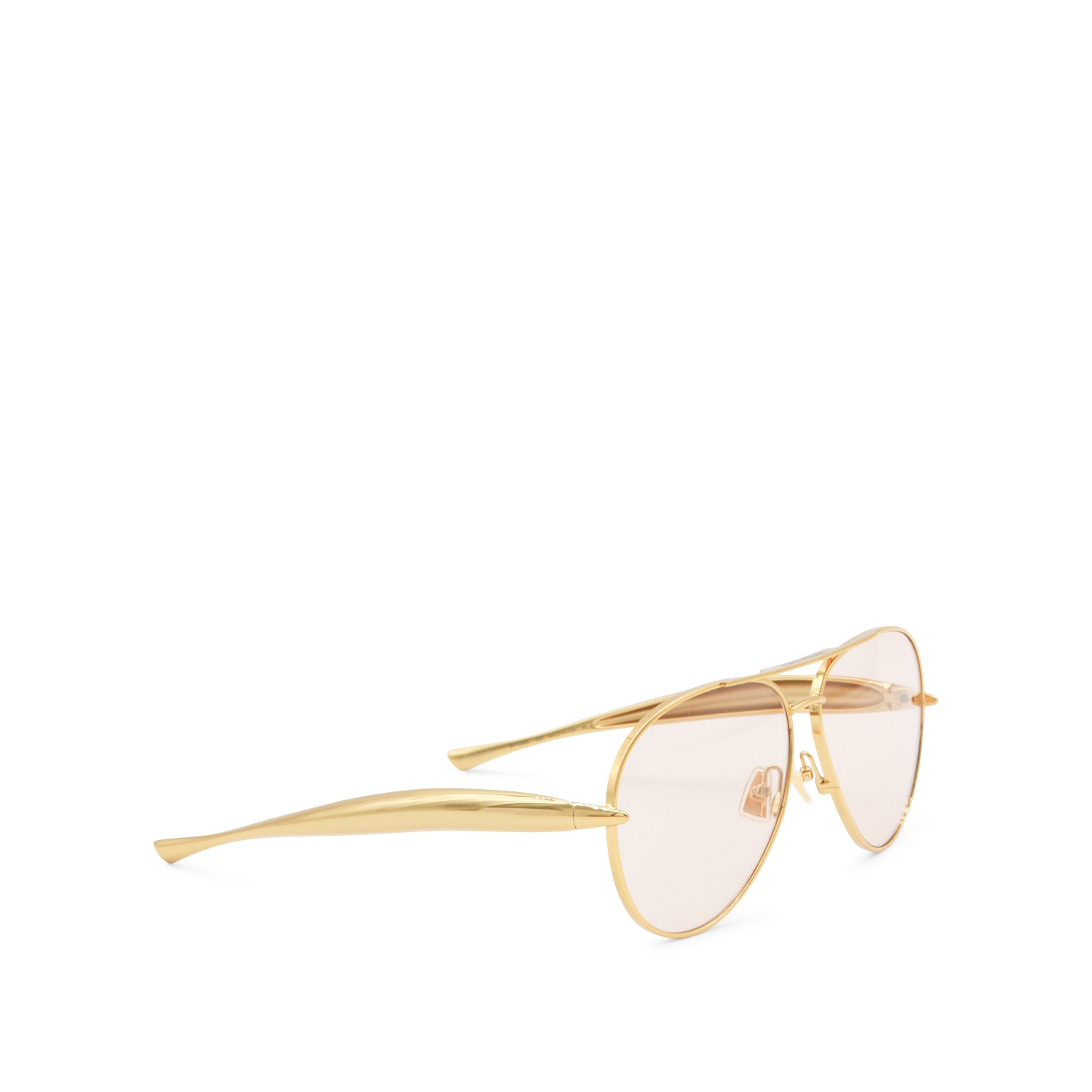 Gold and brown metal sunglass from Bottega Veneta featuring aviator style, sardine-shaped metal temples and gradient lenses.