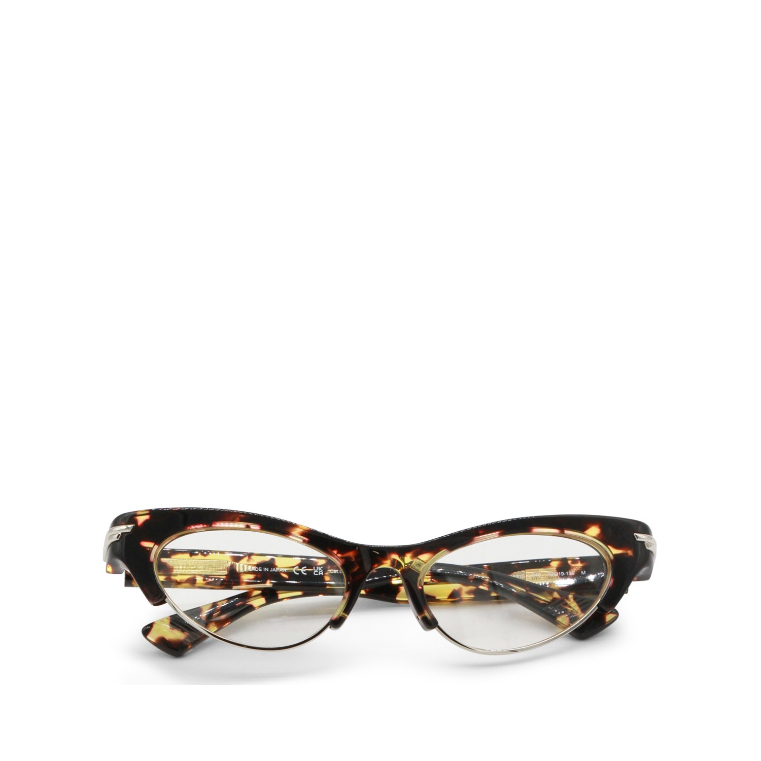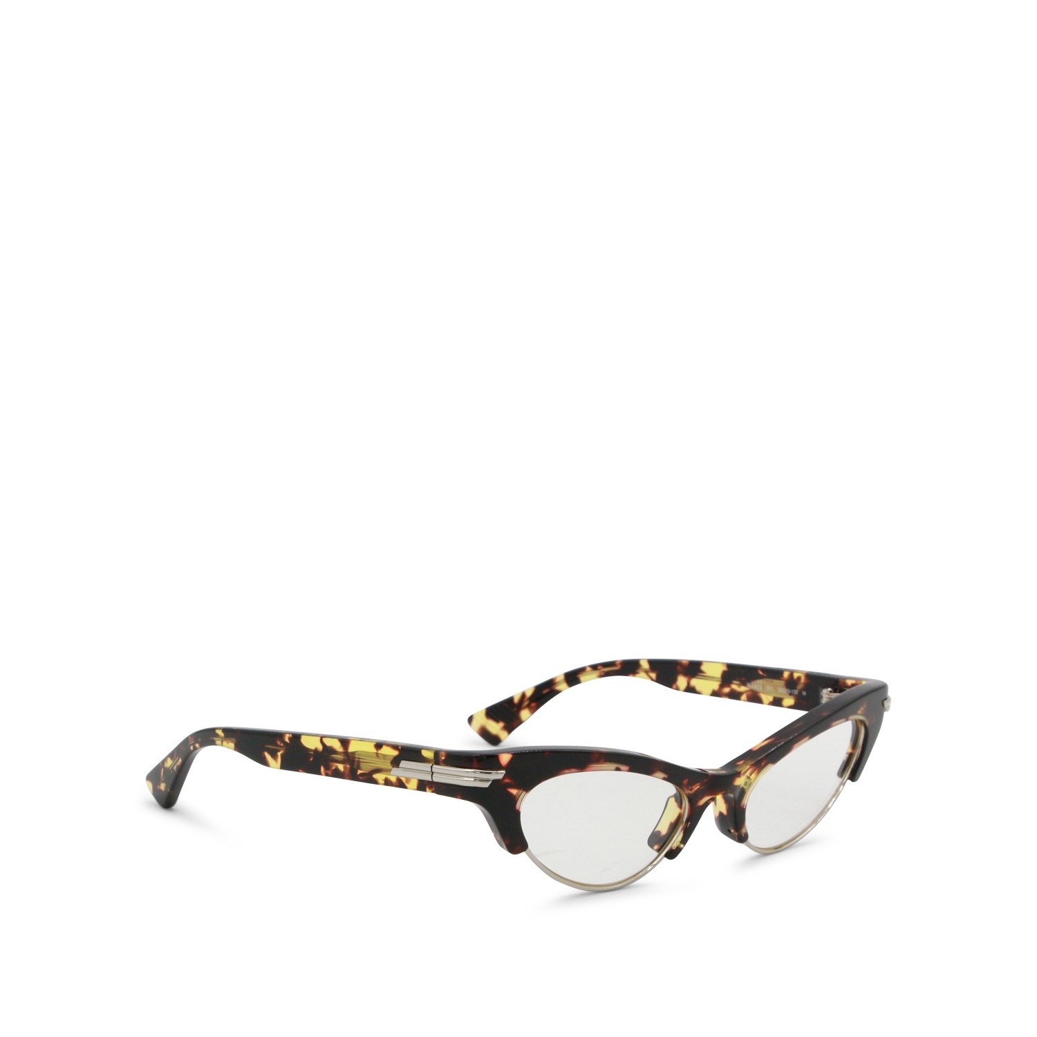 Brown sunglass from Bottega Veneta featuring cat-eye style, trasparent lenses and metal edge details on the bottom.