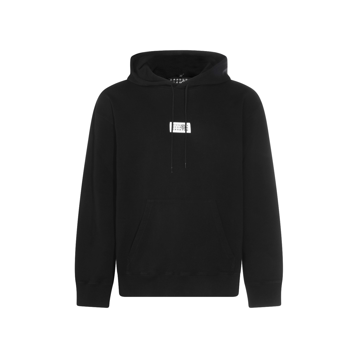 Black cotton sweatshirt from MM6 Maison Margiela featuring hood, cotton laces fastening, long sleeves, frontal logo, frontal pocket and regular vestibility.