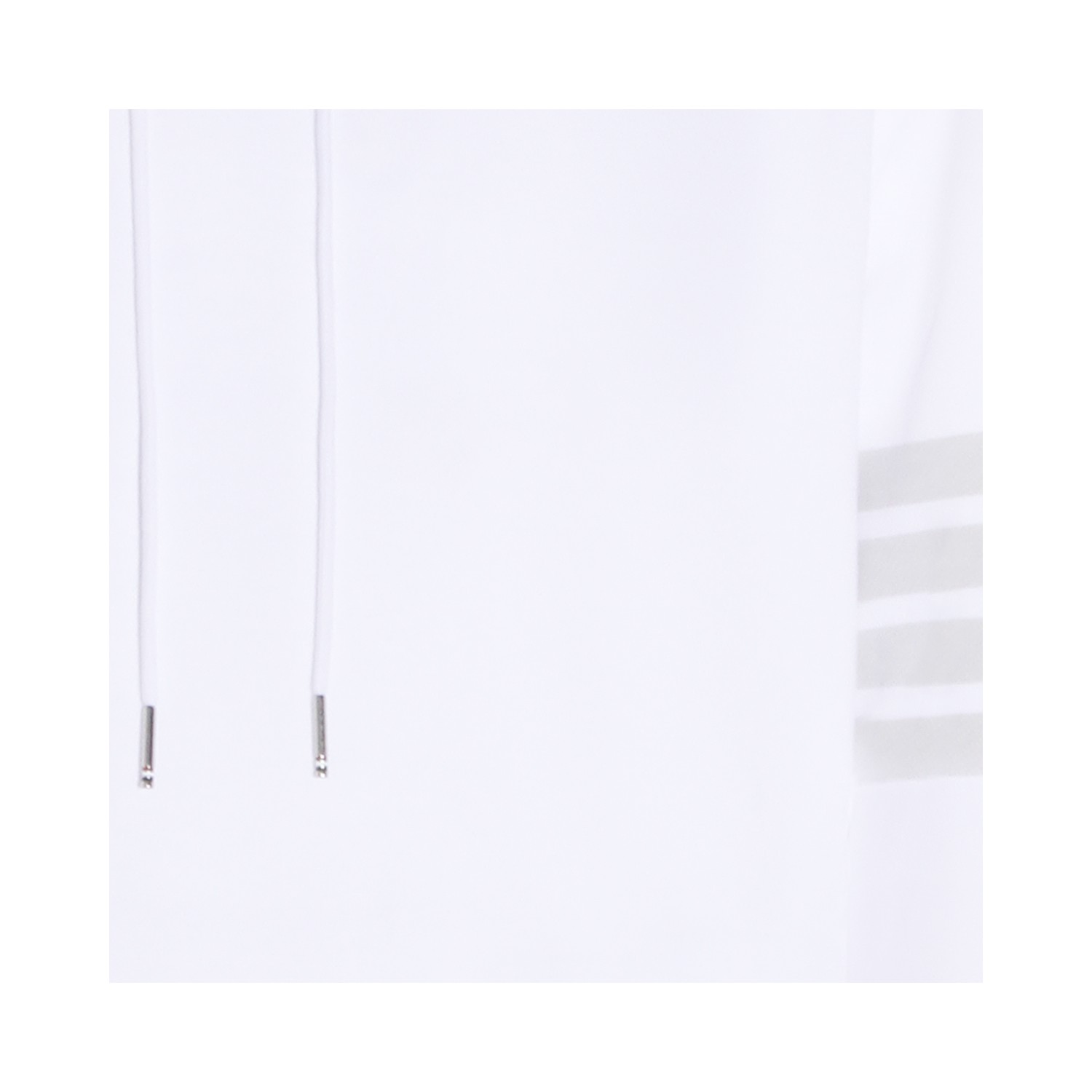 White cotton sweatshirt from Thom Browne featuring drawstring hood, ribbed cuffs and hem, 4-bar detailing, logo appliquand regular fit.