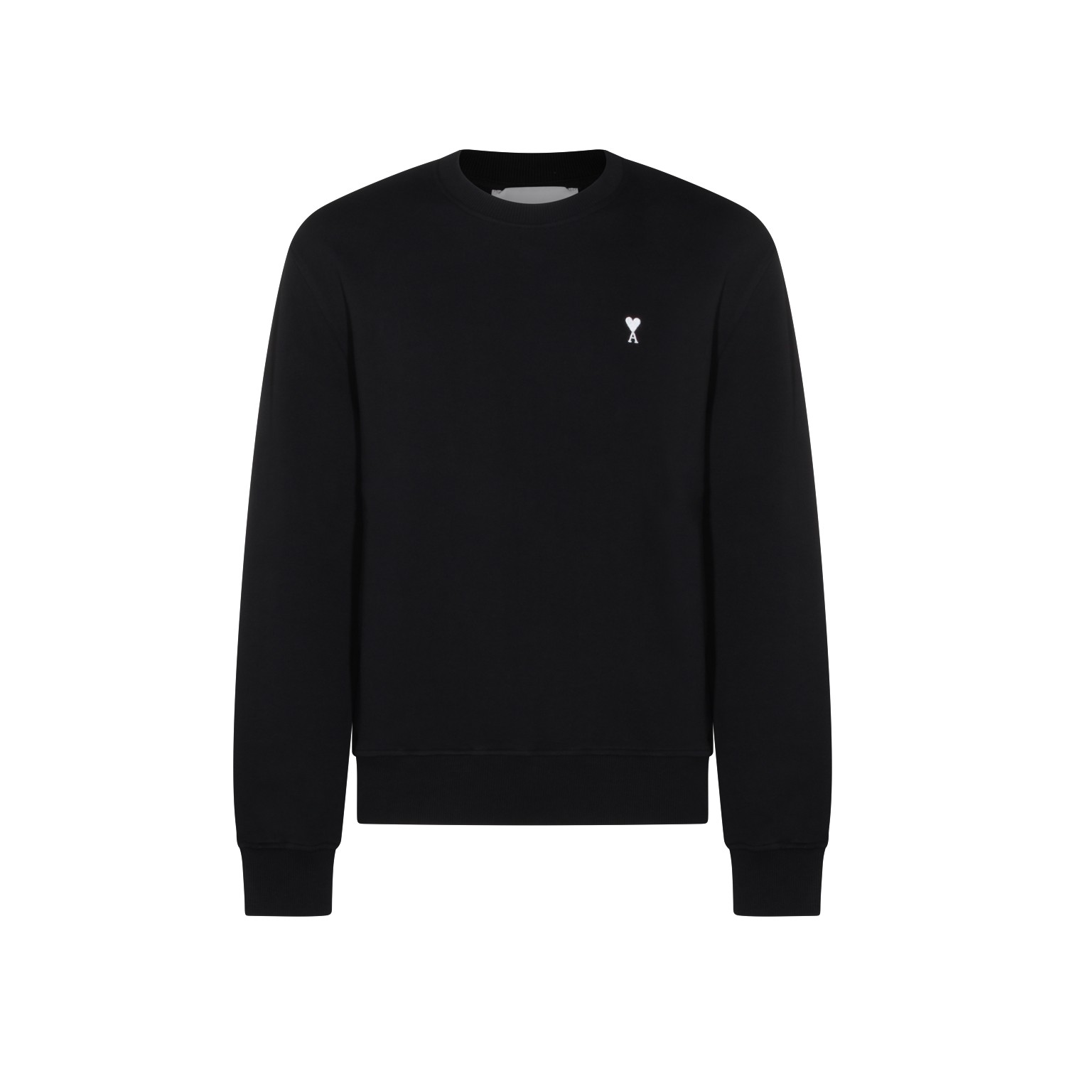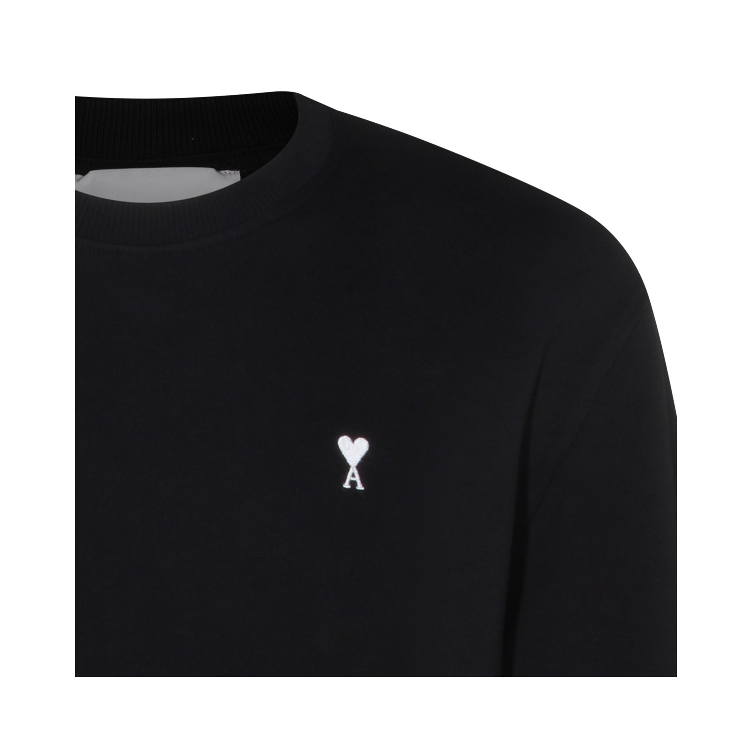 Black cotton sweatshirt from Ami Paris featuring round collar, ribbed cuffs and hem and logo.