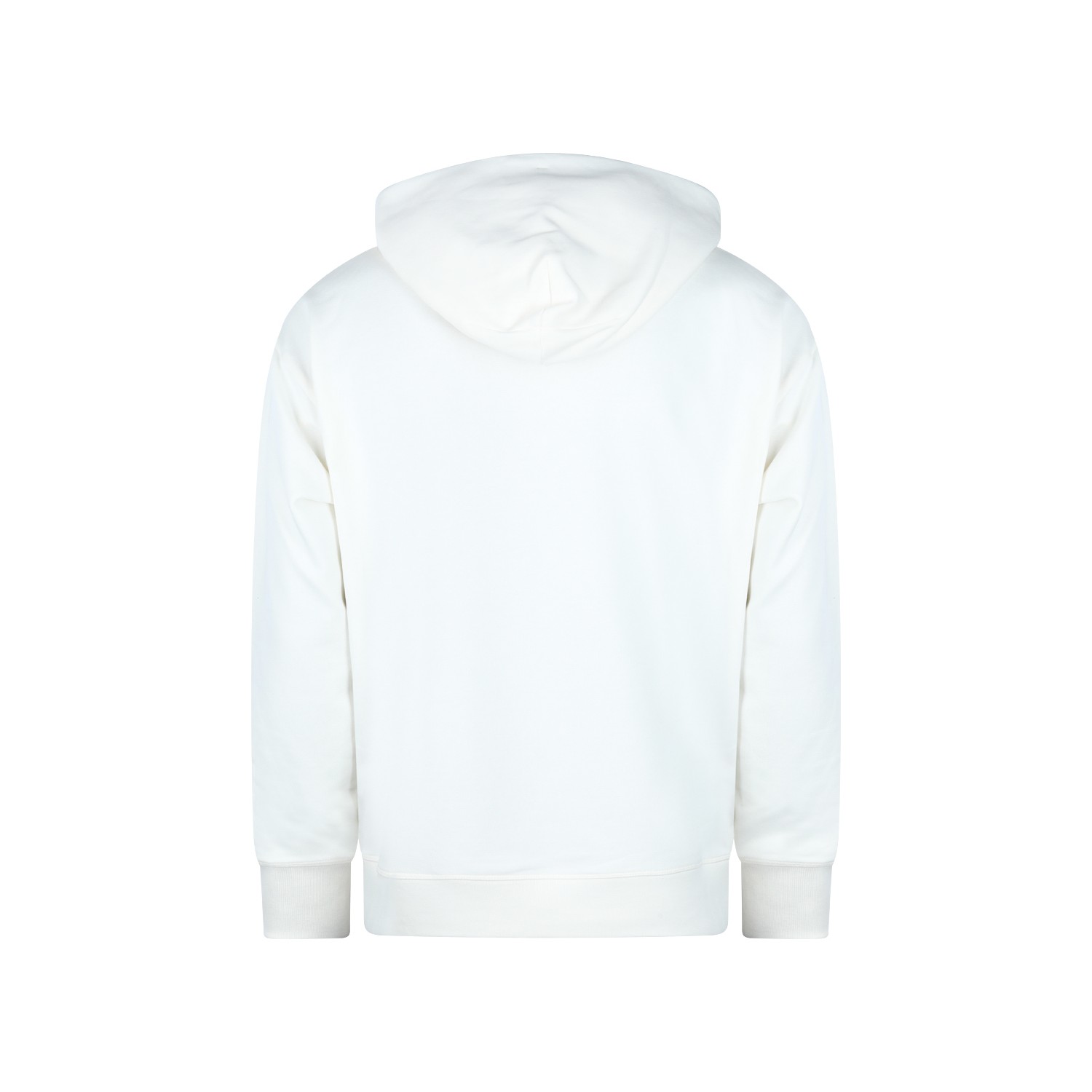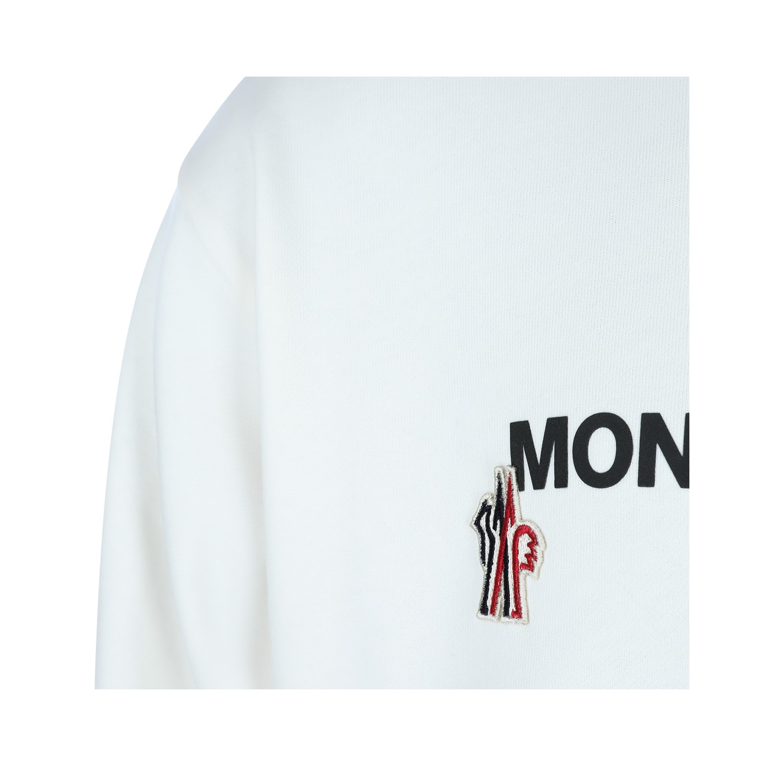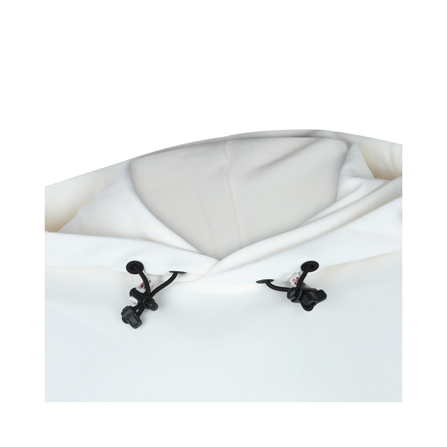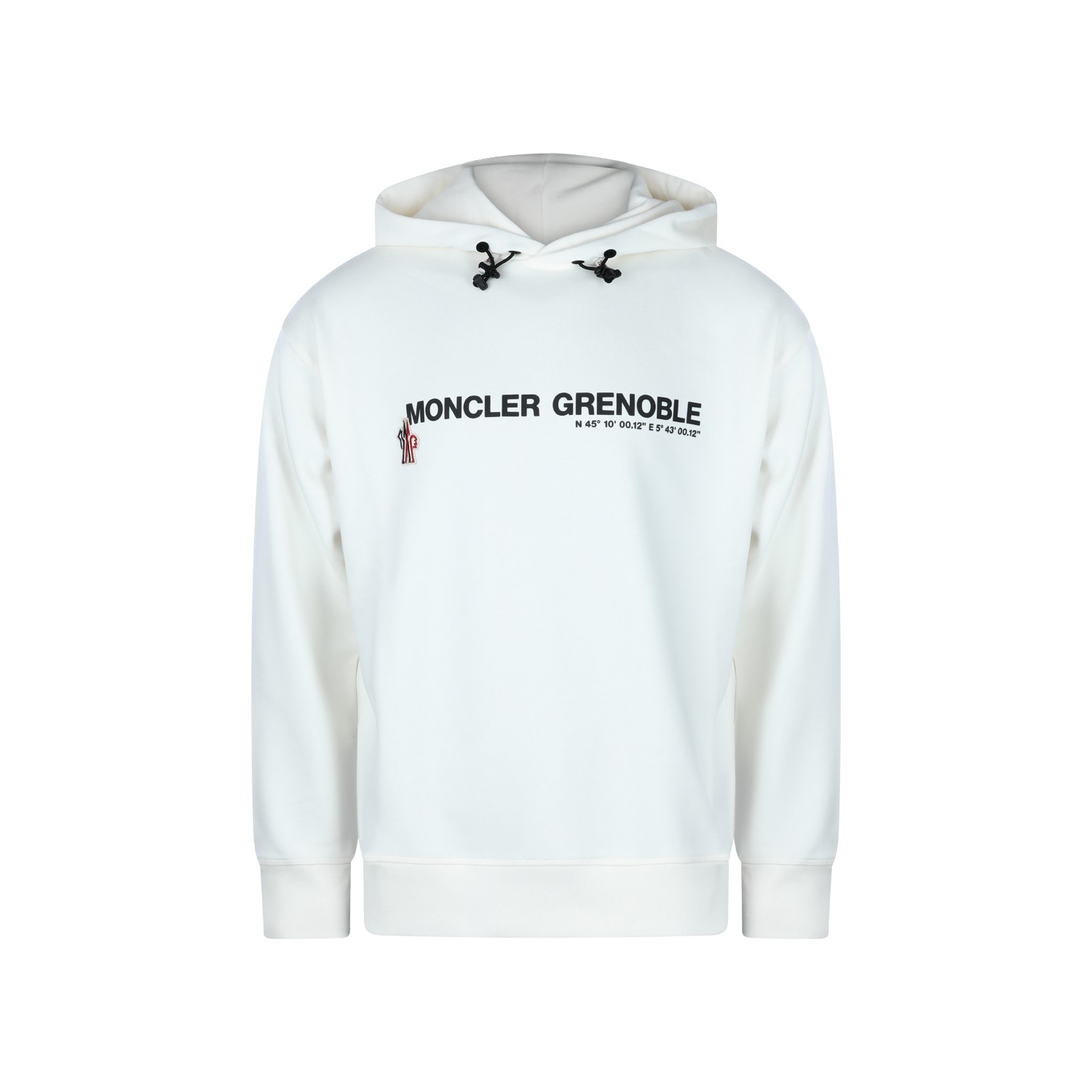 White cotton sweatshirt from Moncler Grenoble featuring hood with drwastring, long sleeves, logo print, ribbed cuffs and hem and regular fit.