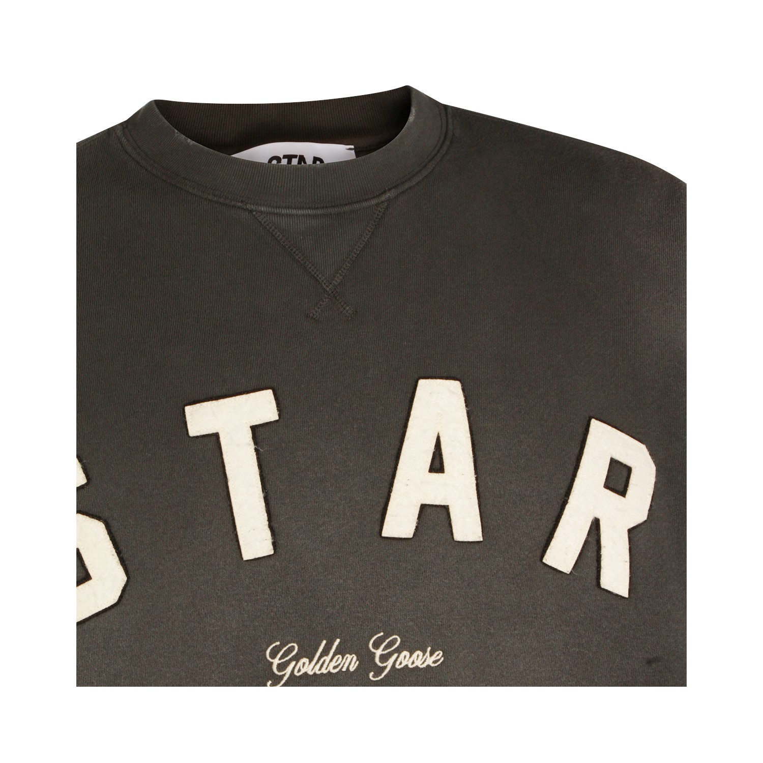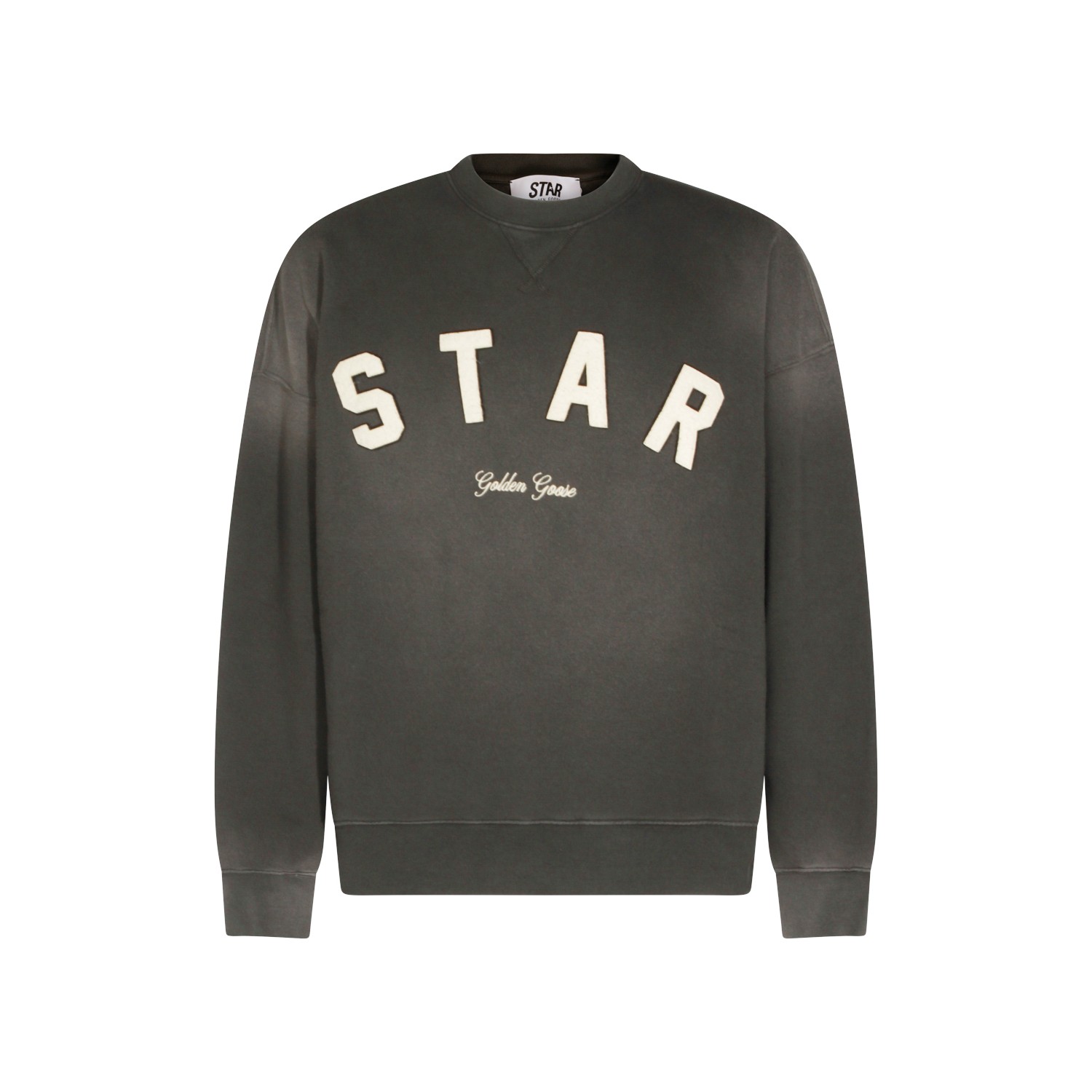 Dark grey cotton sweatshirt from Golden Goose featuring crew neck, long sleeves, print, ribbed cuffs and hem and regular fit.