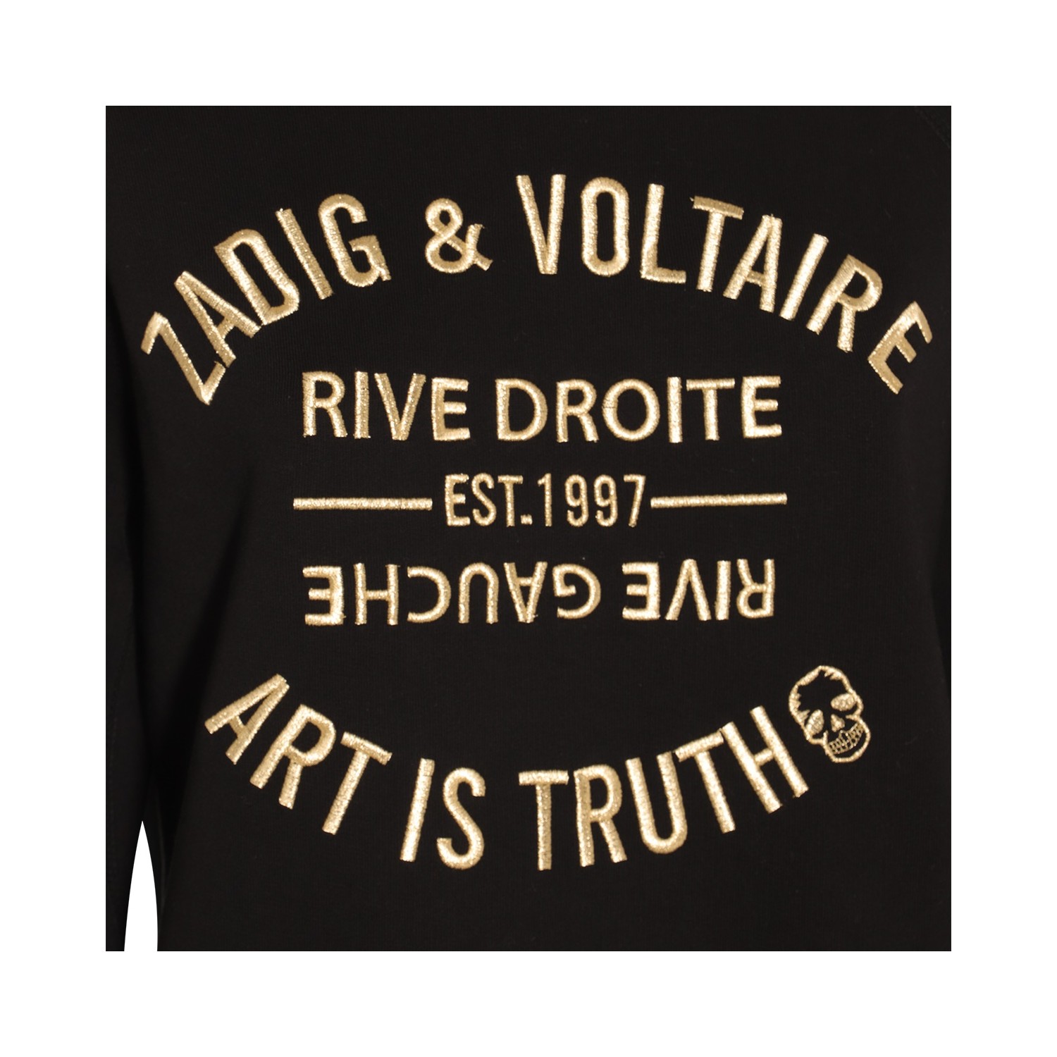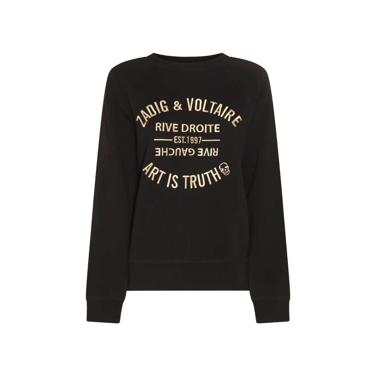 Black cotton sweatshirt from Zadig & Voltaire featuring round collar, long sleeves, logo, ribbed cuffs, ribbed hem and regular vestibility.