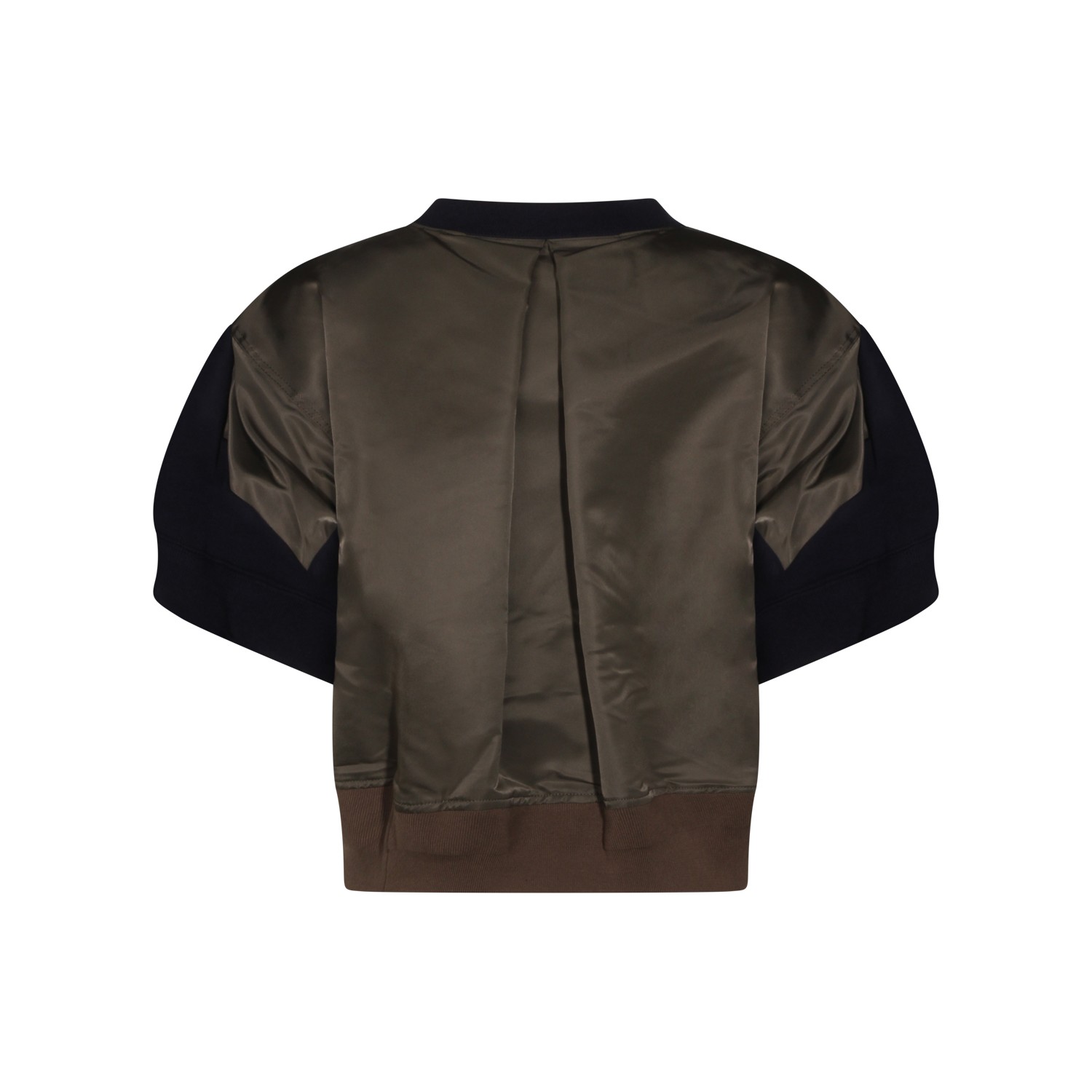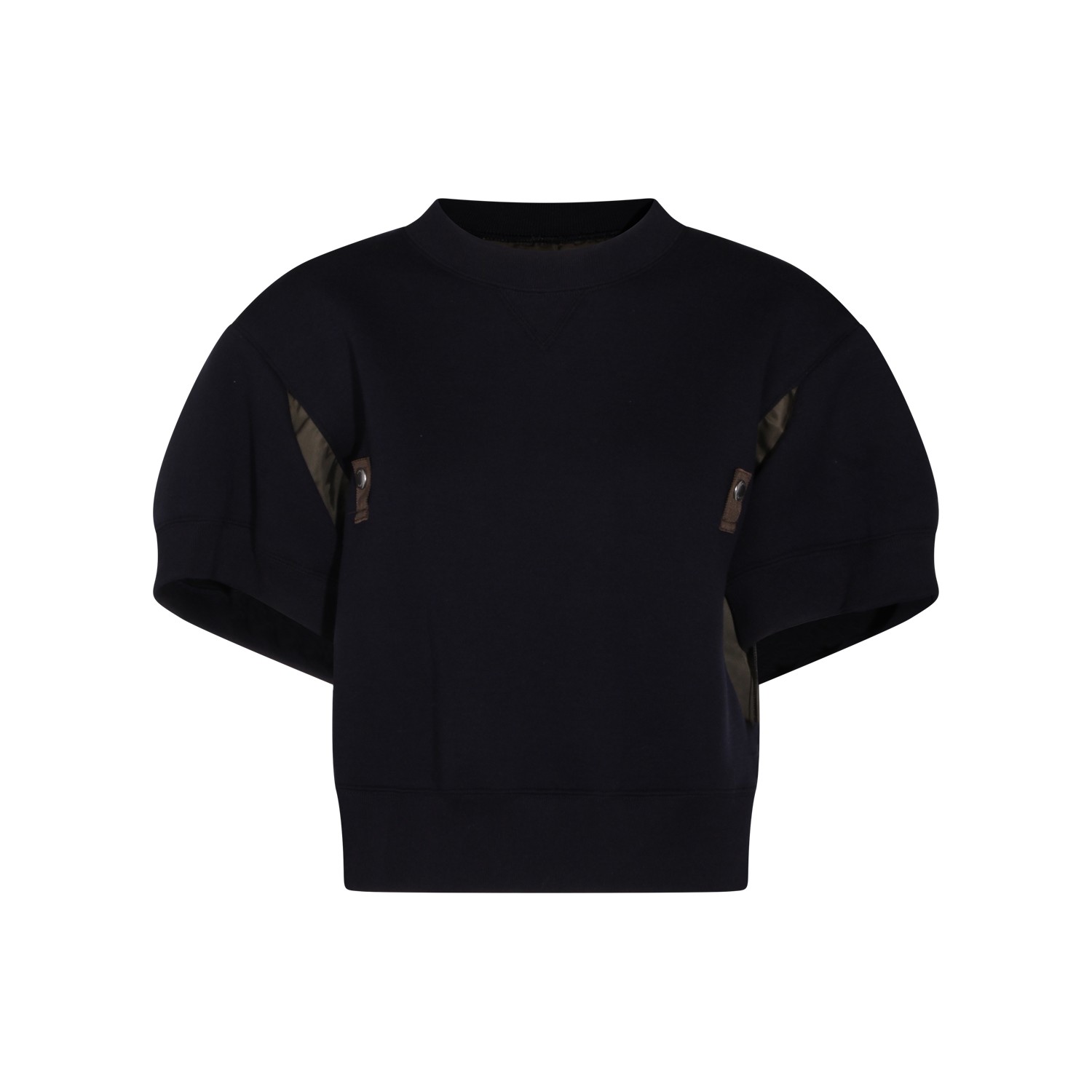 Navy and khaki cotton sweatshirt from Sacai featuring crew neck, short puffed sleeves, contrasting fabric details and relaxed fit.