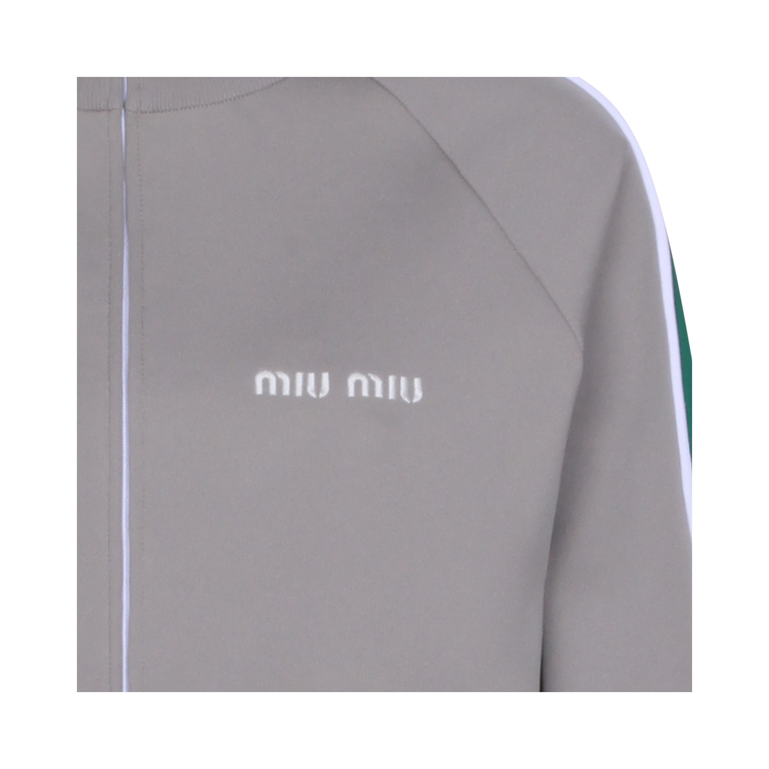 Grey and green cotton sweatshirt from Miu Miu featuring high collar, long sleeves, zip fastening, heart logo, zip pockets and regular vestibility.