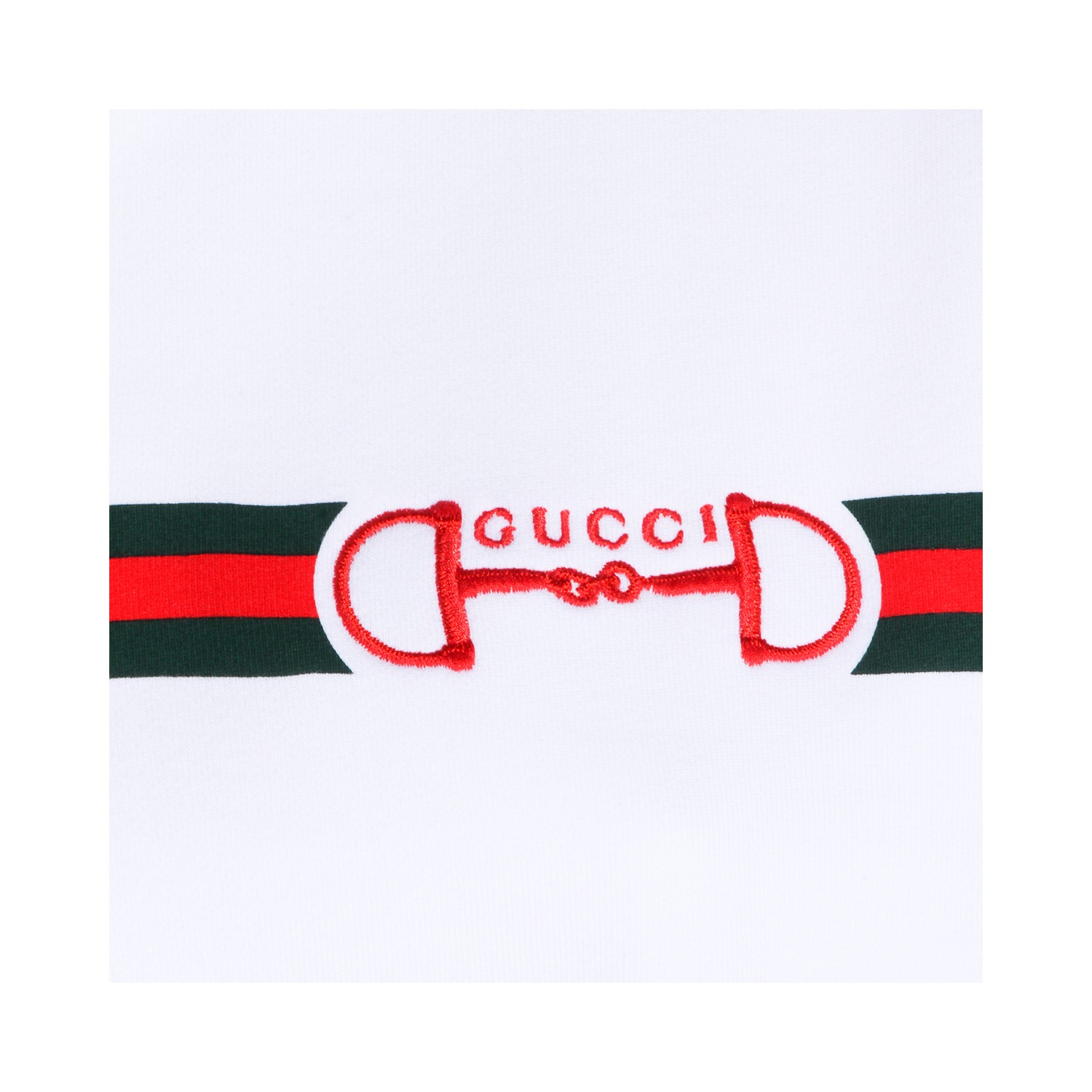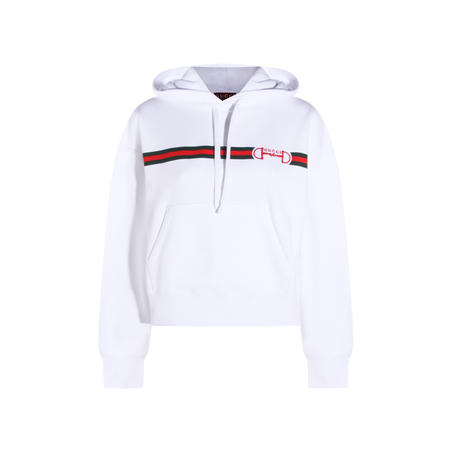 White cotton sweatshirt from Gucci featuring hood with drawstring, long sleeves, Web band print, ribbed cuffs and regular fit.