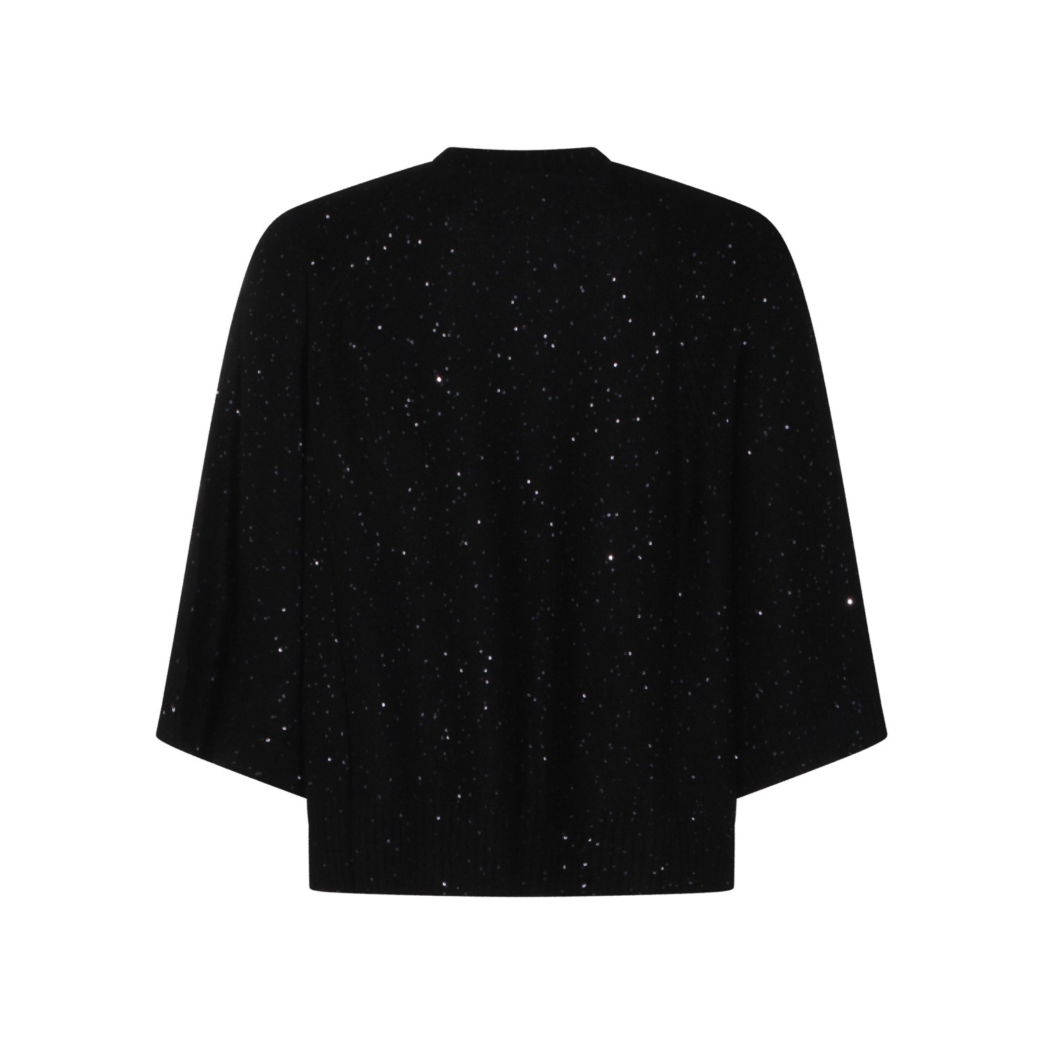 Black wool t-shirt from Fabiana Filippi featuring crew neck, mid wide sleeves, paillettes and soft vestibility.