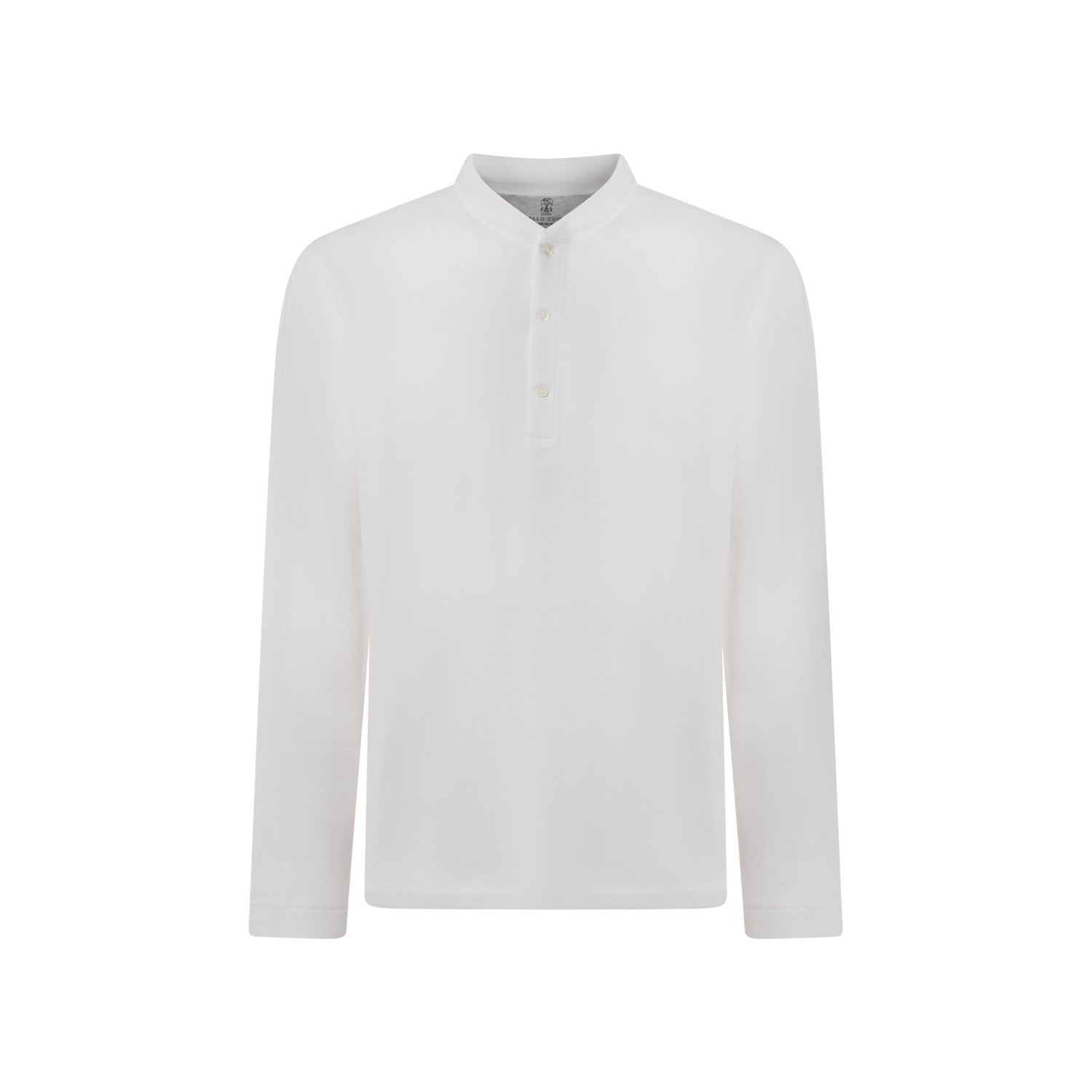 White cotton t-shirt from Brunello Cucinelli featuring buttons fastening, long sleeves and regular vestibility.
