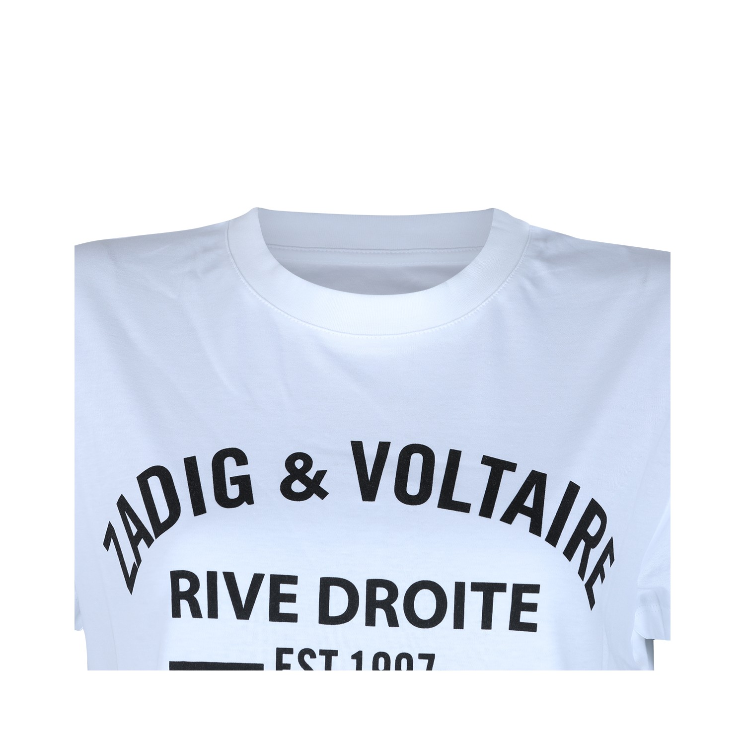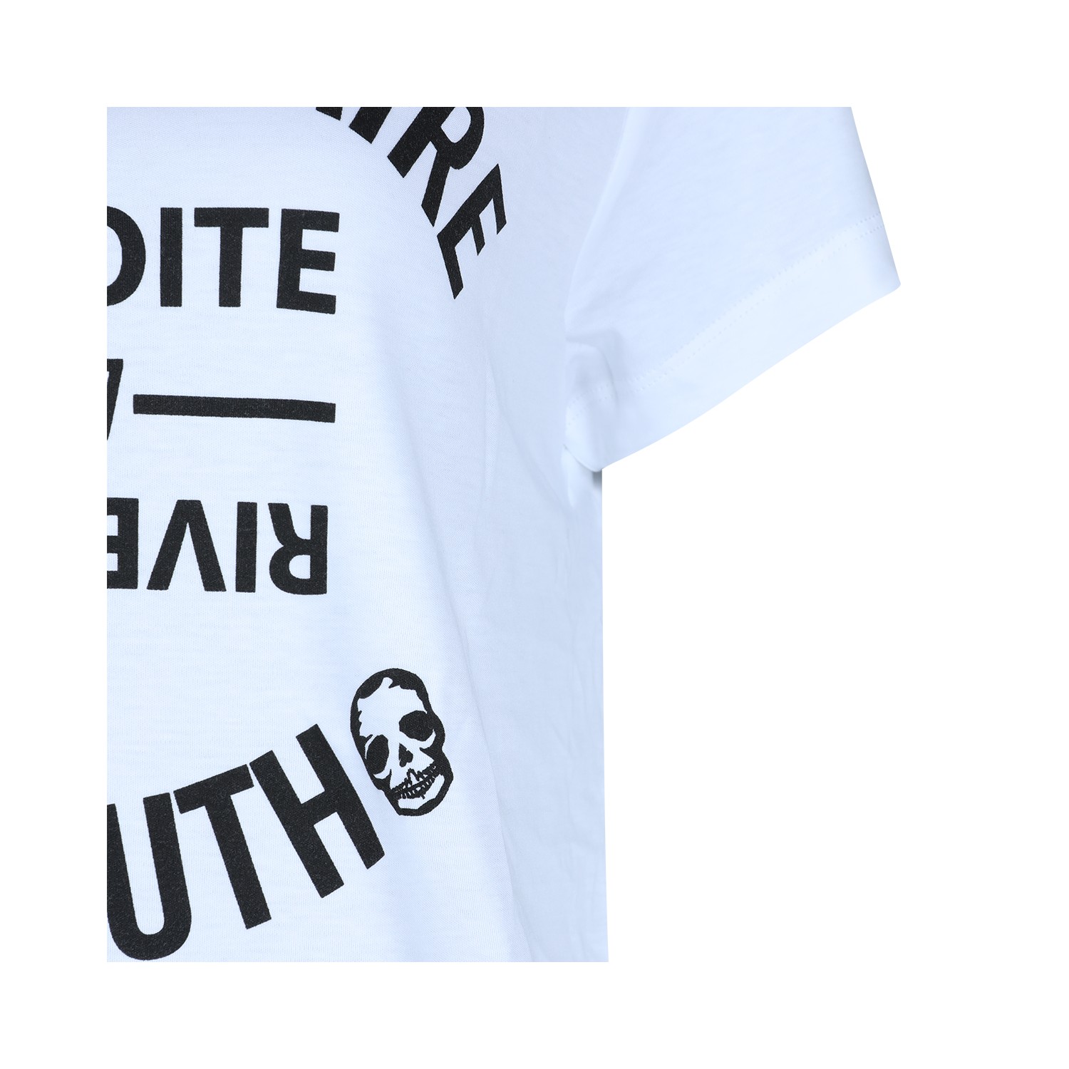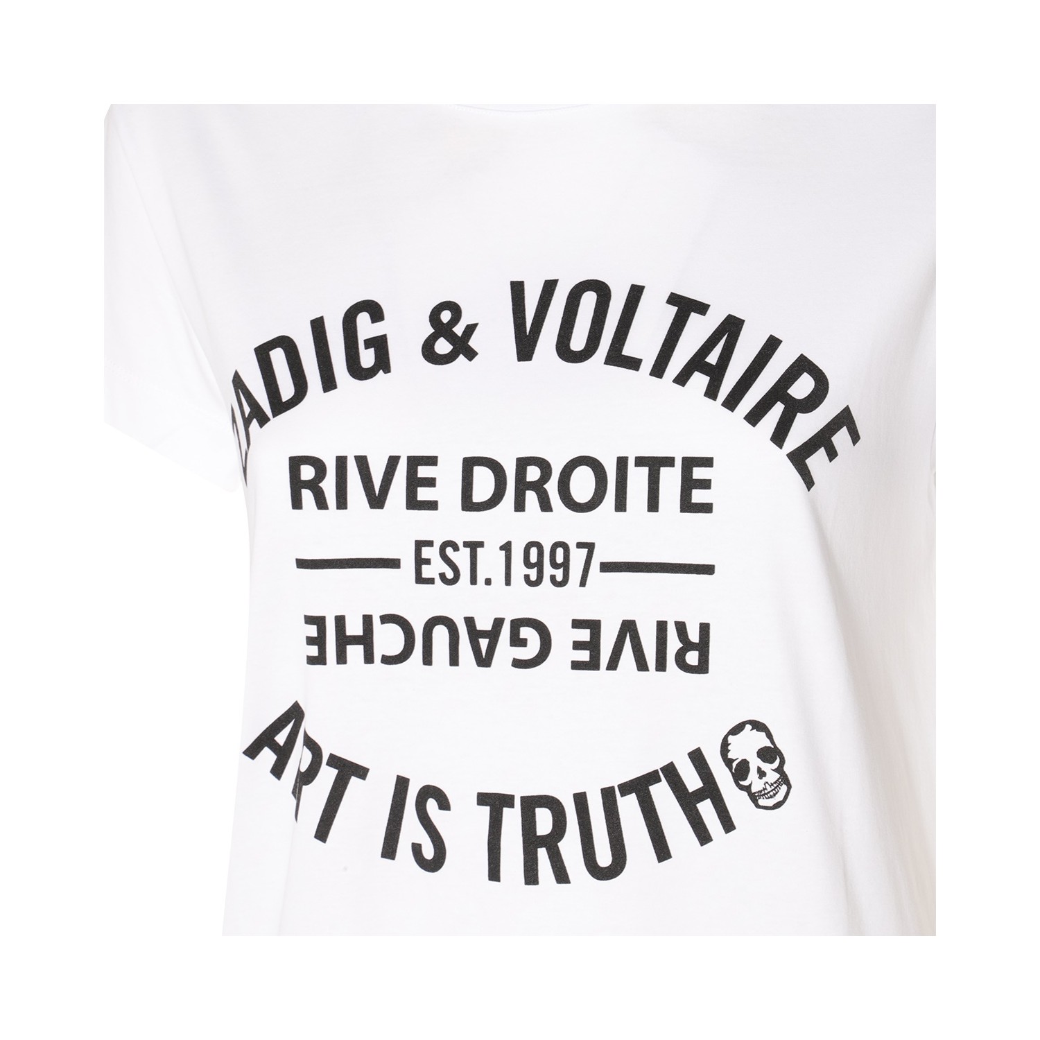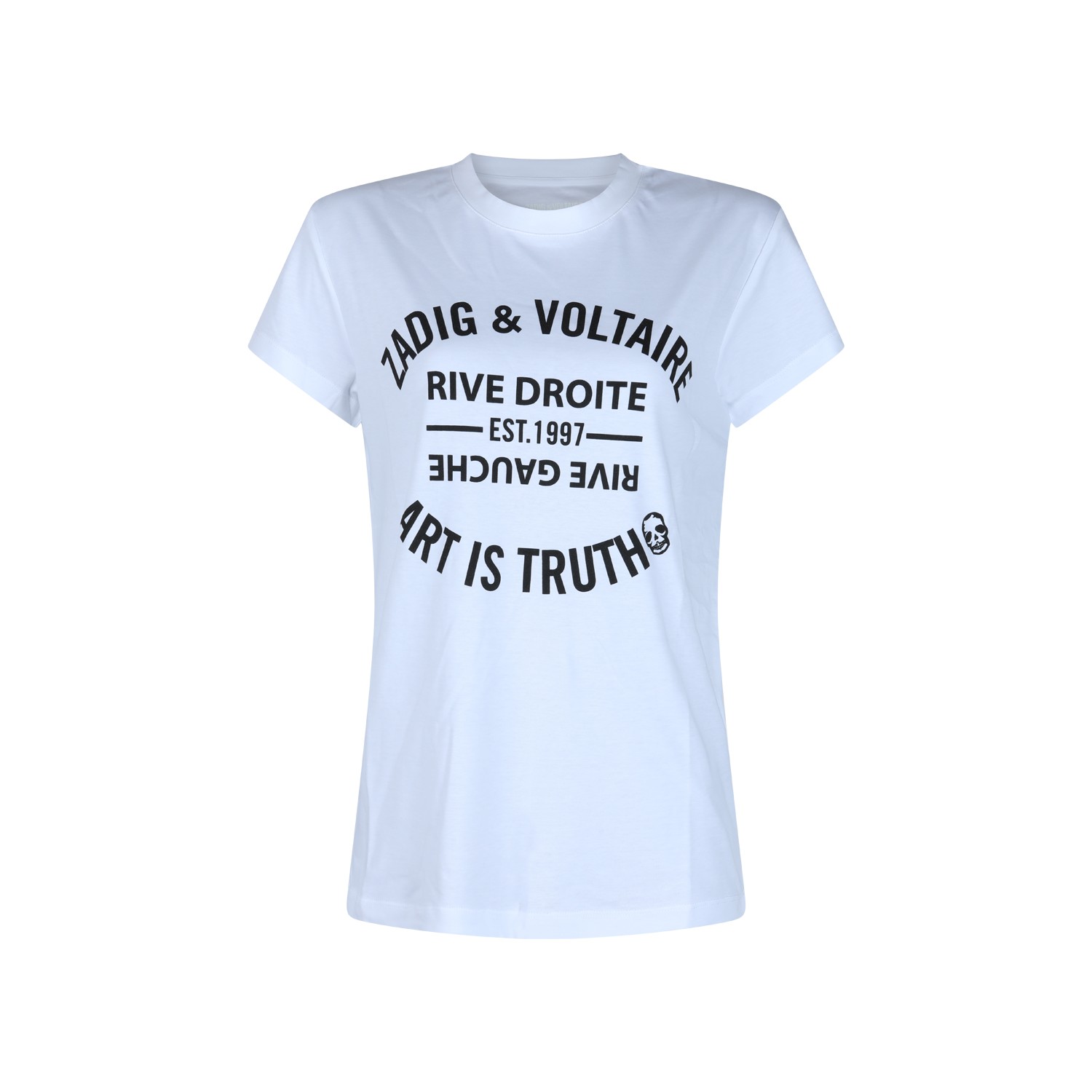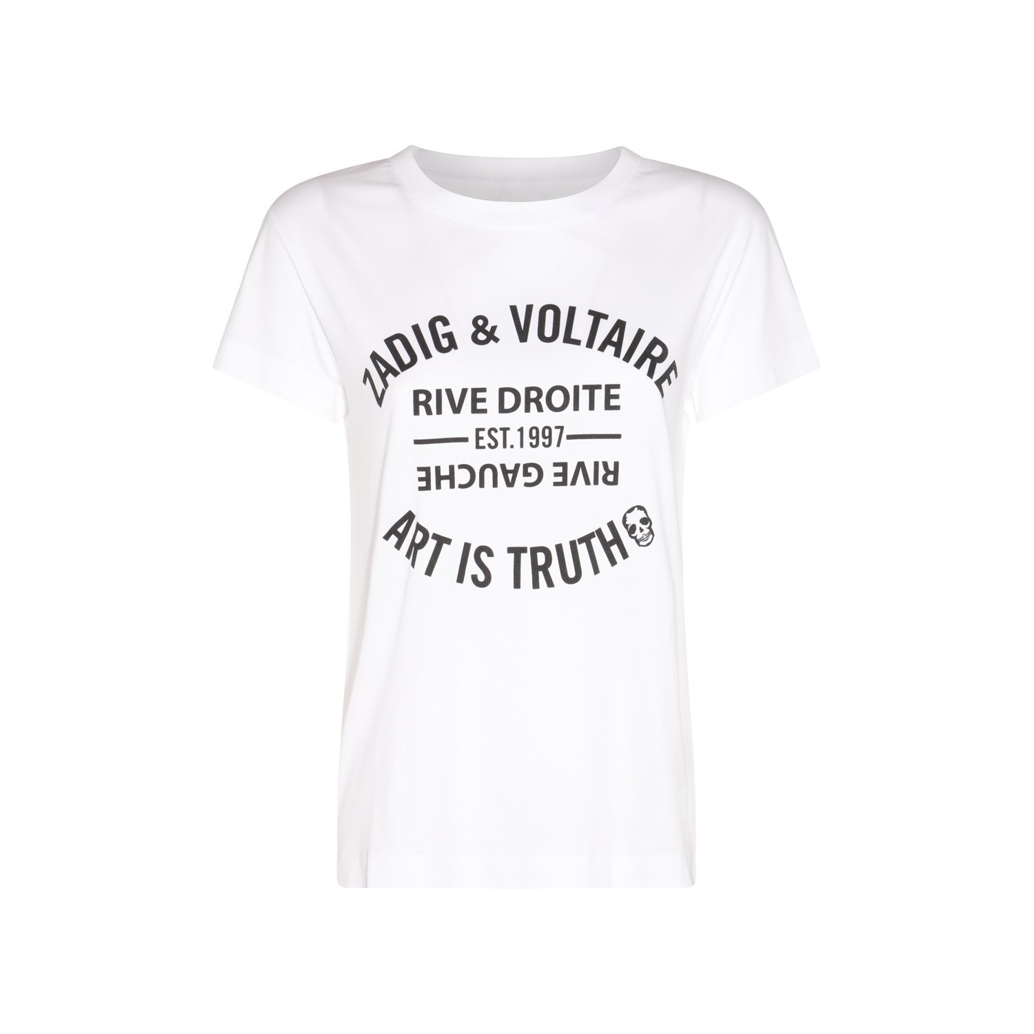White cotton t-shirt from Zedig&Volatire featuring short sleeves, round collar, frontal logo and regular vestibility.