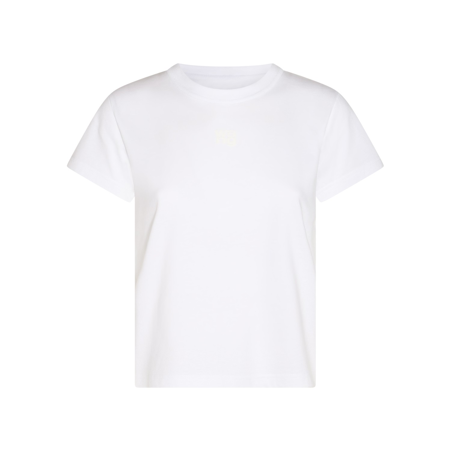 White cotton T-shirt from Alexander Wang featuring short sleeves, round neck, straight hem, regular fit and logo.