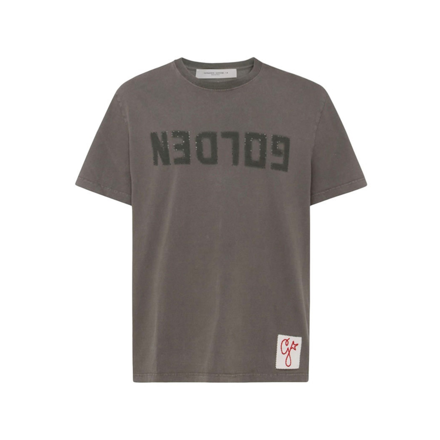Dusty olive cotton T-shirt from Golden Goose featuring short sleeves, regular fit, round neck and print on the chest.