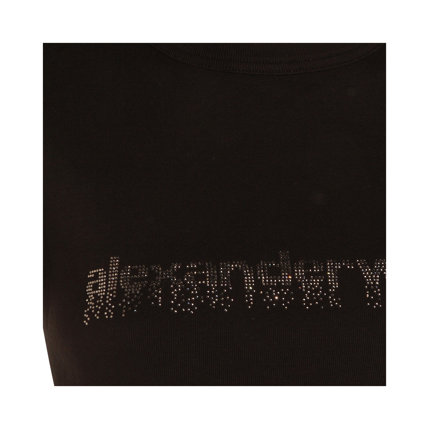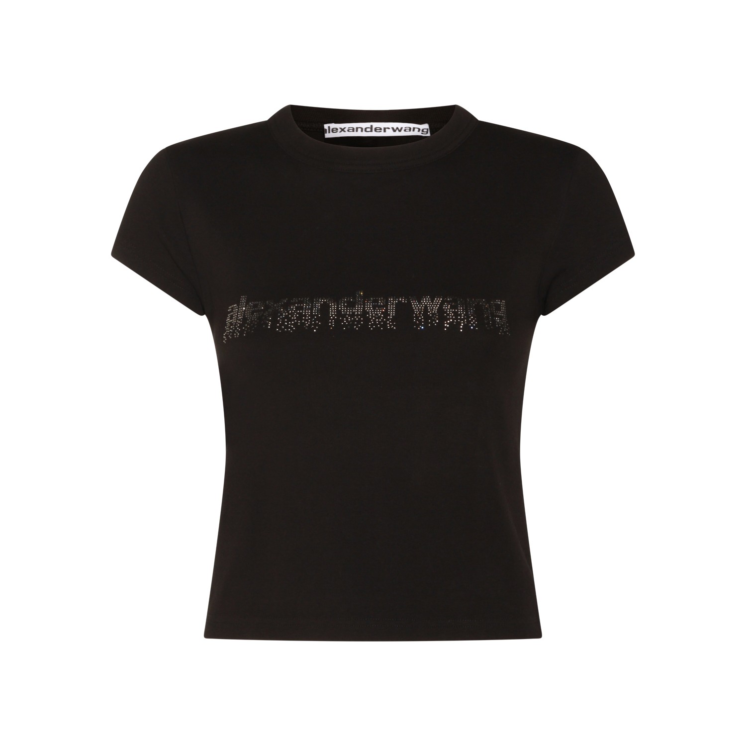 Black cotton t-shirt from Alexander Wang featuring crew neckline, short sleeves, frontal glitter applications and regular vestibility.