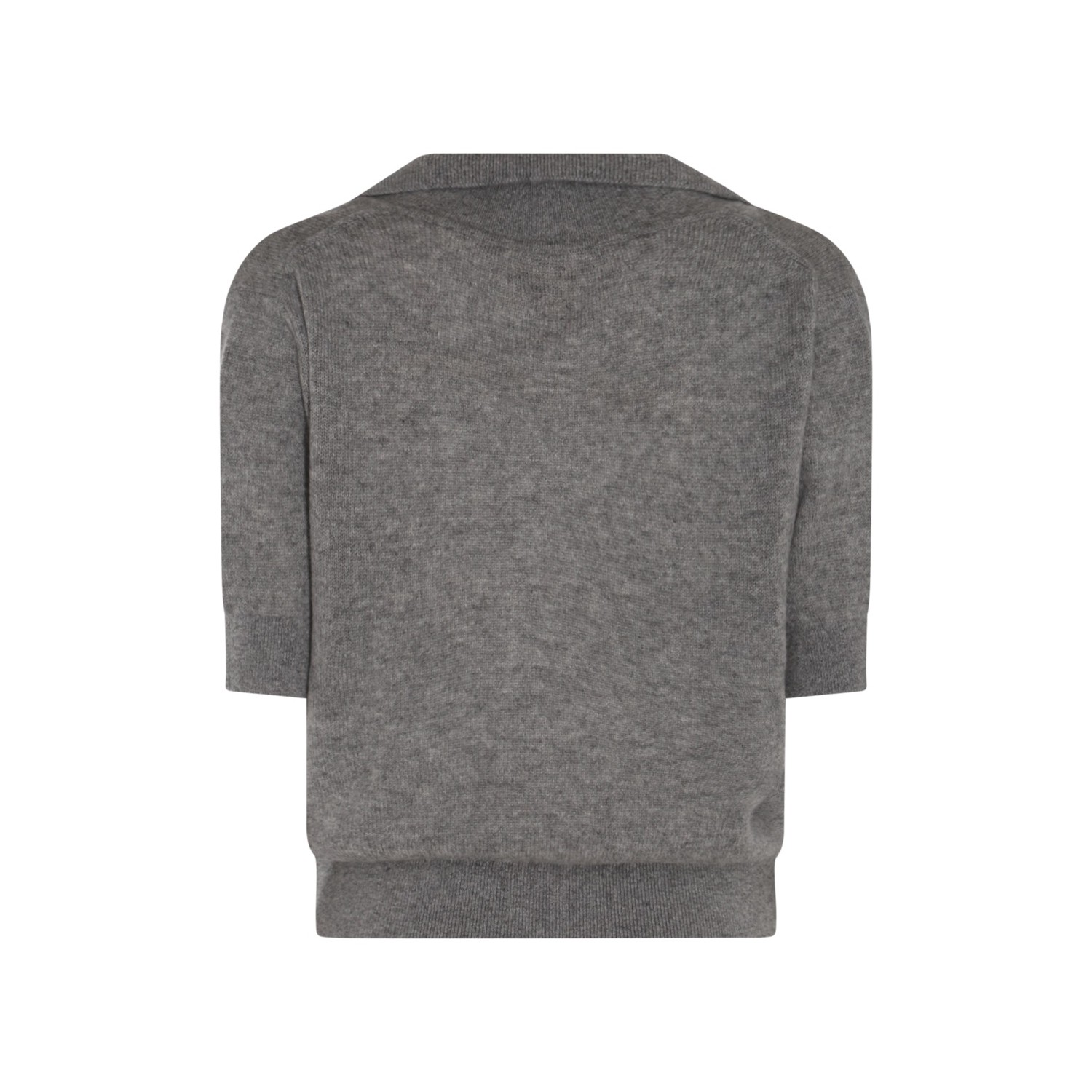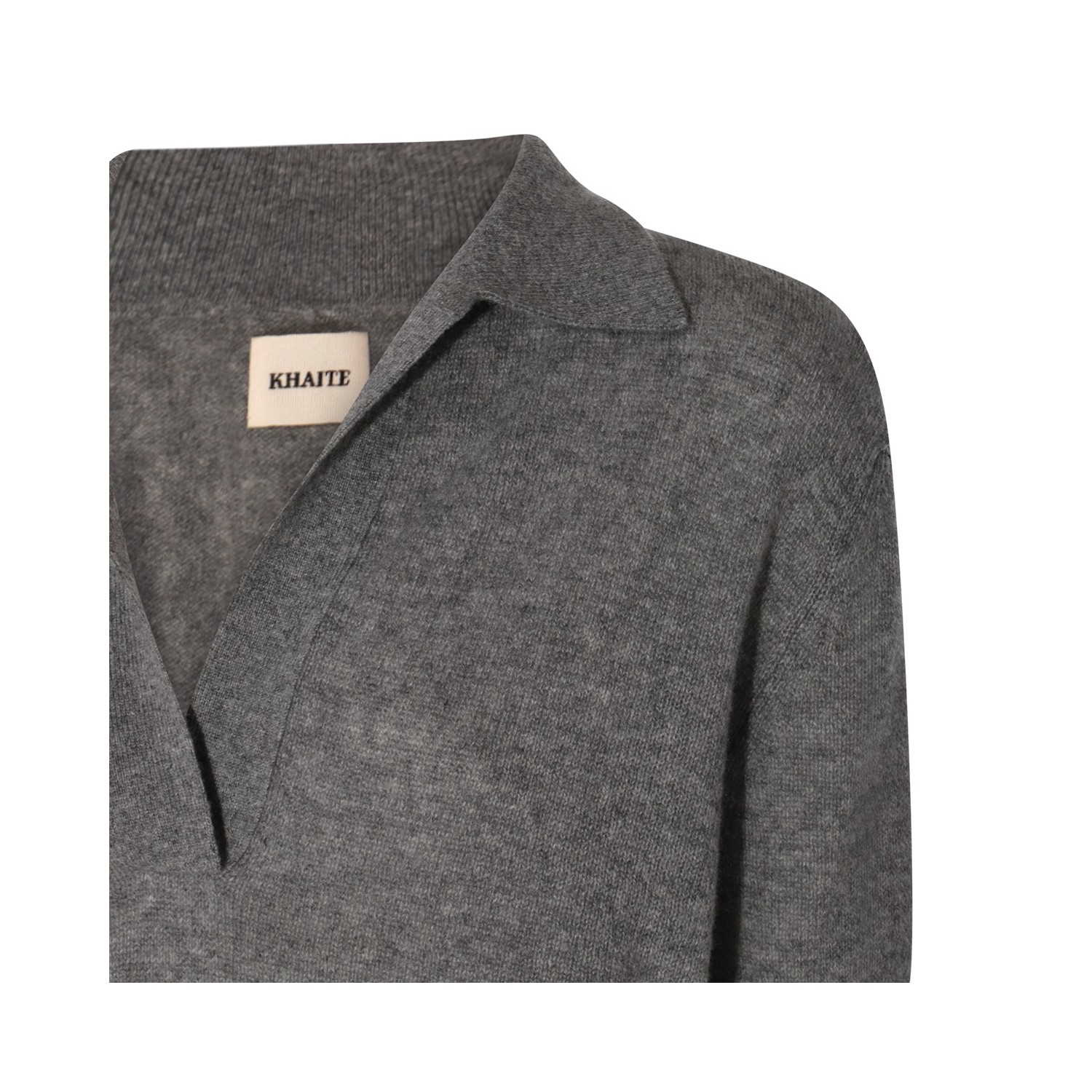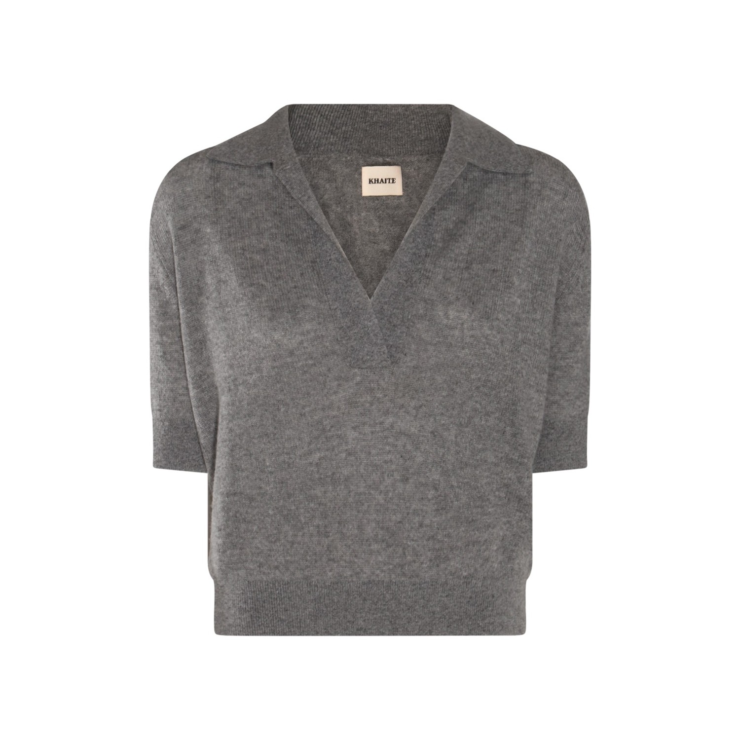 Warm grey cashmere polo shirt from Khaite featuring V- neck, short sleeves and regular vestibility.