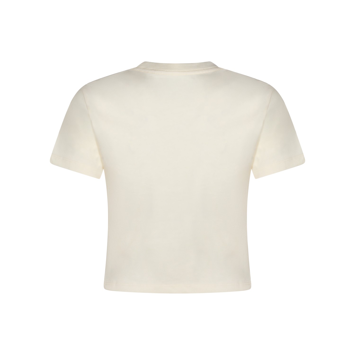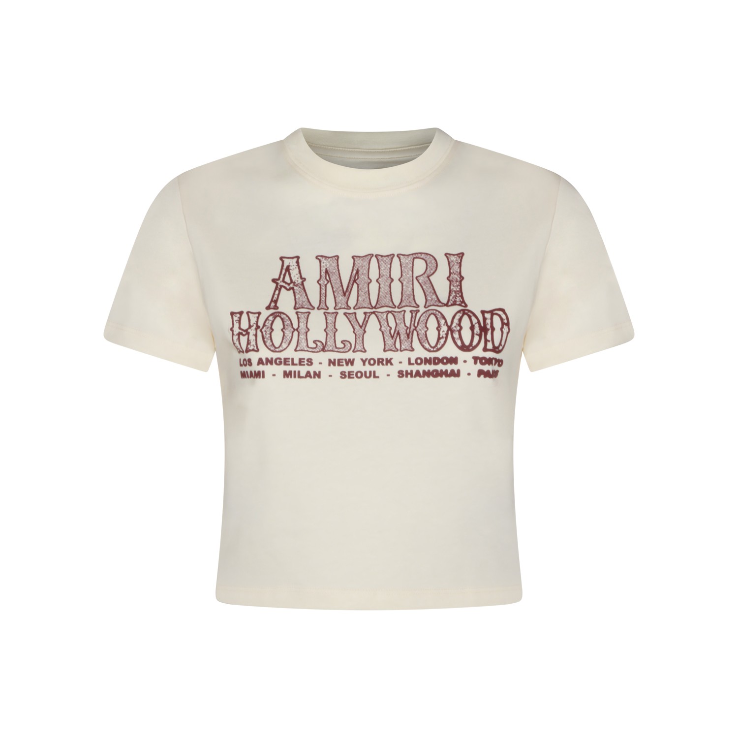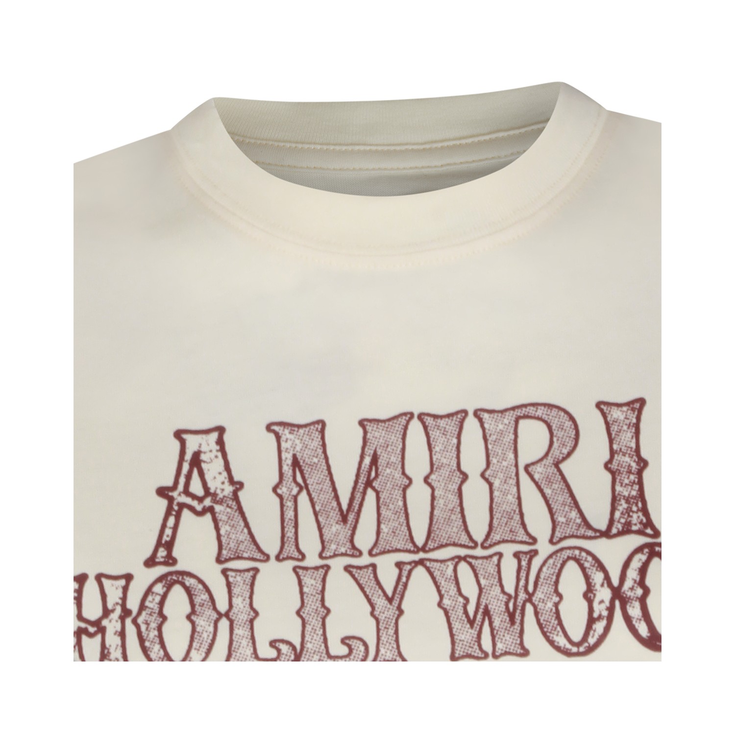Ivory cotton t-shirt from Amiri featuring crew neck, short sleeves, frontal stamp and crop length.