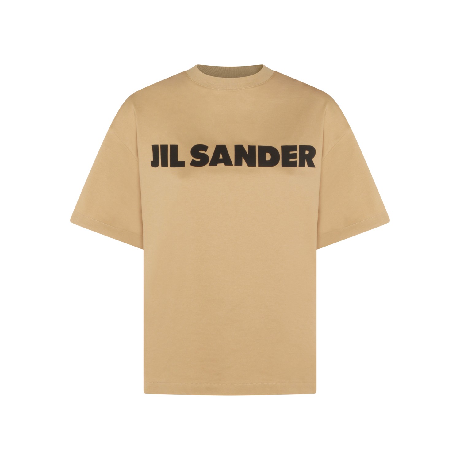Beige cotton t-shirt from Jil Sander featuring crew neck, short sleeves, frontal logo print and regular vestibility.