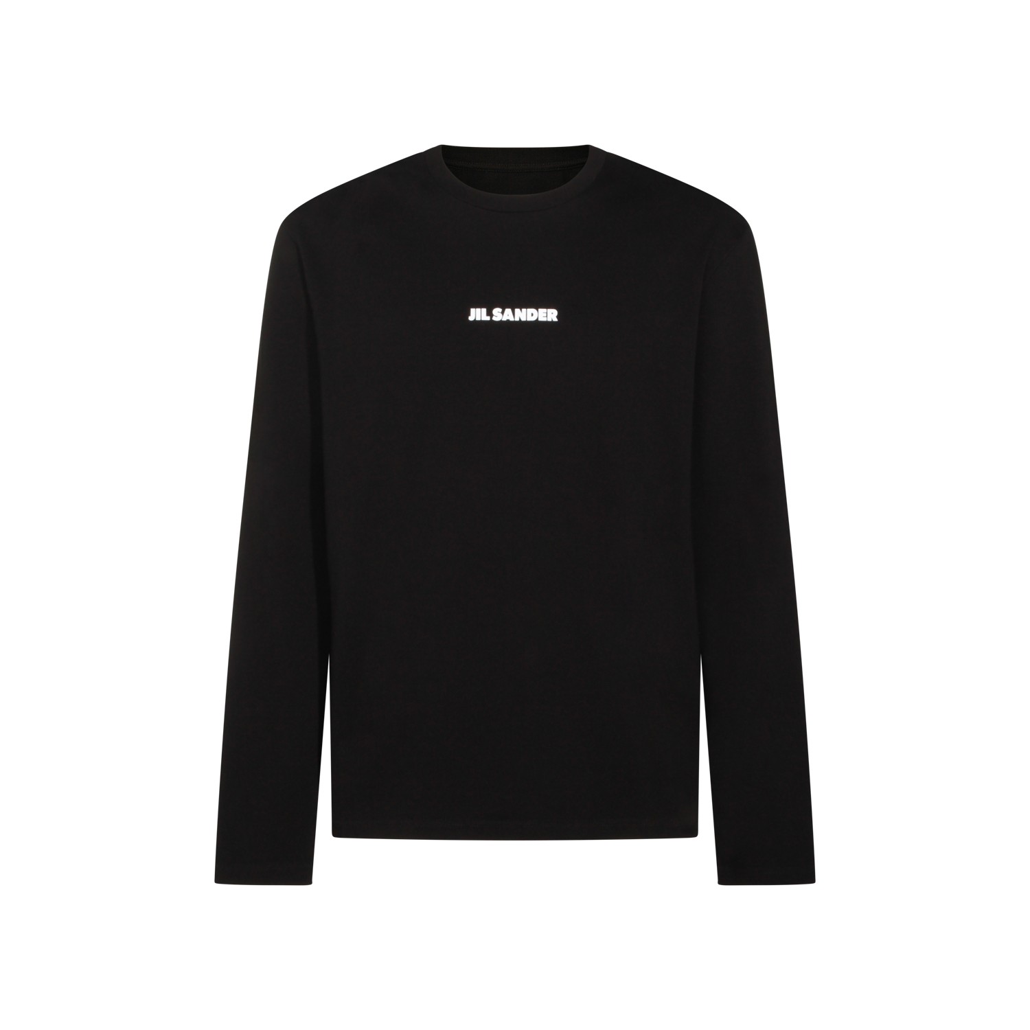 Black cotton t-shirt from Jil Sander featuring crew neck, long sleeves, frontal logo and regular vestibility.