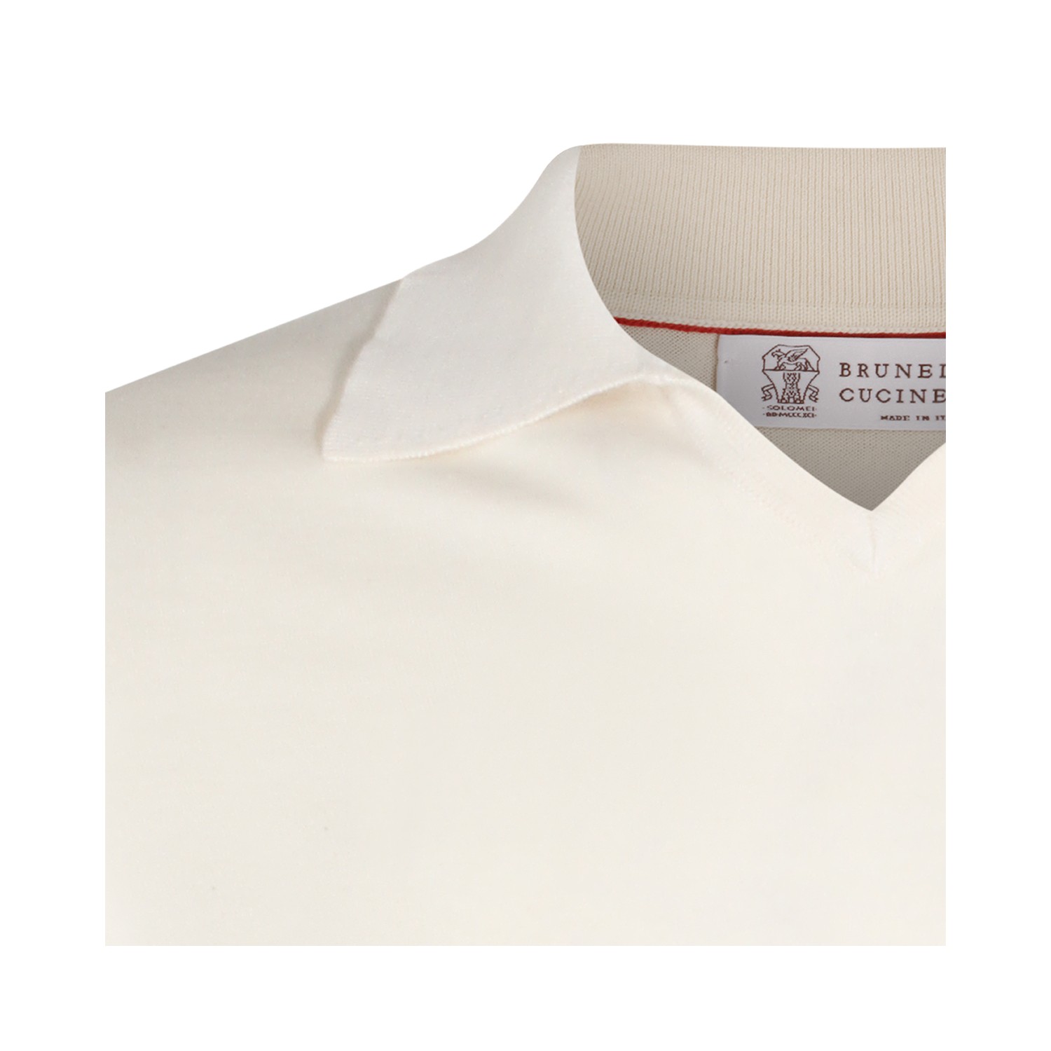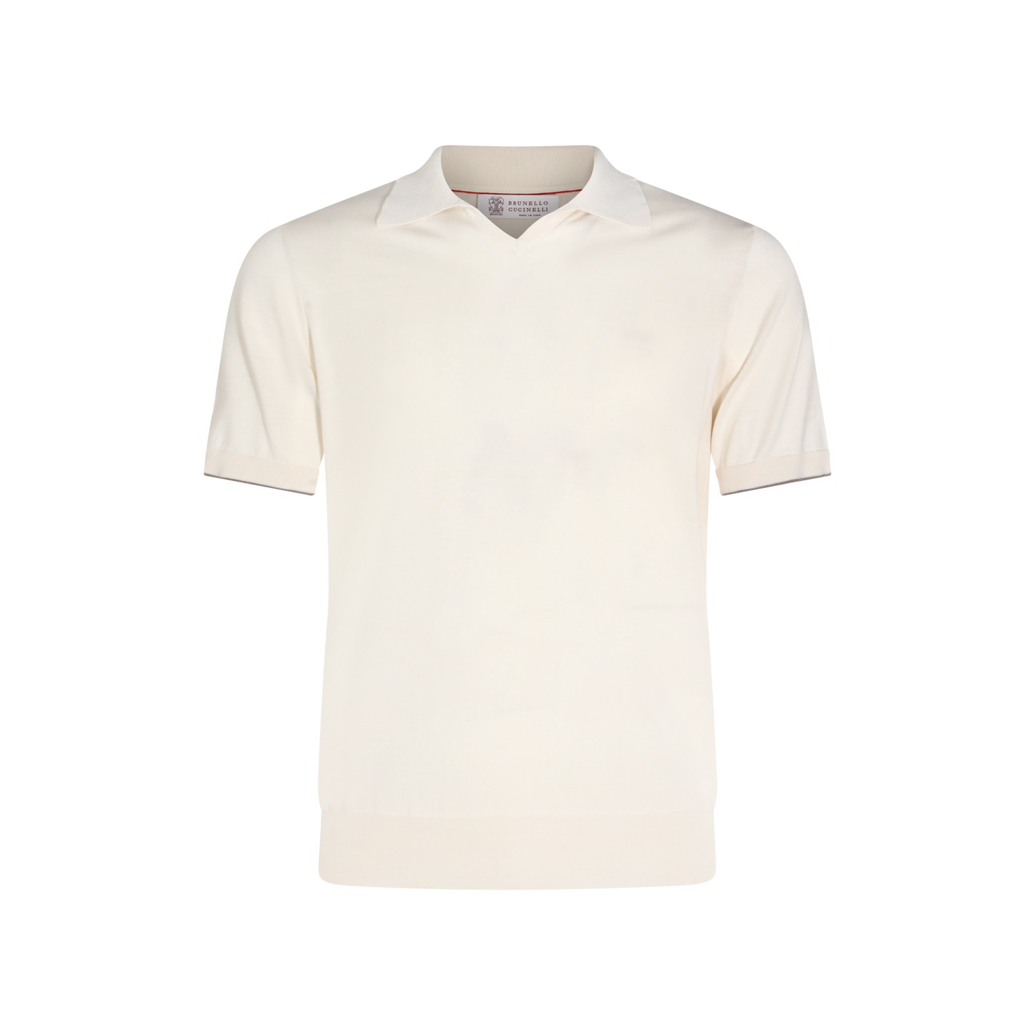 White cotton polo shirt from Brunello Cucinelli featuring regular neck, short sleeves and regular vestibility.