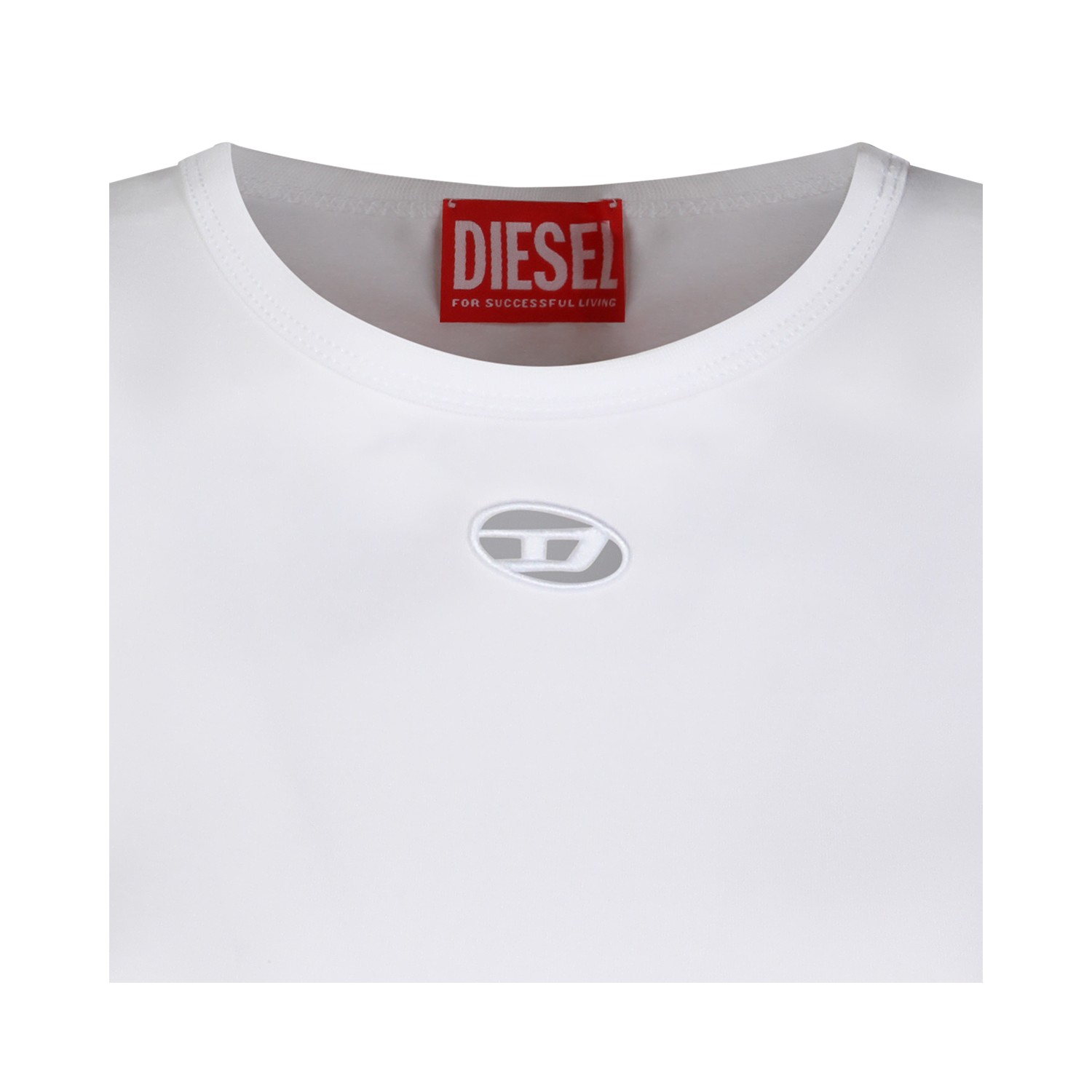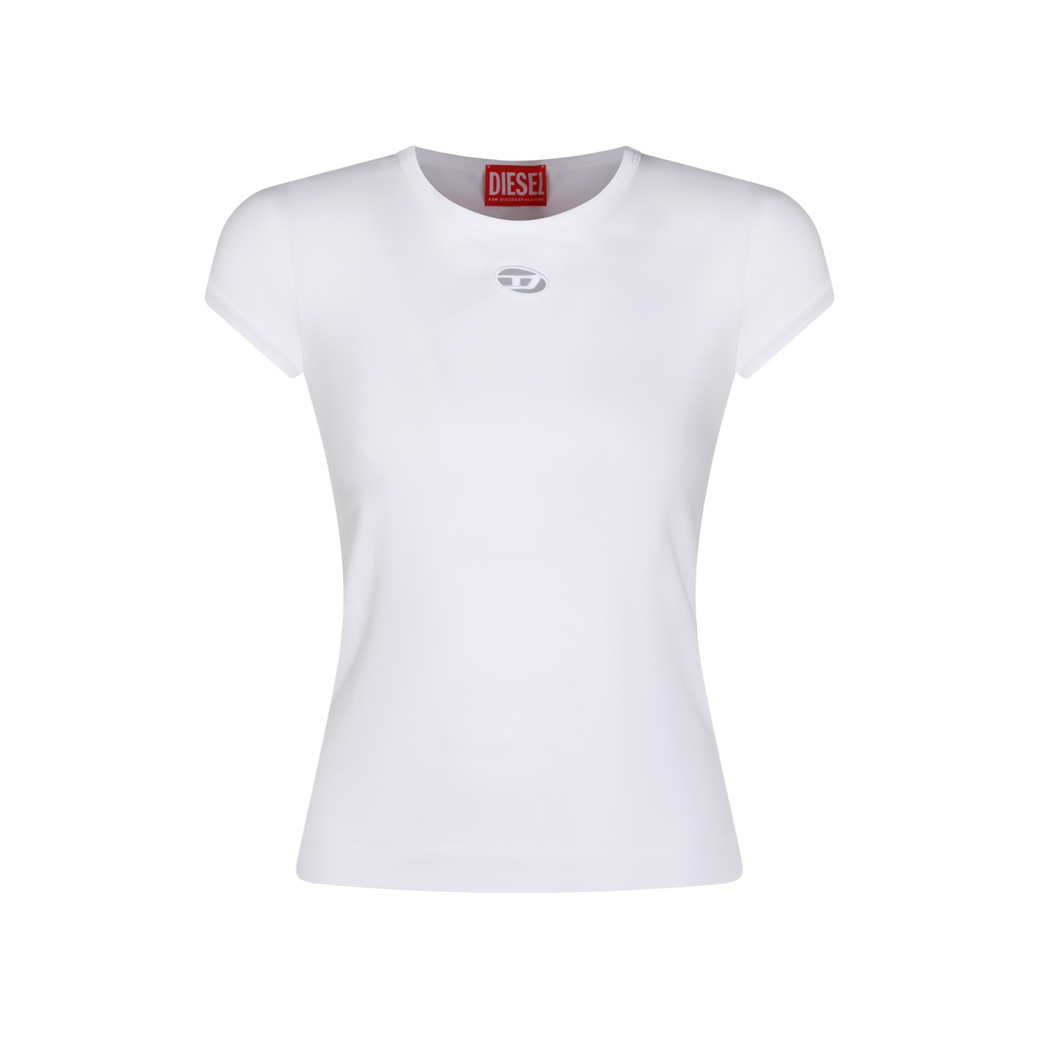 White cotton t-shirt from Diesel featuring crew neck, short sleeves, frontal logo cut-out and regular vestibility.