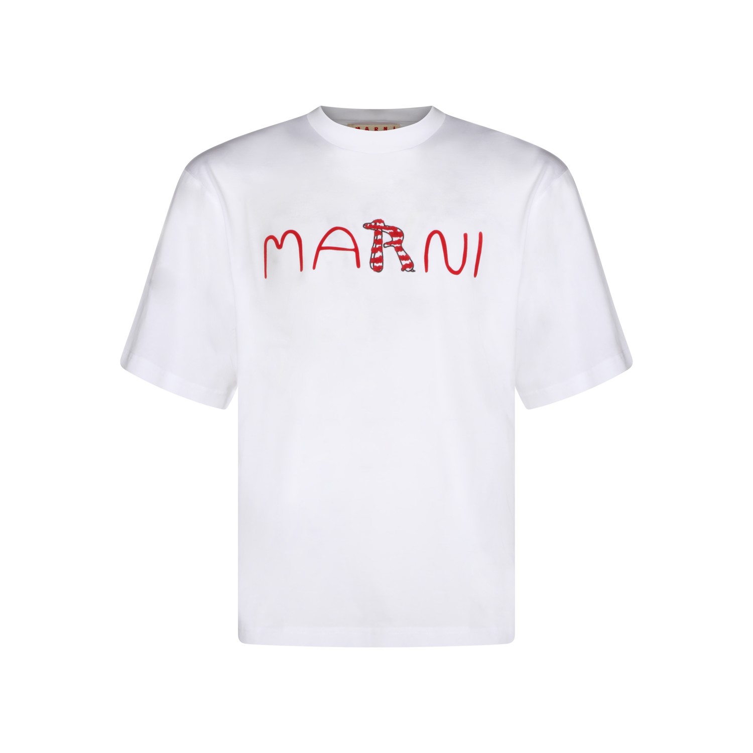 White cotton t-shirt from Marni featuring crew neck, short sleeves, frontal logo stamp and regular vestibility.