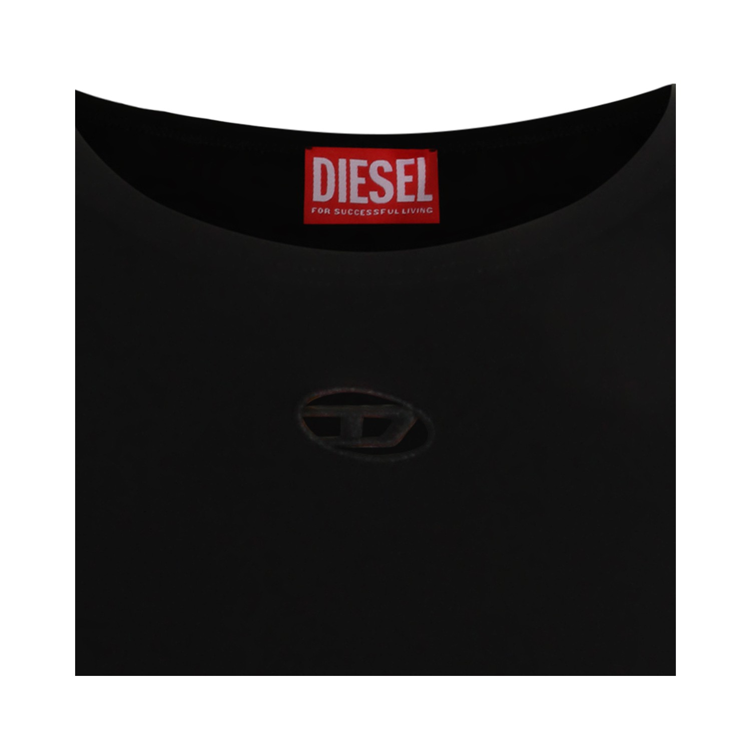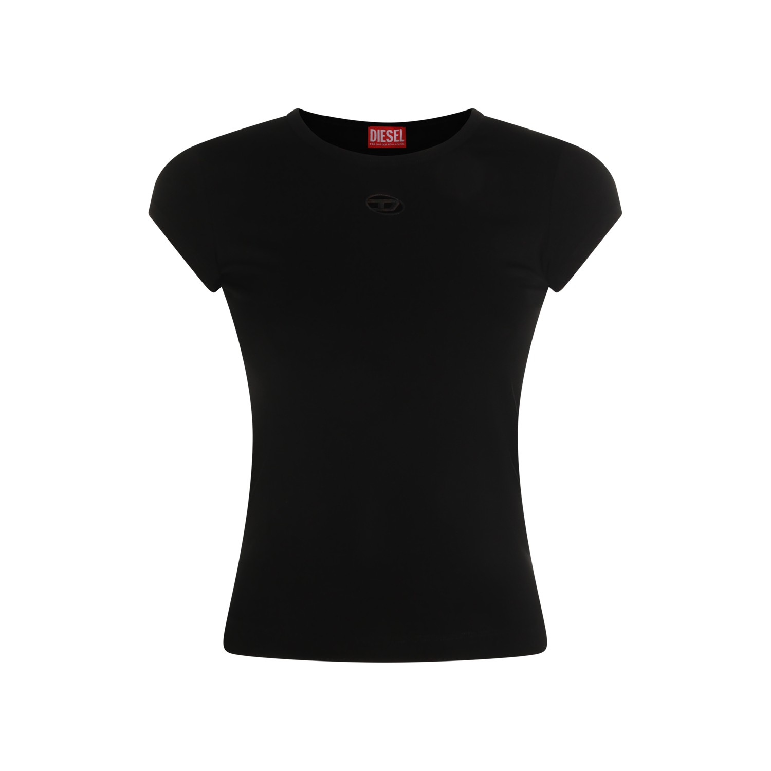 Black cotton t-shirt from Diesel featuring crew neck, short sleeves, frontal logo cut-out and regular vestibility.