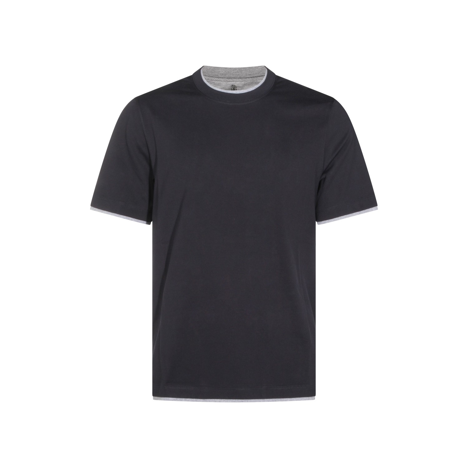 Navy cotton t-shirt from Brunello Cucinelli featuring short sleeves, round collar and regular vestibility.