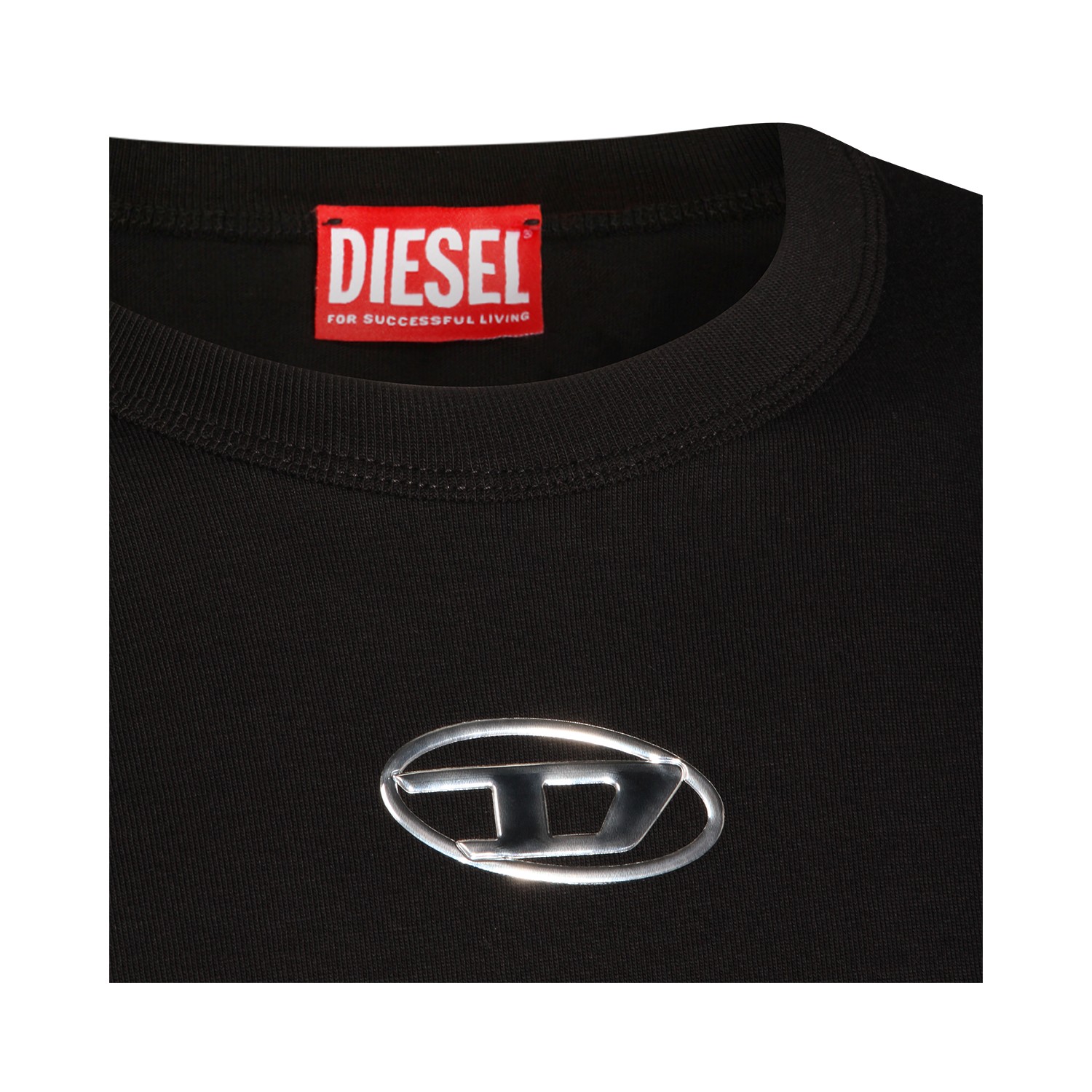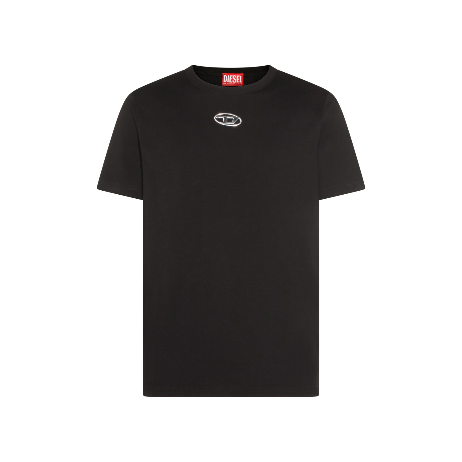 Black cotton t-shirt from Diesel featuring crew neck, short sleeves, frontal logo patch and regular vestibility.